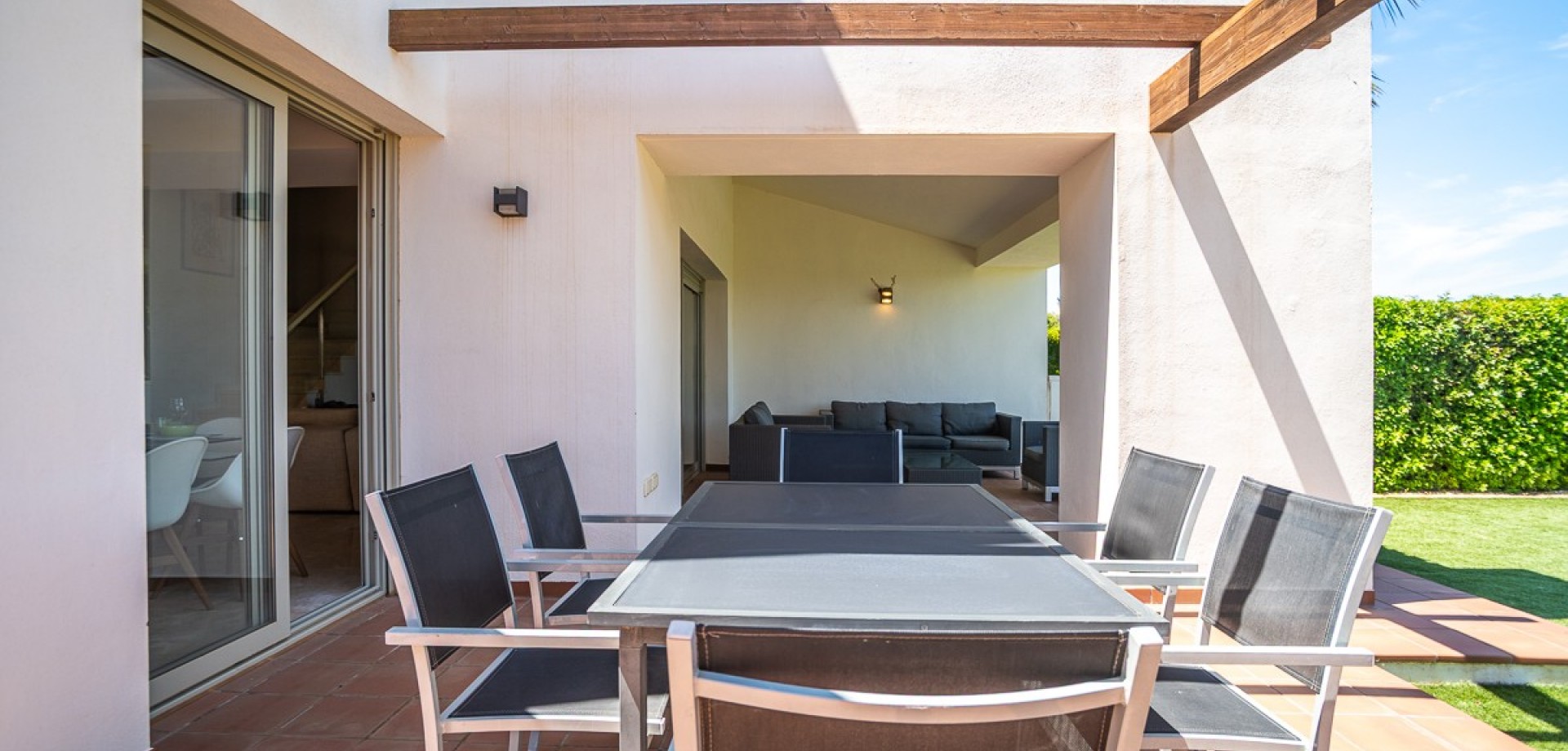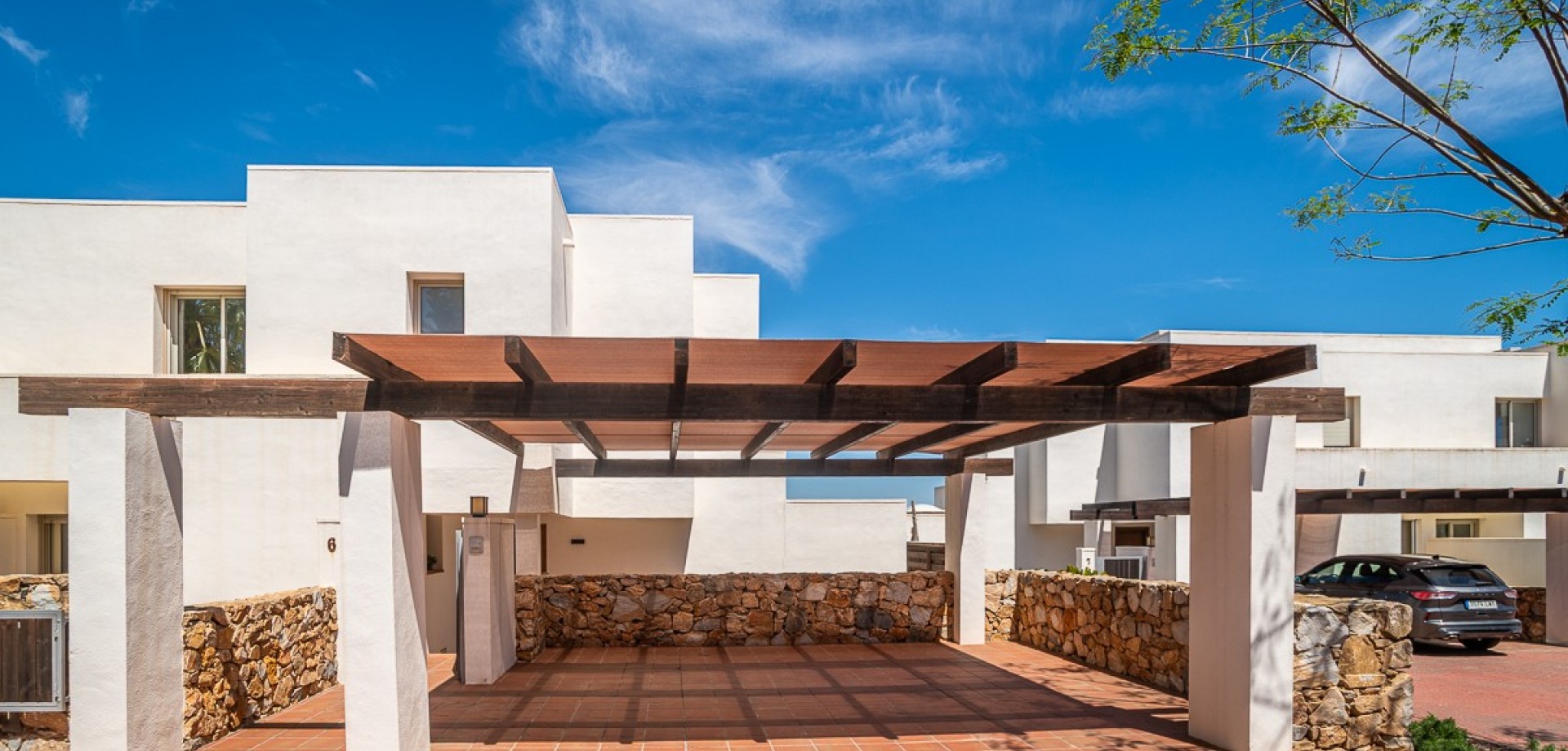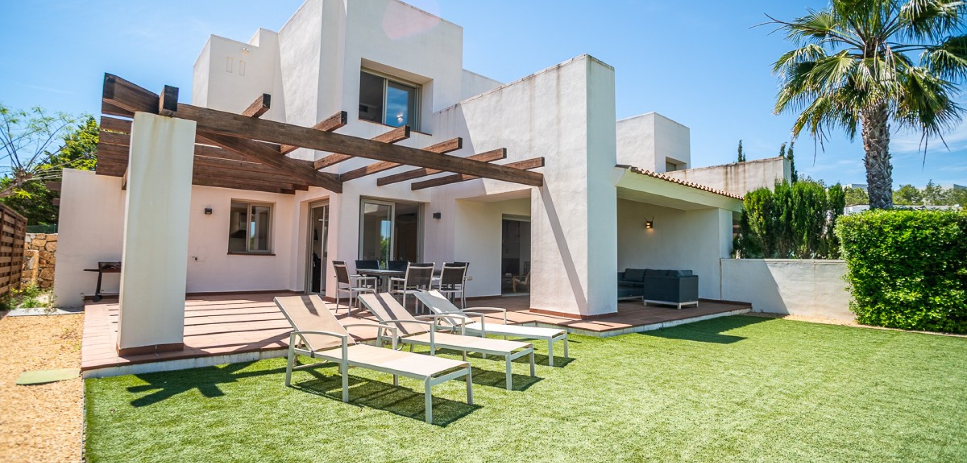 Stunning 3-Bedroom Villa in the Prestigious Las Colinas Golf & Country Club Welcome to this beautifully maintained and stylishly furnished 3-bedroom, 3-bathroom villa, nestled within the exclusive Las Colinas Golf Resort — one of the most sought-after gated communities on the Costa Blanca. Just a 20-minute drive from the idyllic white sandy beaches of the Mediterranean and conveniently located near the charming towns of San Miguel de Salinas and Villamartín, this home offers the perfect blend of luxury, comfort, and security. Set within a secure enclave of just 12 properties, this townhouse offers peace of mind with 24/7 security and a gated entrance. The home benefits from private off-road parking for two vehicles right at the entrance. Step inside to discover a bright and airy open-plan living and dining space, seamlessly connected to a sleek glass-curtain conservatory and a beautifully landscaped garden — perfect for relaxing or entertaining. A modern, fully equipped kitchen and a separate utility area make everyday living a breeze. The ground floor also hosts a spacious double bedroom with fitted wardrobes and a contemporary shower room. Upstairs, you’ll find two generously sized en-suite bedrooms. The master suite is a true retreat with a walk-in wardrobe and tranquil green views. Outdoor living is just as impressive with a tiled patio area ideal for al fresco dining and summer barbecues, plus a manicured artificial lawn that provides lots of outside space to enjoy the sunny life in SpainThere even is a possibility to built a private pool in the garden! Extra features include: ✔️ Hot & cold air conditioning ✔️ Central heating ✔️ Private parking ✔️ Gated community with top-tier security✔️ Lots of Privacy and wonderfull views!✔️ Communual pool and option to built your private pool! This is a rare opportunity to own a property in one of Spain’s premier golf resorts — perfect as a holiday home, investment, or full-time residence.