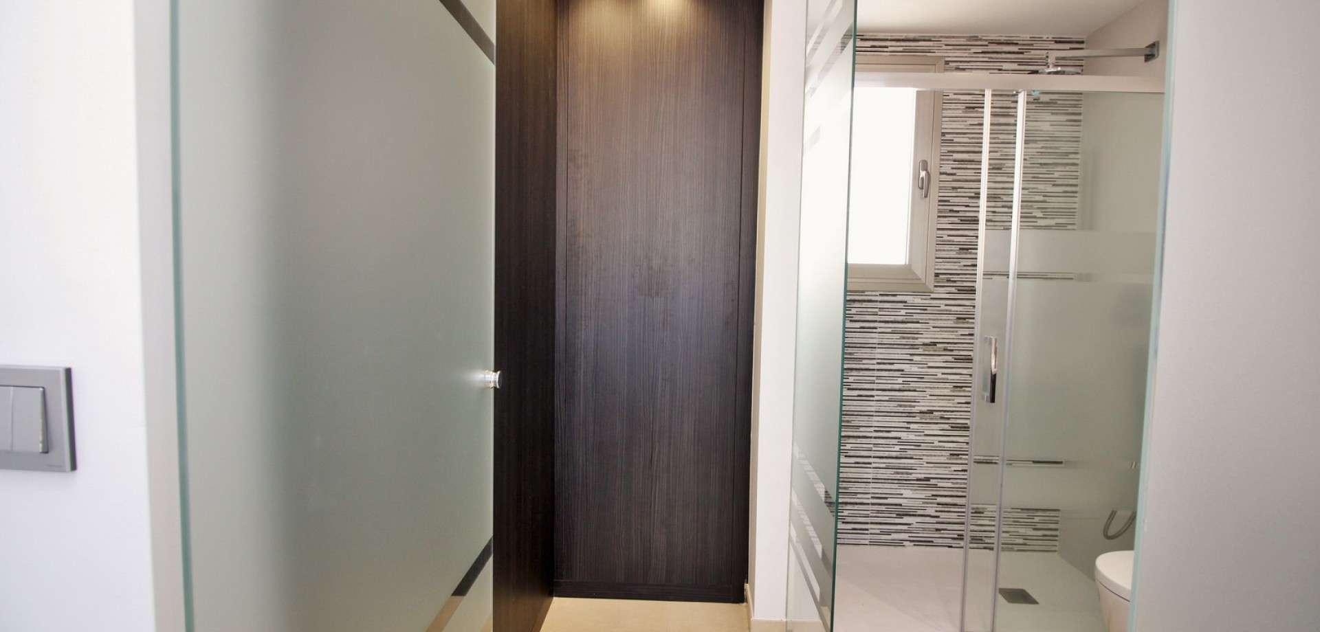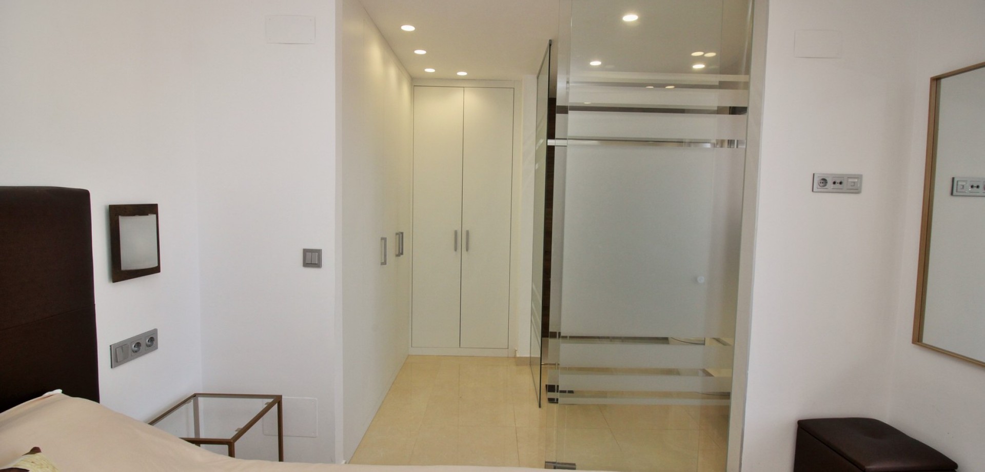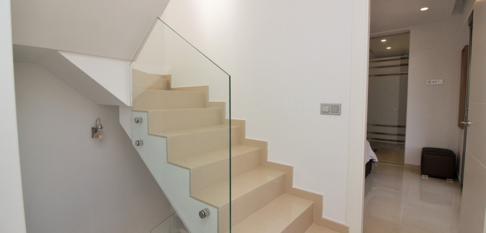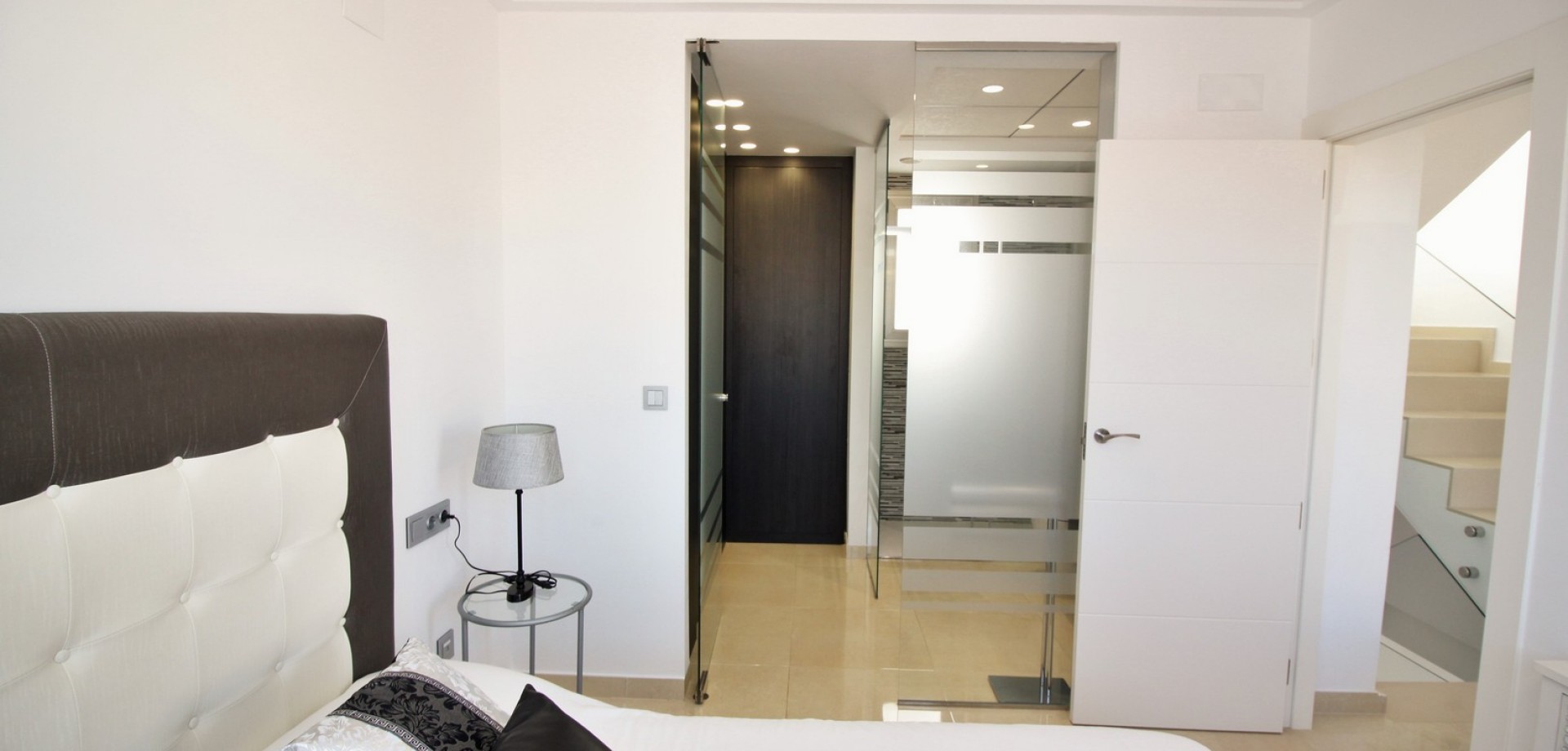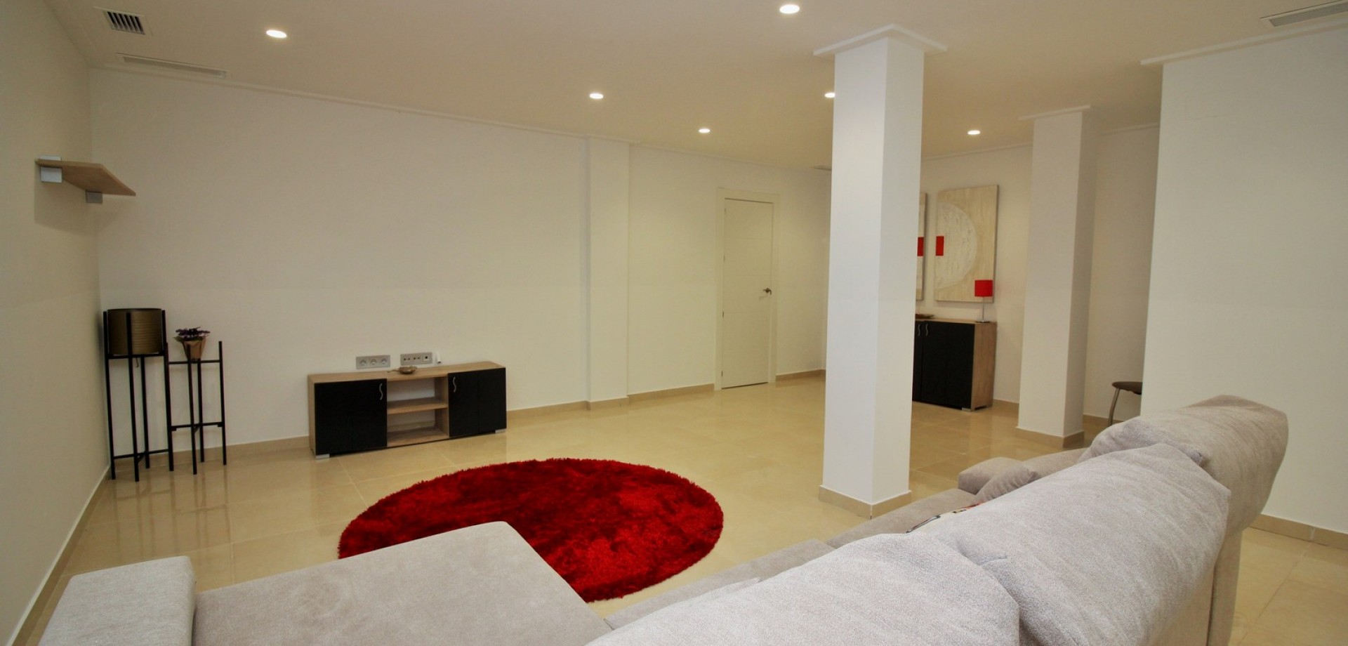The living accommodation on the ground floor comprises of a bright and open lounge-dining area with modern kitchen to the side with built-in appliances, a downstairs bedroom with fitted wardrobes and a bathroom with walk-in shower. There are big sliding doors in the lounge and kitchen area which leads out to the pool area, and bring in lots of natural light. Upstairs there are a further 2 double bedrooms with double fitted wardrobes and both have en-suite bathrooms. There is a large balcony on the first level which is accessible from both bedrooms and from the landing. Internal stairs from the landing leads up to the large roof solarium, offering all day sunshine! Internal stairs from the lounge leads down into the underbuild, which offers a massive space to use as a 2nd lounge area / cinema room, with an additional 2 double bedrooms, bathroom with walk-in shower, and a storage room.