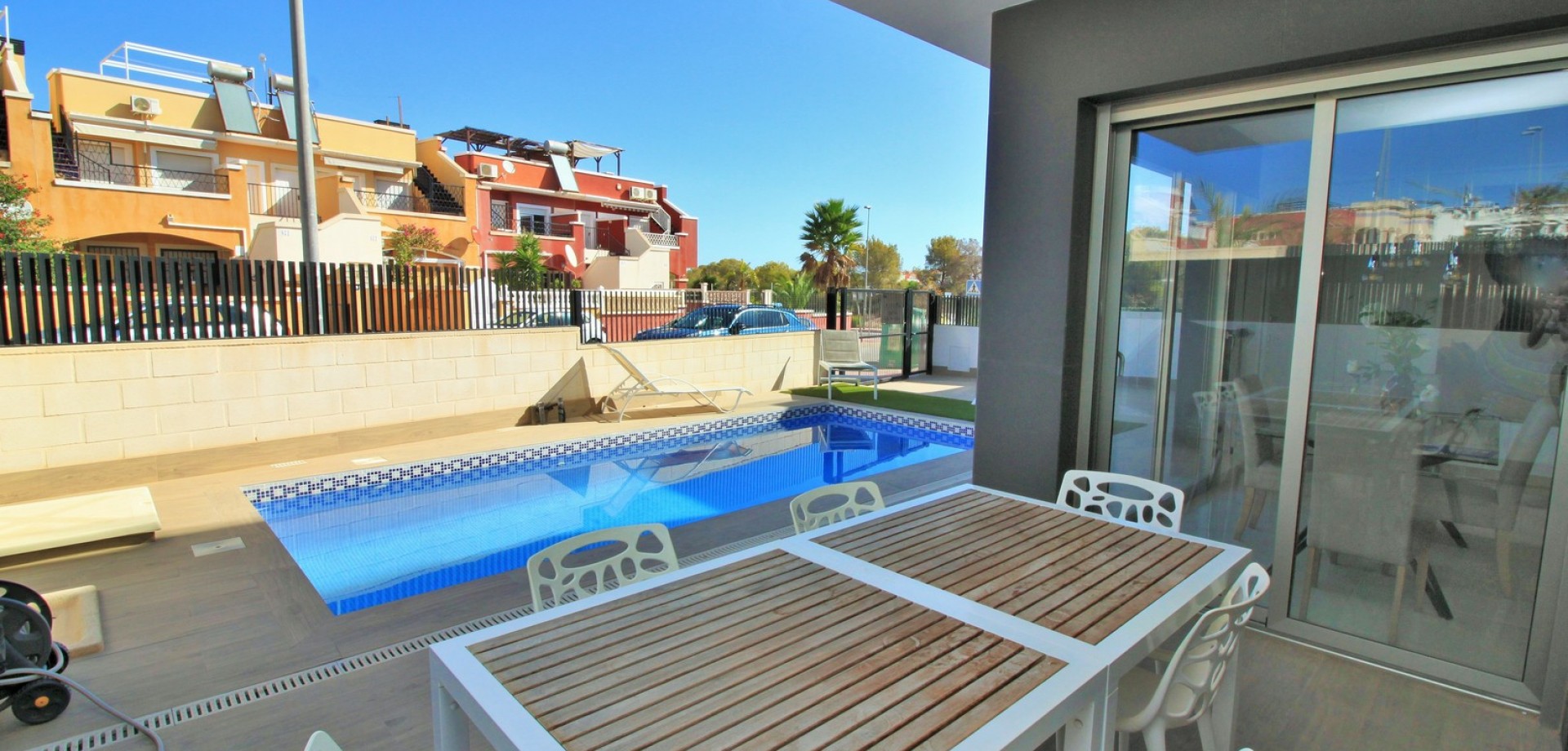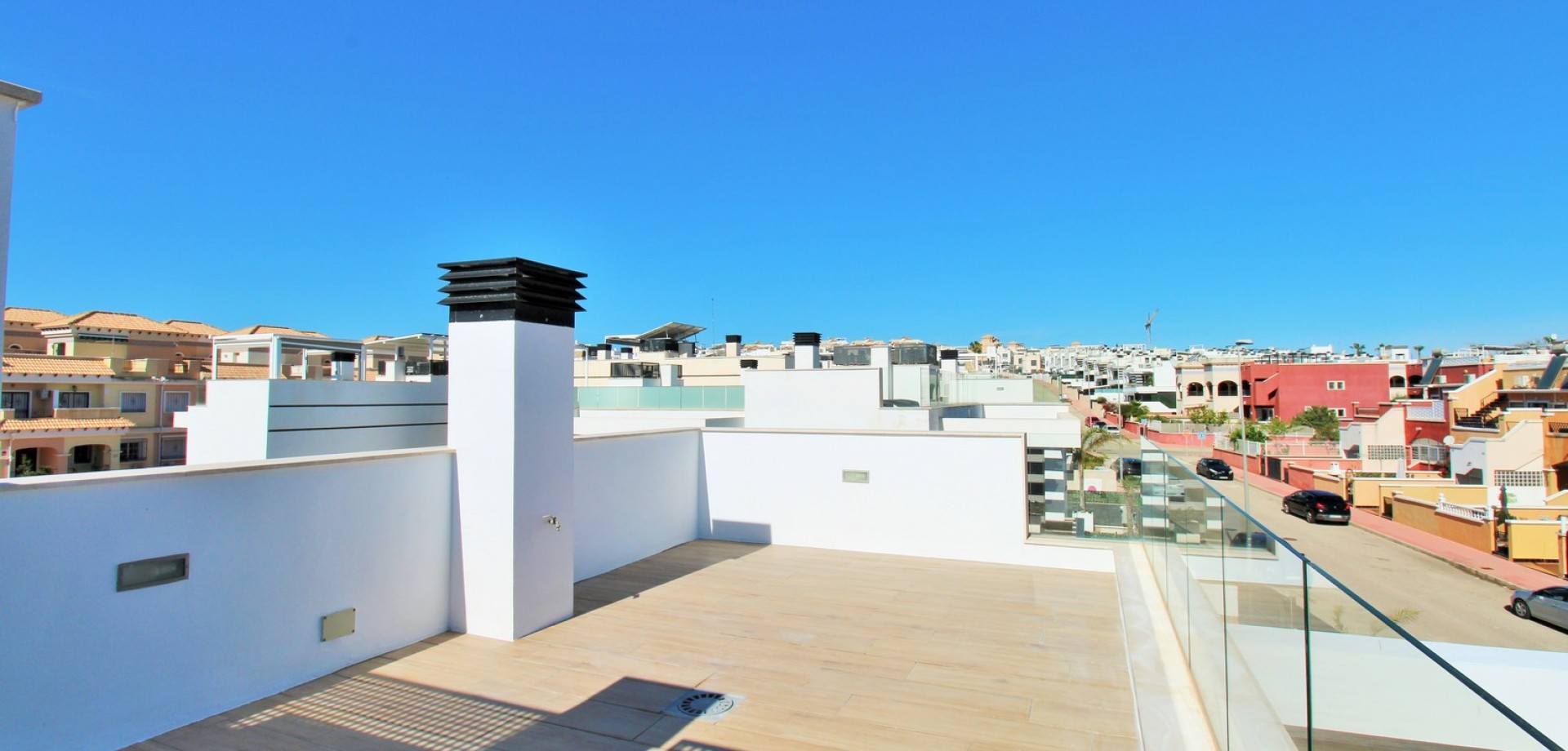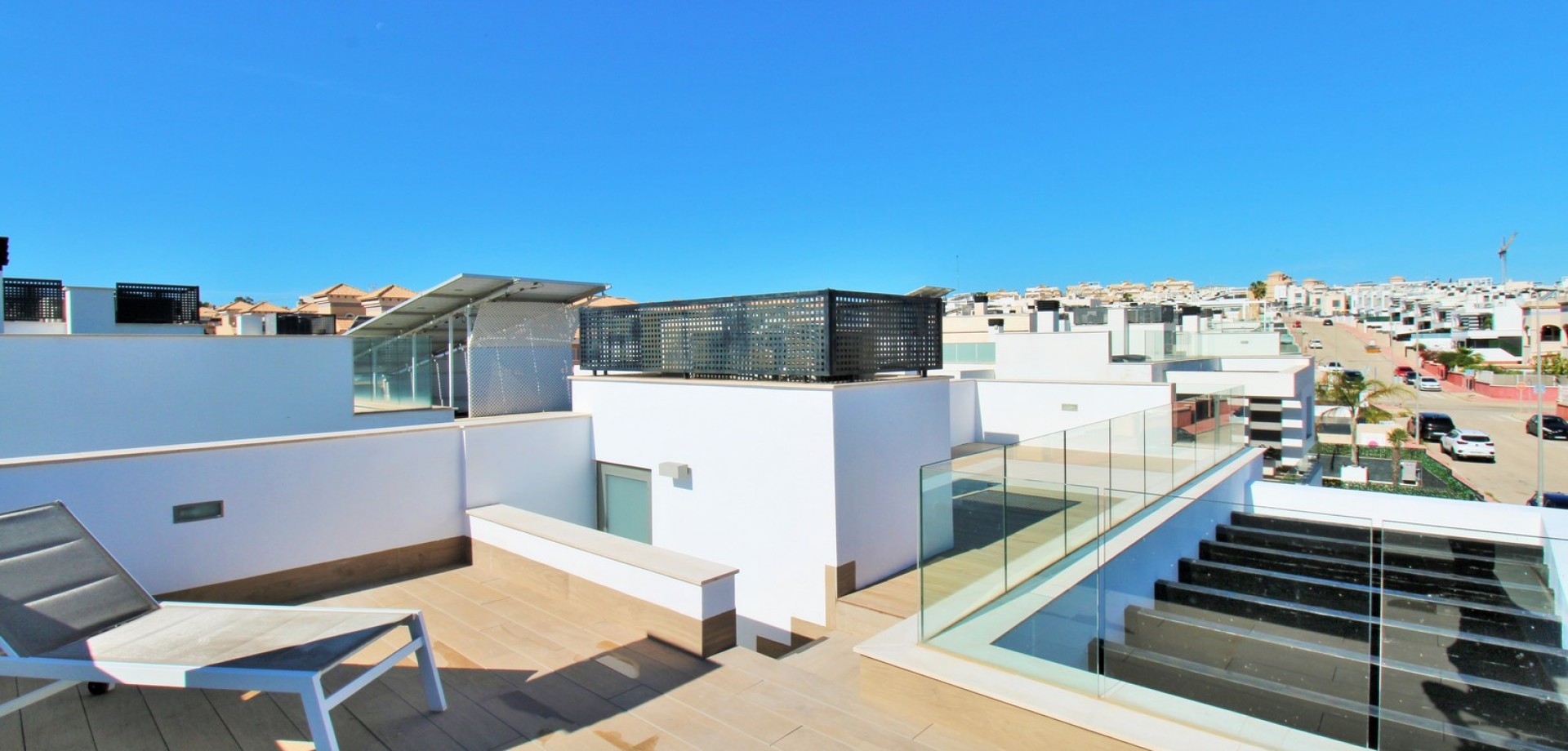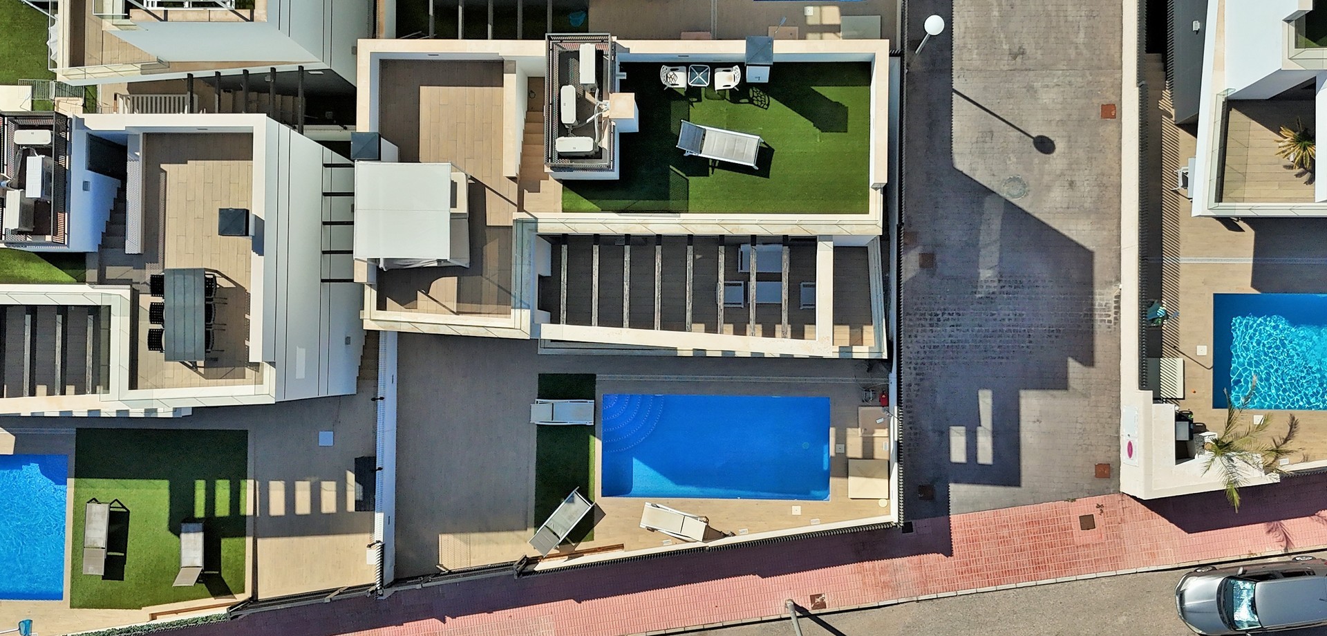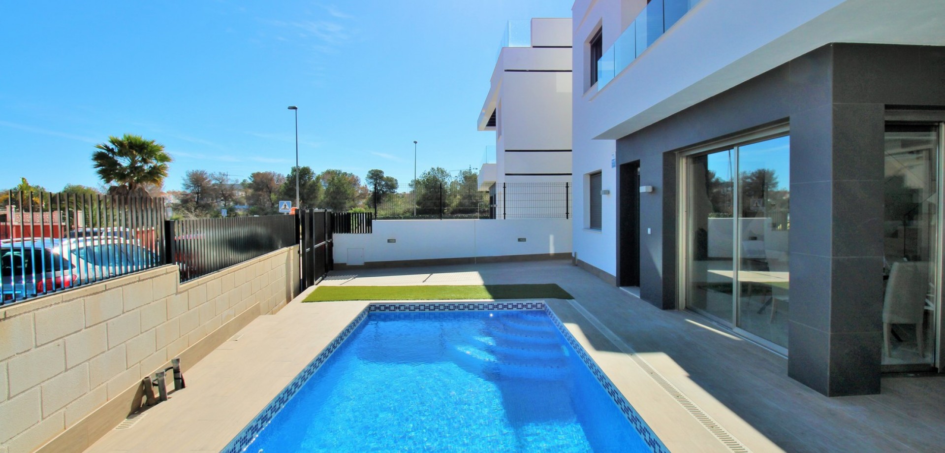 Luxury 5 bedroom, 4 bathroom detached villa with private pool and underbuild for sale in the Pau 26 area of Villamartin. This stunning property was built in 2019, and offers great outdoor space including a private garden with off-road parking, private swimming pool, private balcony and a large roof solarium. An ideal home for permanent living or used as a holiday home, with great rental potential!