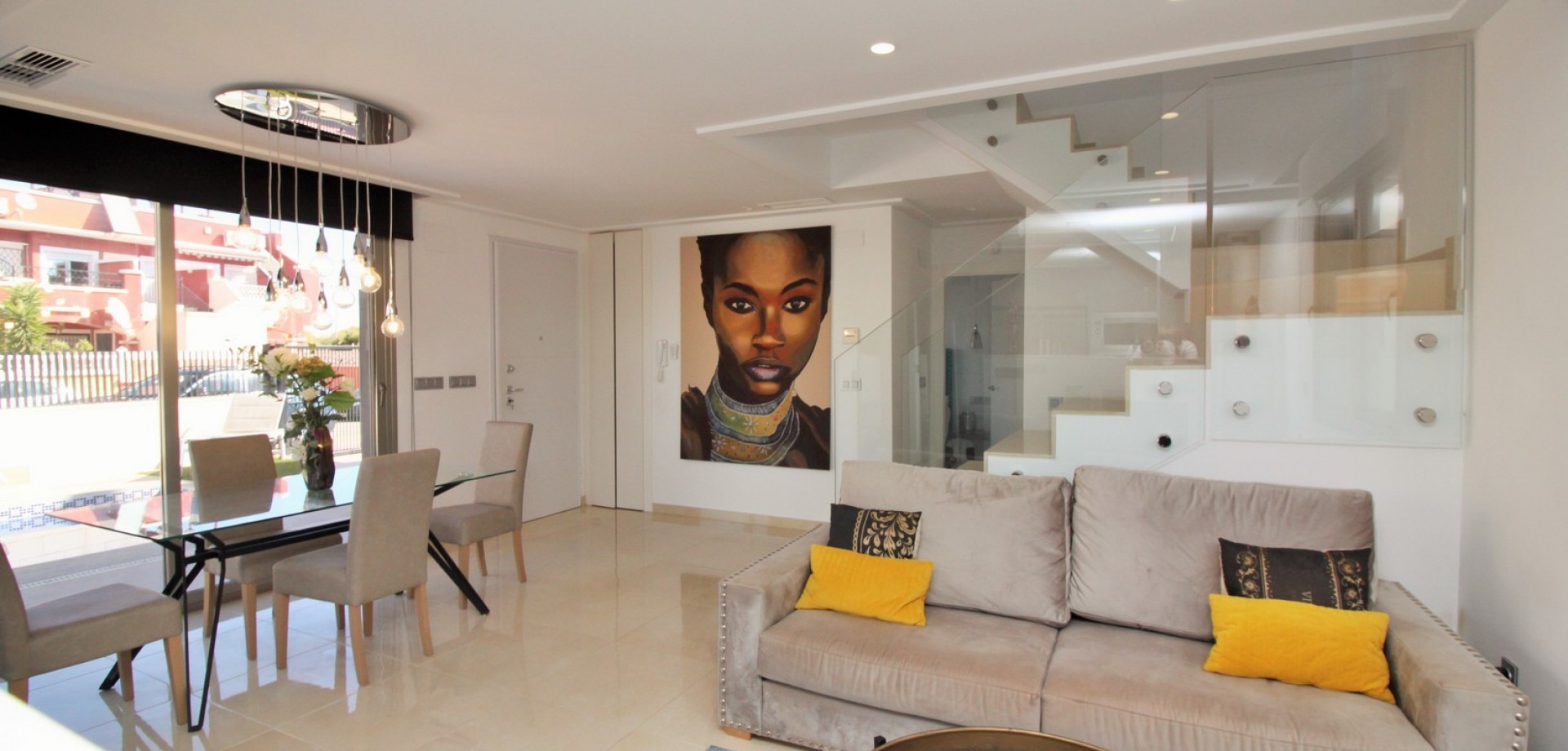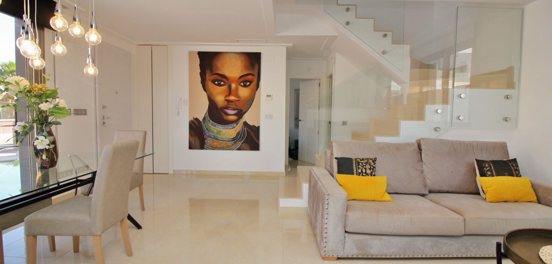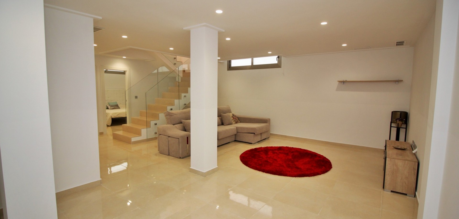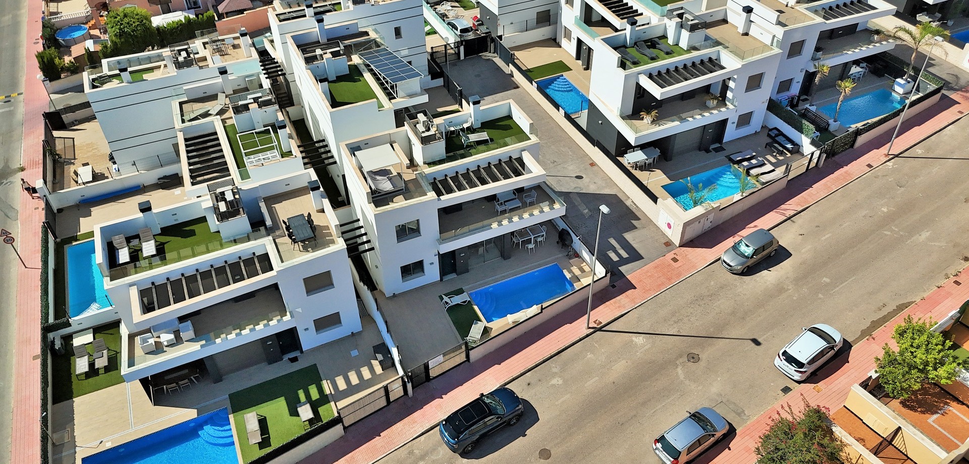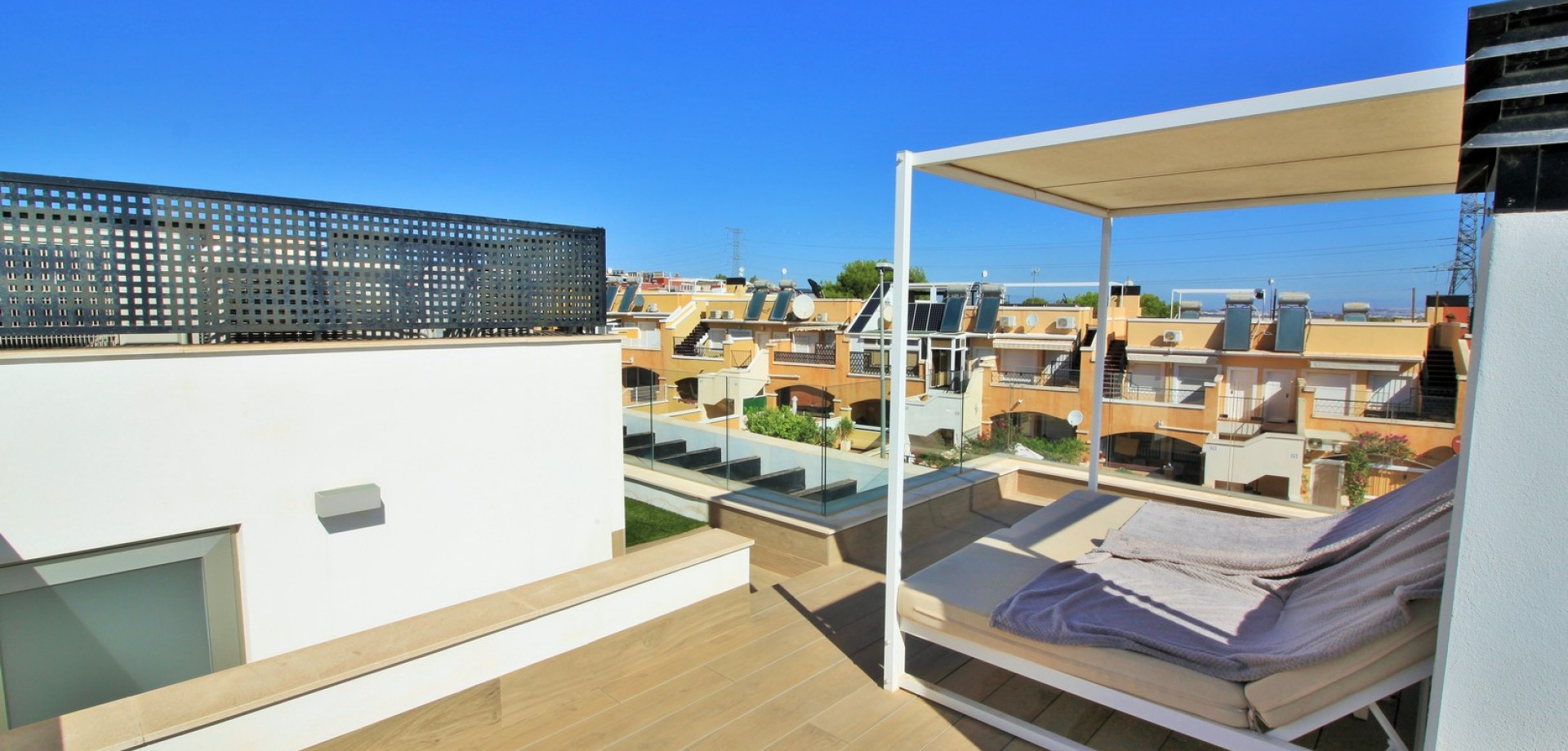 Luxury 5 bedroom, 4 bathroom detached villa with private pool and underbuild for sale in the Pau 26 area of Villamartin. This stunning property was built in 2019, and offers great outdoor space including a private garden with off-road parking, private swimming pool, private balcony and a large roof solarium. An ideal home for permanent living or used as a holiday home, with great rental potential!