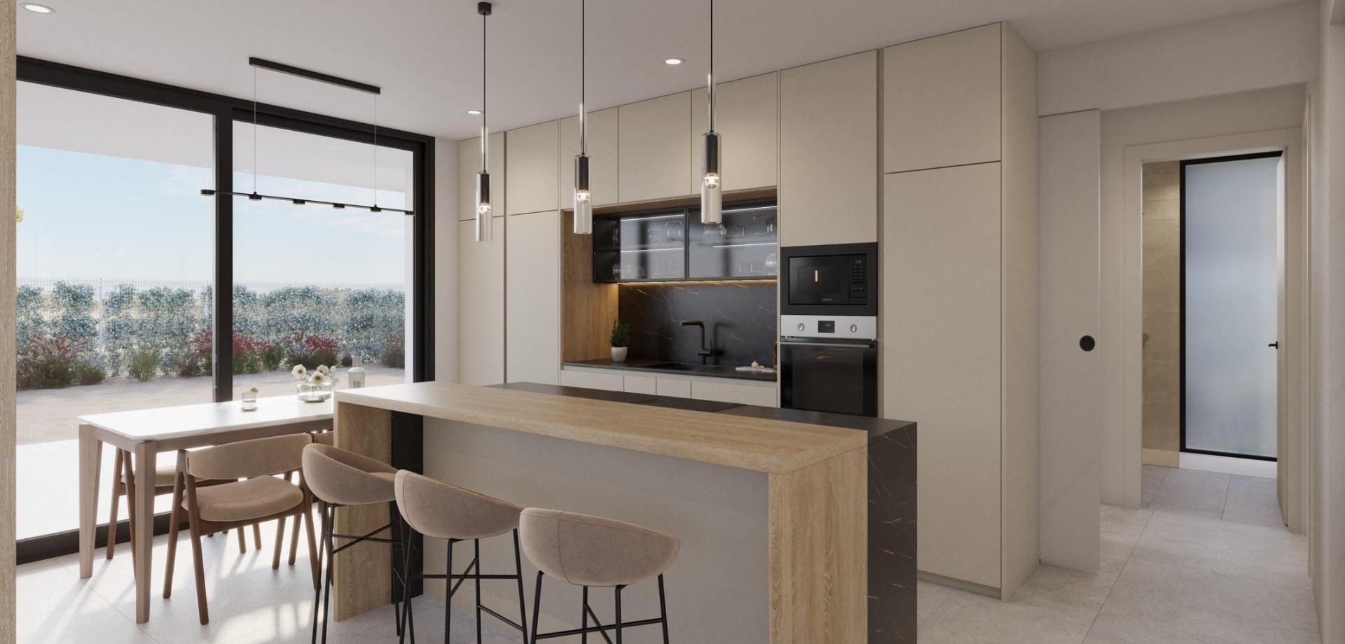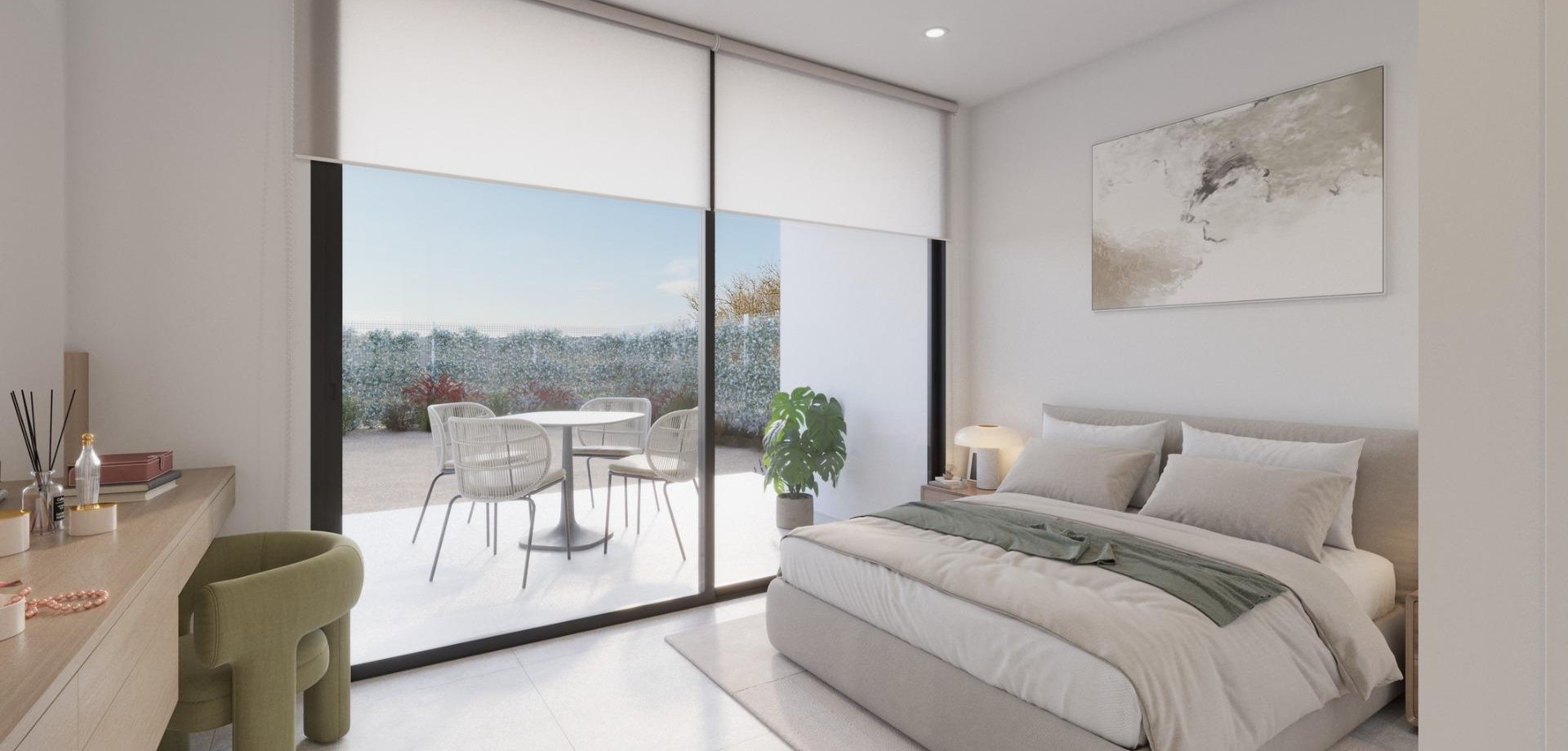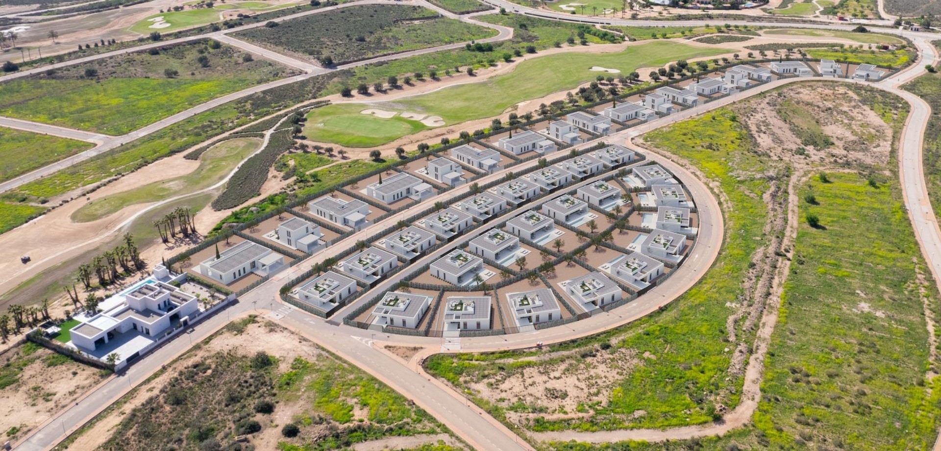 Exclusive villas with private pools at Hacienda del Álamo Golf Resort, Costa Cálida Modern villas with private pools in one of Spain's finest golf resorts Discover a unique opportunity to purchase a newly built villa at an exceptional price in the Hacienda del Álamo Golf Resort, located between the historic cities of Cartagena and Murcia, in the heart of the Costa Cálida. These contemporary villas are designed to offer comfort, privacy and elegance, and are located in an exceptional setting dedicated to golf and leisure. Each property offers a spacious layout with 3 bedrooms and 2 bathrooms on one floor. Private rooftop solarium. With plots starting from 396 square metres and a built area of 111 square metres, these homes offer ample space for indoor and outdoor living. High quality features and finishes These villas are equipped with all modern amenities to ensure maximum comfort and style, including: Garden with drip irrigation system Fully equipped kitchen with fitted wardrobes and appliances included Pre-installation for ducted air conditioning Bathrooms with furniture, mirrors and shower screens Aluminium windows with thermal break and double glazing Access to a large communal swimming pool with natural grass and children's play area Private 3x6 metre swimming pool with shower Luxury living at Hacienda del Álamo Golf Resort Hacienda del Álamo is renowned as one of Spain's finest golf resorts, offering residents a relaxed, sporty and comfortable lifestyle. 18-hole golf course and academy Sports facilities including tennis, paddle tennis, gym and fitness classes Main clubhouse with panoramic views, a Mediterranean restaurant and sunny terraces 4-star hotel and spa for relaxation and well-being Spaces for the whole family, with children's play areas, swimming pools and bike lanes. Traditional Spanish village with shops, cafés and new restaurants opening soon. Strategic location with excellent connections Corvera Airport (Murcia): 18 km (approx. 15 minutes) Cartagena: 36 km Murcia city centre: 40 km Mar Menor beaches: 28 km Shopping centres (Dos Mares, Espacio Mediterráneo): less than 30 km Your dream home next to the golf course awaits you Whether you are looking for a permanent residence, a holiday retreat or a smart investment on the Costa Cálida, these golf course villas in Hacienda del Álamo are the perfect choice. Contact us today for more information or to arrange a personalised viewing.