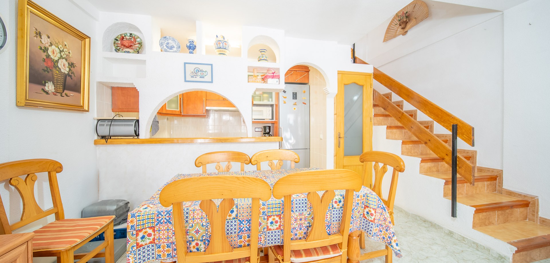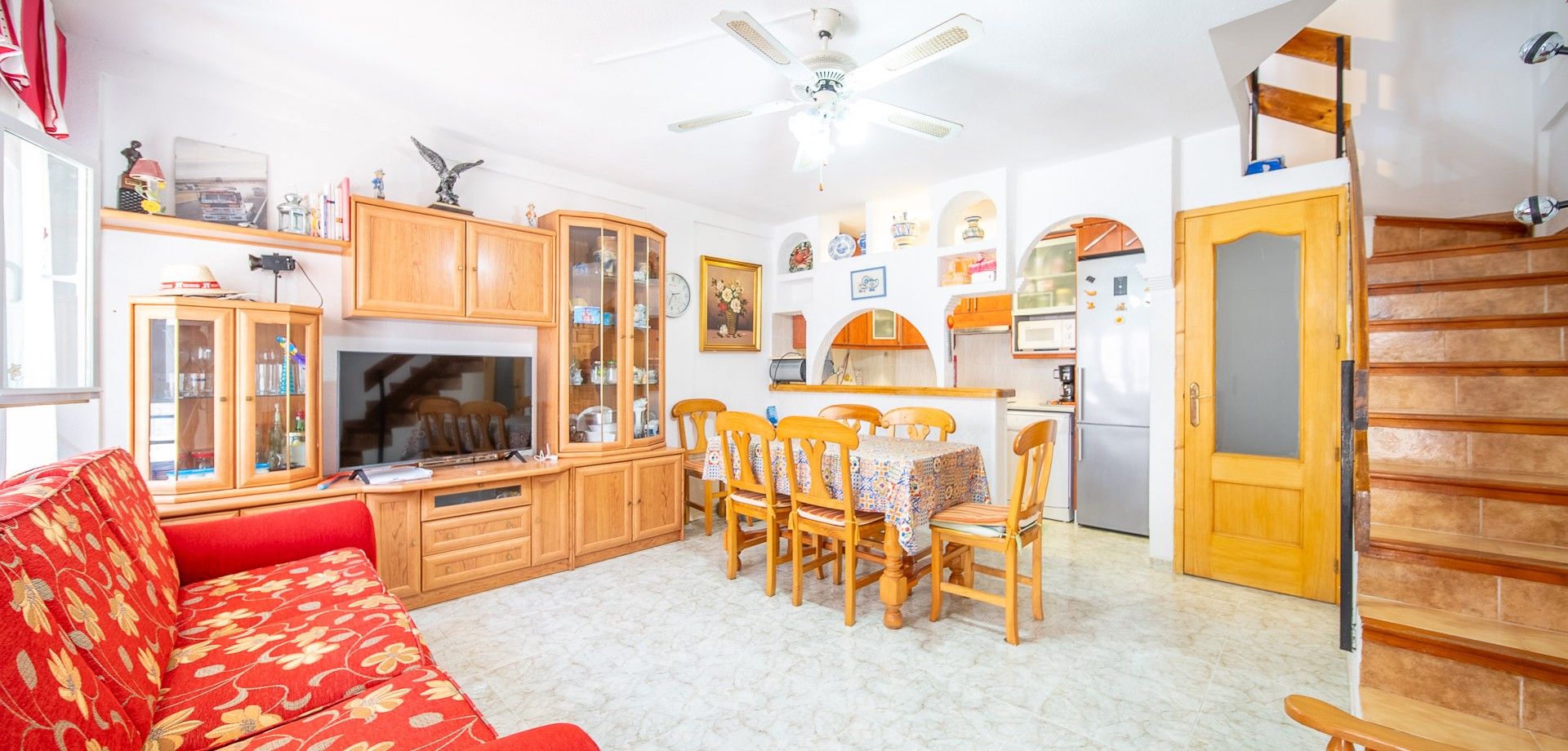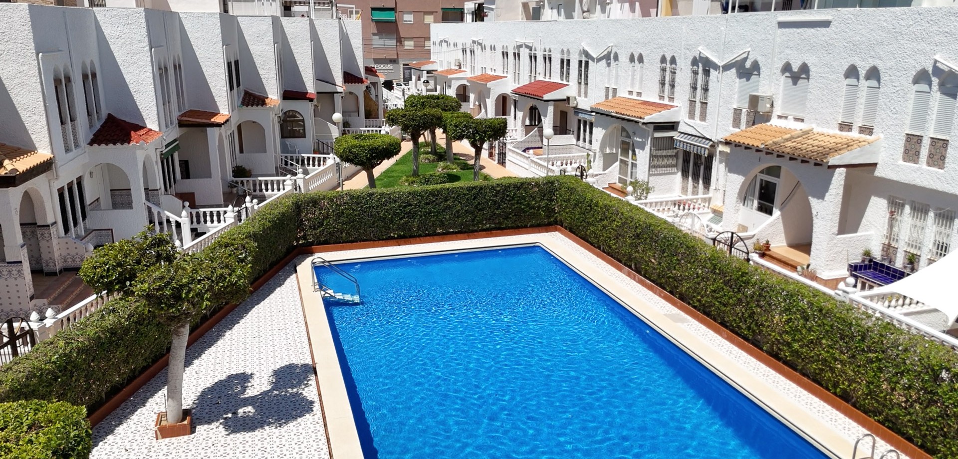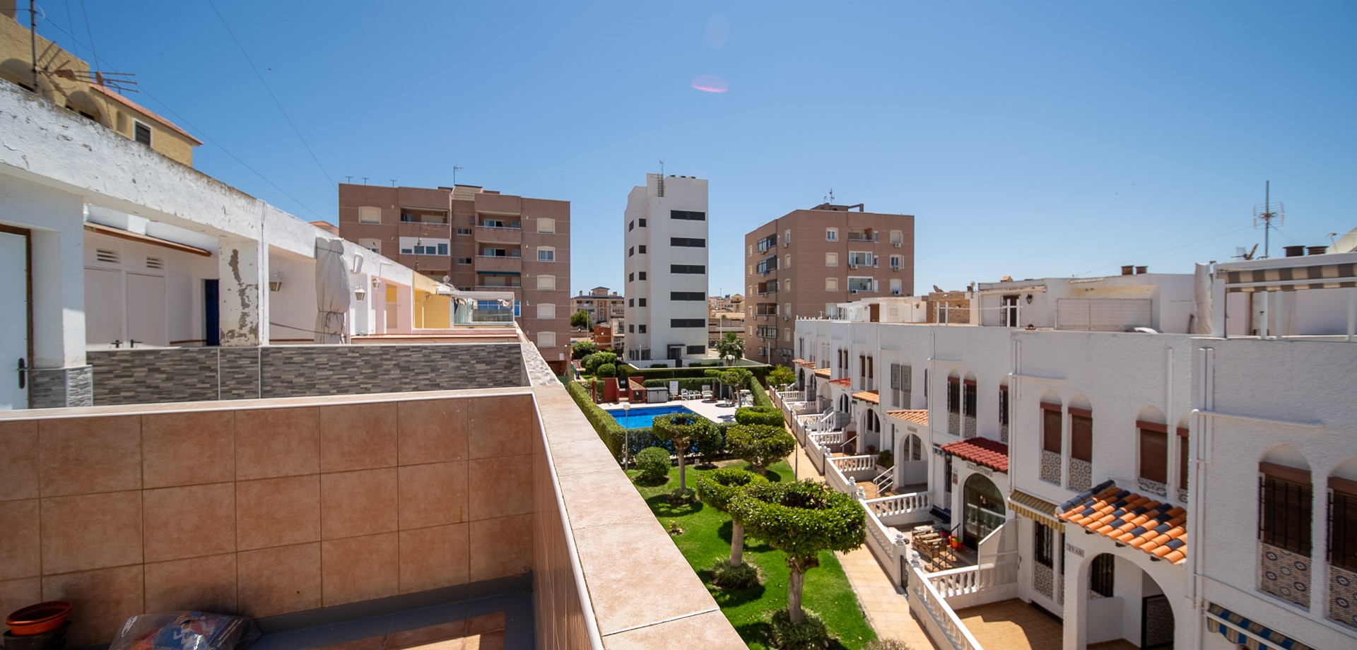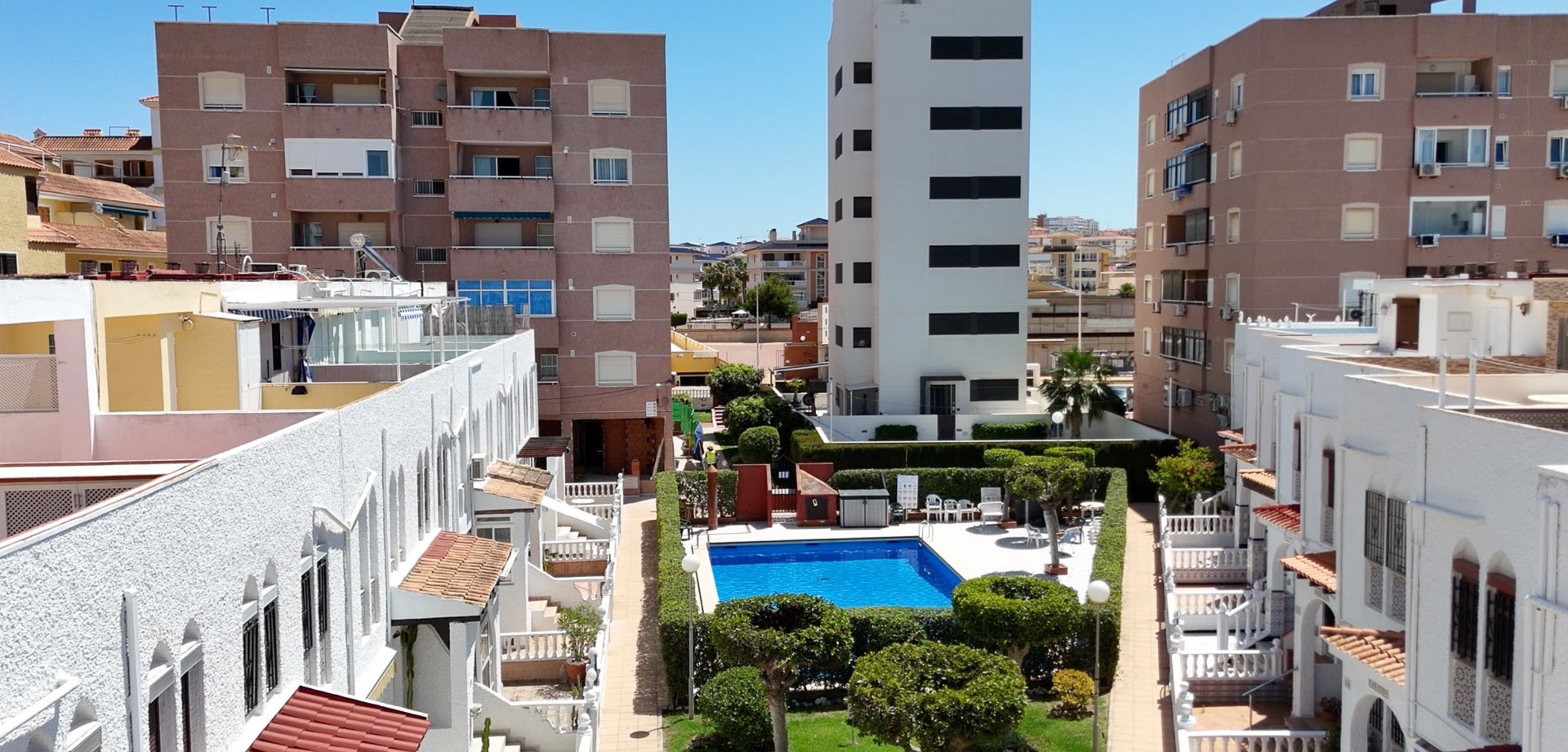 4-Bedroom Townhouse in La Mata, Torrevieja 4 bedrooms | 2 bathrooms | 99 m² | Pool | Private parking Year built: 2000 We present this fantastic townhouse located in a quiet residential area with a communal pool and private parking space. With spacious rooms and a functional layout, it’s ideal as a permanent residence or as an investment with great rental potential. Distributed over three floors, it offers 4 bedrooms, an open-plan kitchen connected to the living room, and several outdoor areas: a cosy front terrace and a private solarium with barbecue to enjoy the Mediterranean climate. An excellent opportunity for those seeking comfort, location, and profitability. Expenses: IBI: €250/year | Community: €270/year