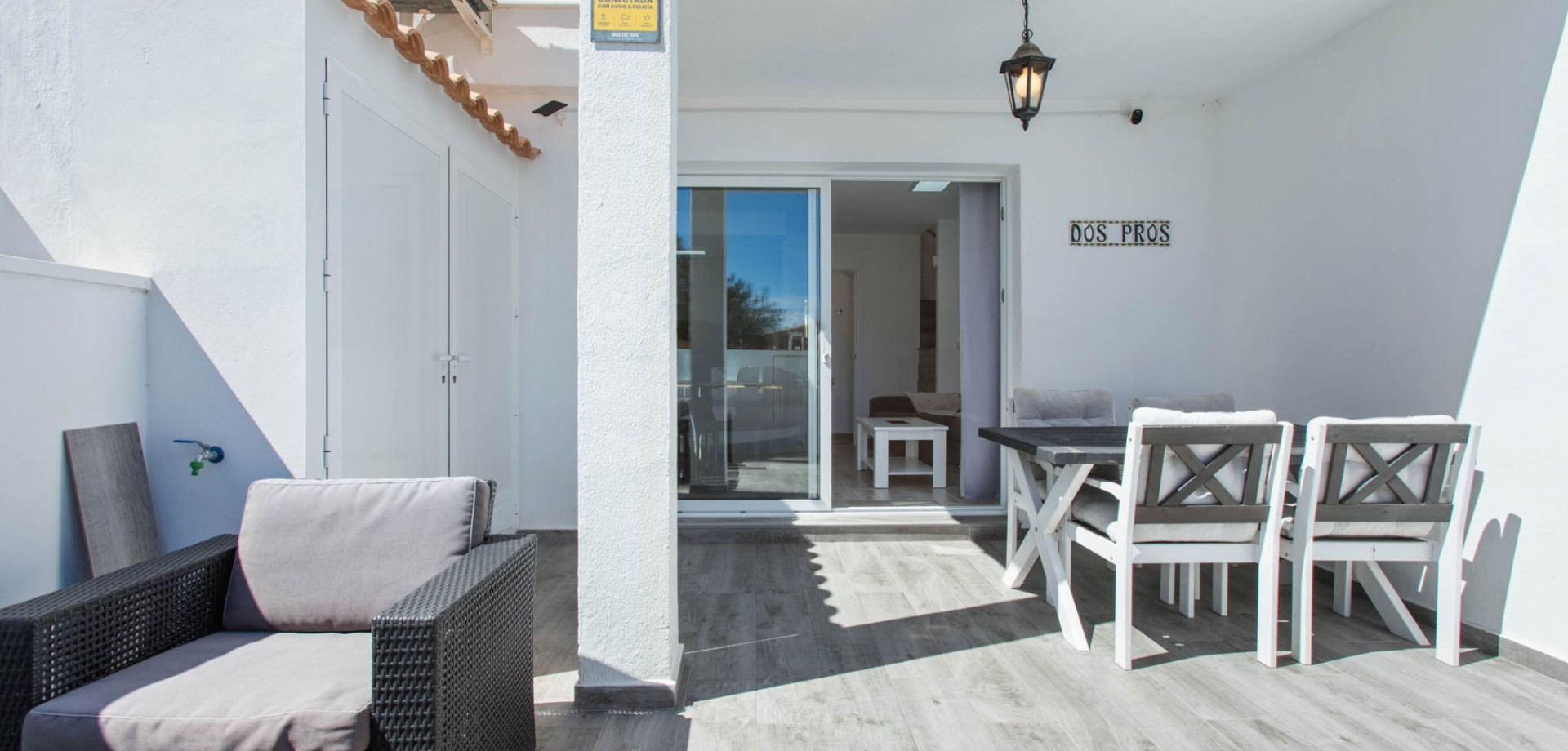 Welcome to this fully renovated and modern two-storey townhouse, located in the sought-after Lago Jardin community in Torrevieja. This beautiful and bright home offers stylish and functional living spaces that feel brand new – a perfect place for comfortable living. Cosy and Functional Spaces The entrance is through a private gated terrace, including a covered section – ideal for morning coffee or al fresco dining. On the ground floor, you’ll find a spacious living room, a modern kitchen, and a separate toilet, providing a practical layout for both everyday life and holiday enjoyment. Upstairs there are two bedrooms, each with large built-in wardrobes, and a beautifully renovated bathroom. The entire home was refurbished in 2023 with high-quality materials, evident in the fresh surfaces and stylish details. Three air heat pumps ensure a pleasant temperature all year round. Green and Friendly Lago Jardin Lago Jardin is known for its peaceful and pleasant atmosphere, as well as its fantastic communal areas. Residents enjoy vast green areas, a large pool area with a restaurant, and tennis courts. The surroundings invite you to enjoy the outdoors and the services the community offers. Excellent Location Close to Services This townhouse is perfectly located near all essential amenities: The nearest restaurant is located directly at the community’s own pool area. Mercadona supermarket is only about 650 metres away. The coastline is around 3.5 kilometres away. Torrevieja city centre and its services are approximately 6 kilometres away. Alicante Airport is about 49 kilometres from the property. This beautifully renovated and bright townhouse offers everything needed for permanent living or as a holiday home. Come and see it for yourself and fall in love with the tranquil atmosphere and fantastic facilities of Lago Jardin!
