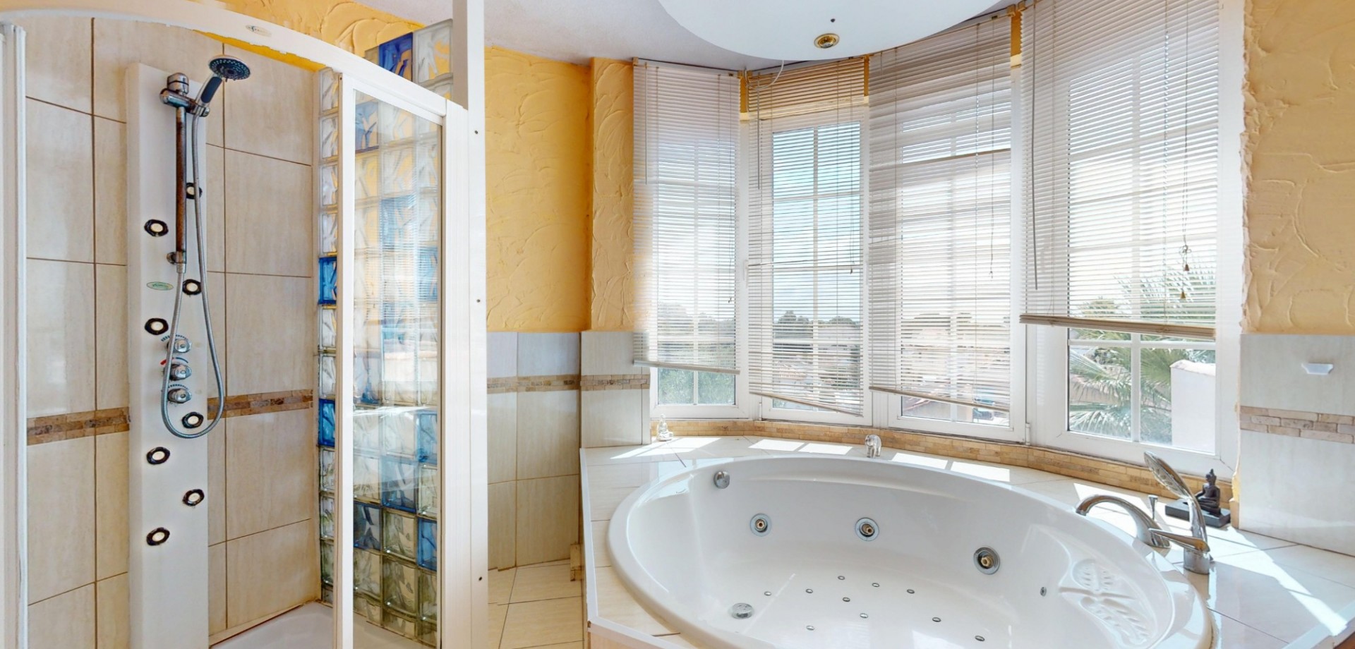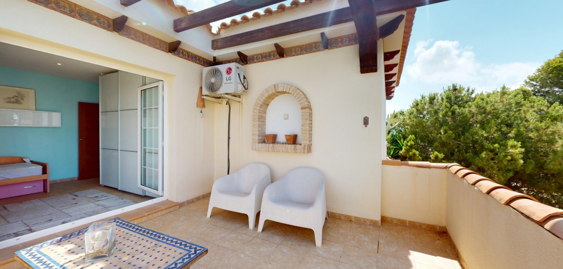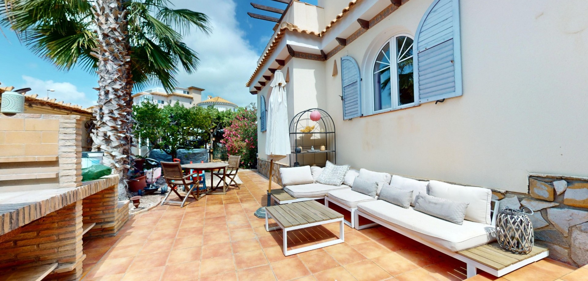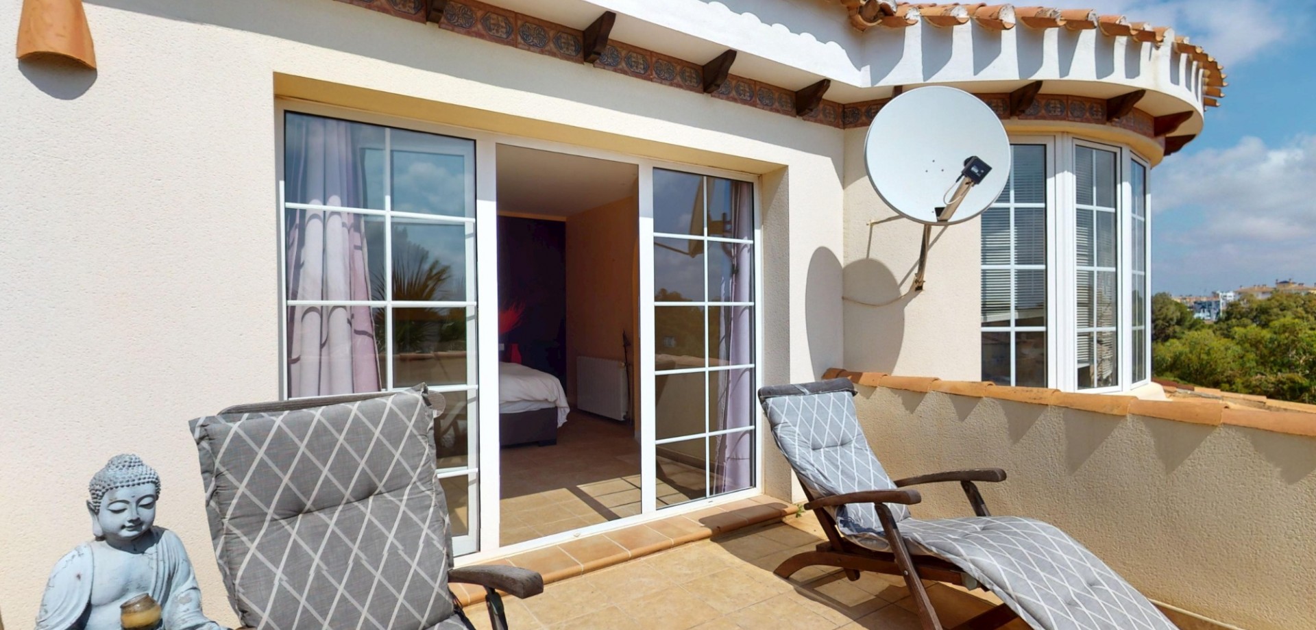 This spacious and move-in ready villa in Orihuela Costa offers everything needed for comfortable living on the Costa Blanca. The property features five full-sized bedrooms and three complete bathrooms, including a luxurious bathroom with jacuzzi. Spread over multiple levels, the villa offers bright, open living spaces, a fully equipped kitchen, and several lounge areas. Outside, you’ll find a large private pool, various sun terraces, and a well-maintained garden with plenty of space to relax and enjoy the Mediterranean climate. The home is equipped with air conditioning and central heating for year-round comfort. Located just a short distance from shops, restaurants, golf courses, and the coastline, this villa is a standout in one of the most sought-after areas of southern Spain.