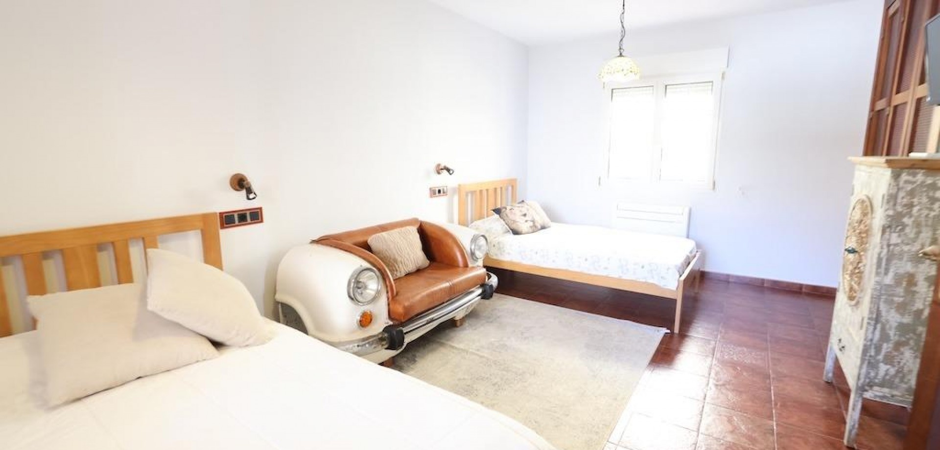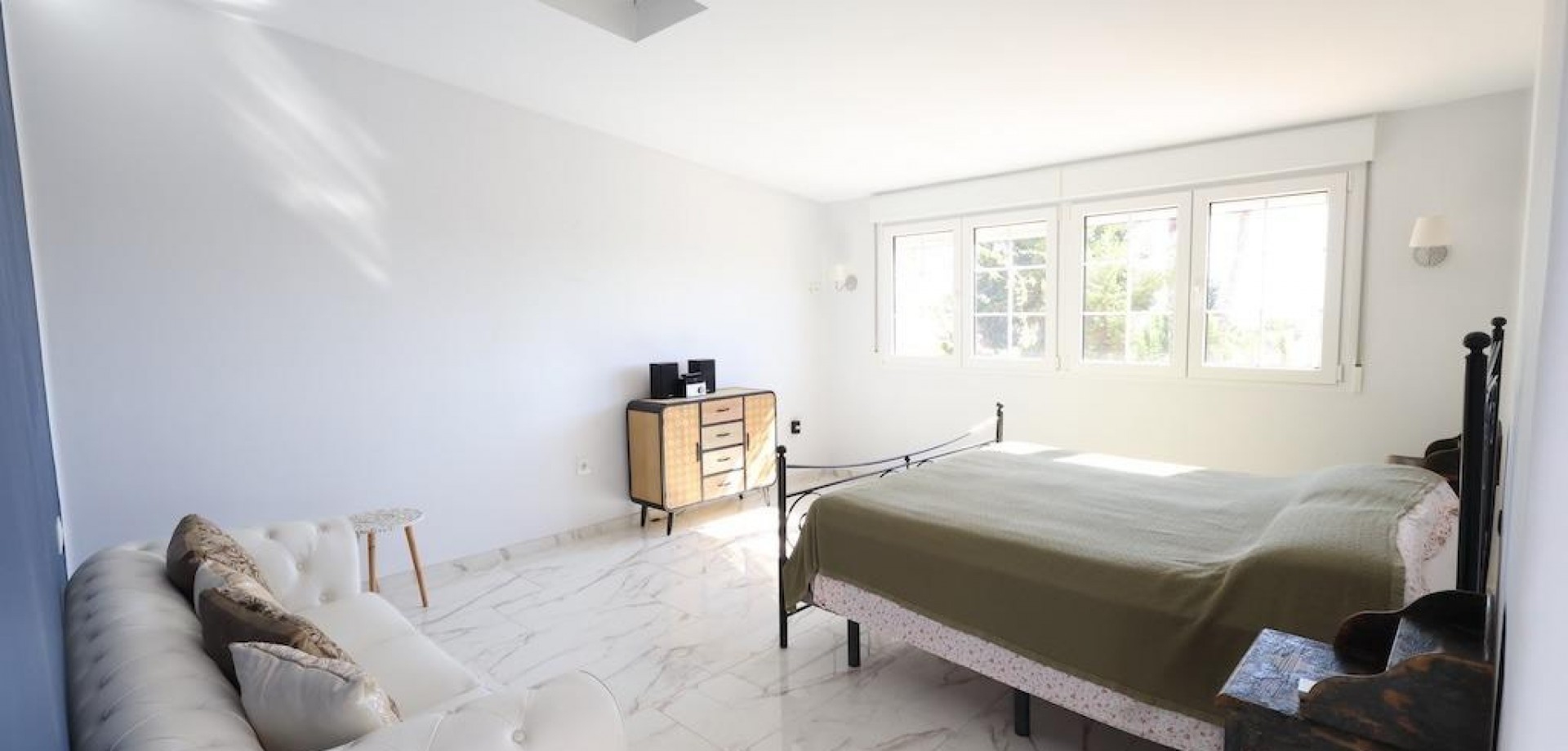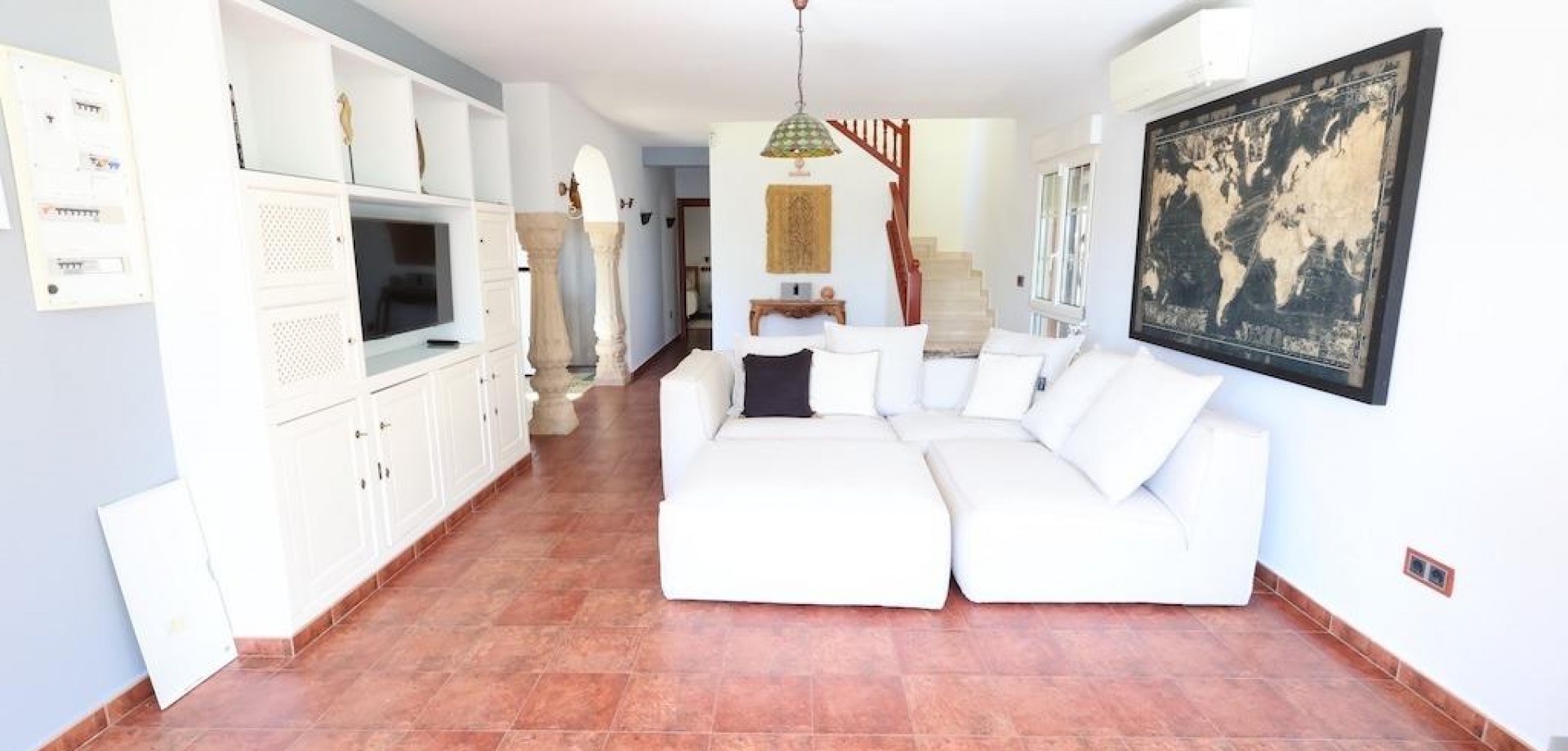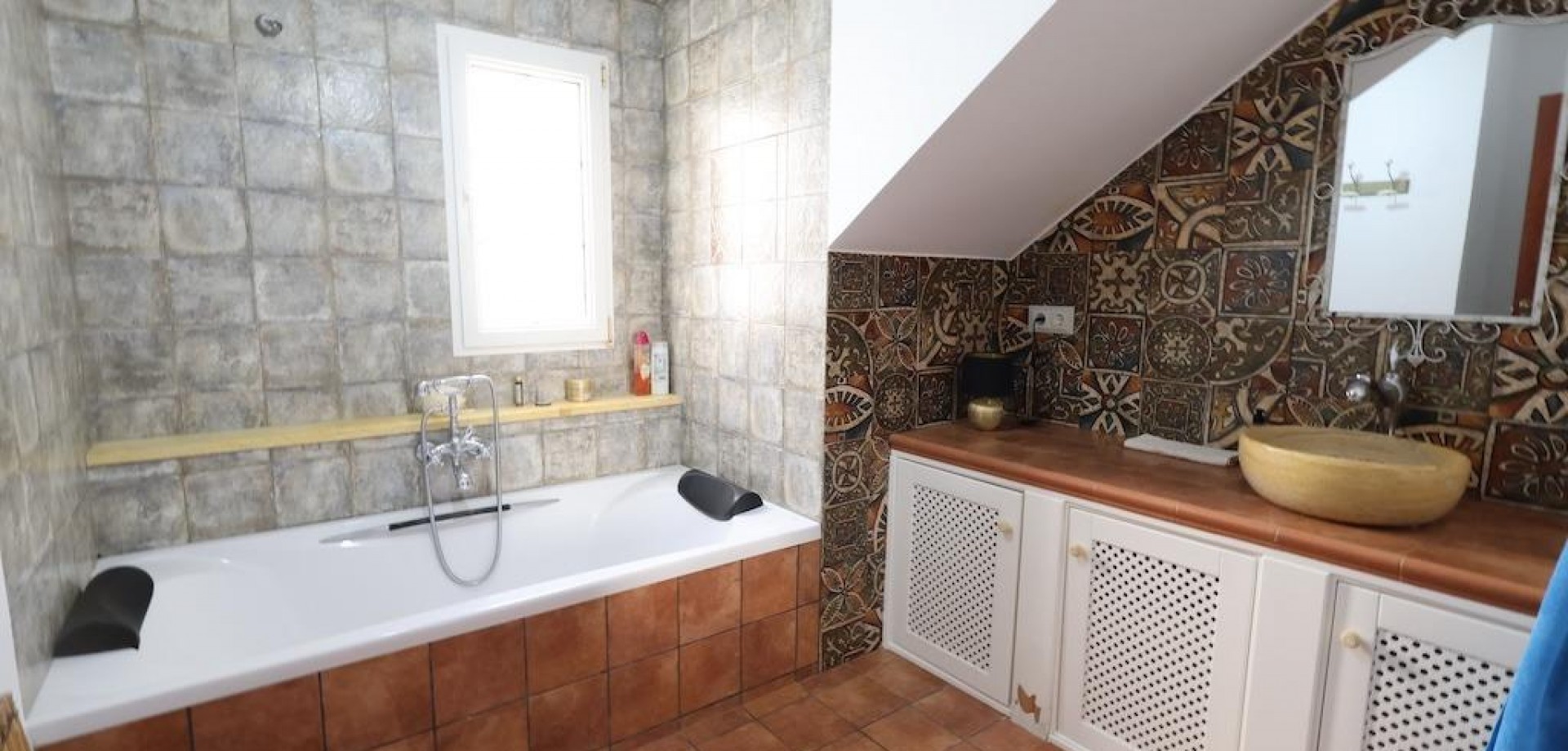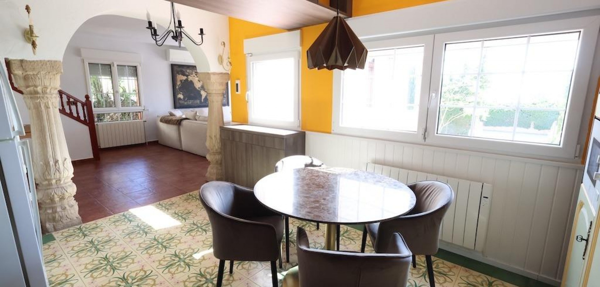 Detached villa located in one of the best areas of Villamartín, just a few meters from the entrance to the golf course. With a constructed area of 189 m2 spread over two floors plus a basement, and a 240 m2 plot, this property offers spaciousness, comfort, and excellent orientation.. . The home has a total of 4 bedrooms and 3 bathrooms. On the ground floor, we find a bright, generously sized living-dining room, a spacious, fully equipped independent kitchen, a bedroom, and a full bathroom. Upstairs is the master bedroom with a dressing room, en-suite bathroom with sauna, and a large terrace with unobstructed views.. . The basement, with independent access, has two additional bedrooms, a full bathroom, and a second living room, ideal for guests or as an additional private space.. . Outside, the property offers a private garden, driveway, barbecue area, and a relaxing jacuzzi located at the rear, perfect for enjoying the Mediterranean climate.. . It is sold furnished and equipped with air conditioning. An ideal home for both permanent residence and vacation, in a prime location close to golf courses, amenities, and beaches.
