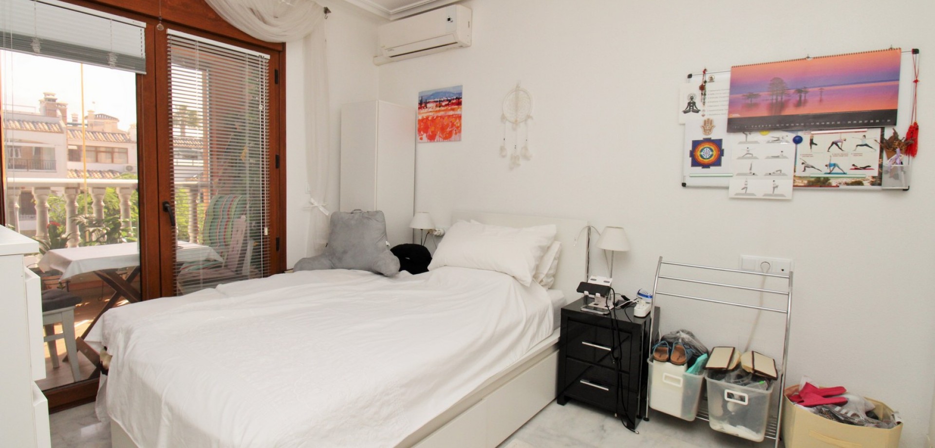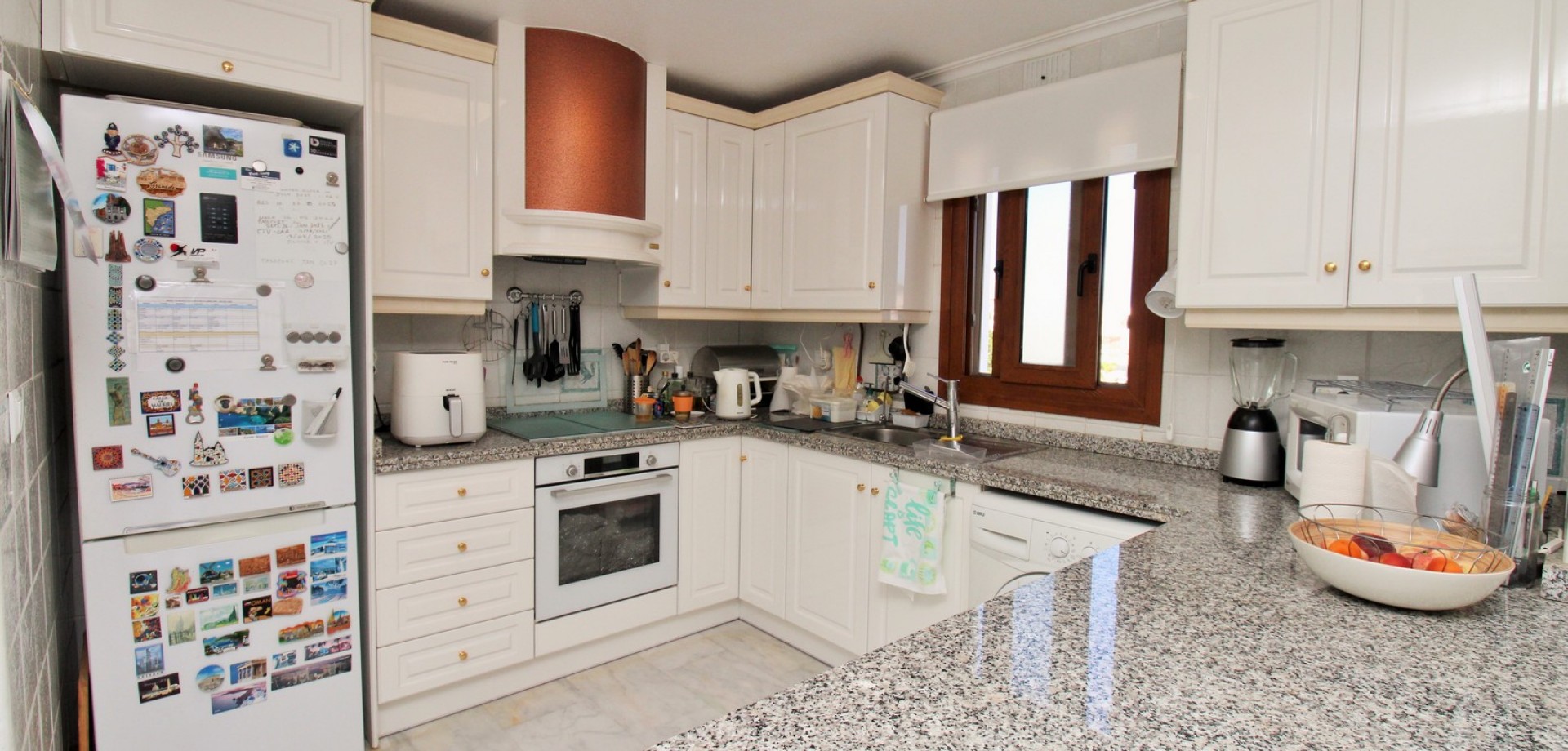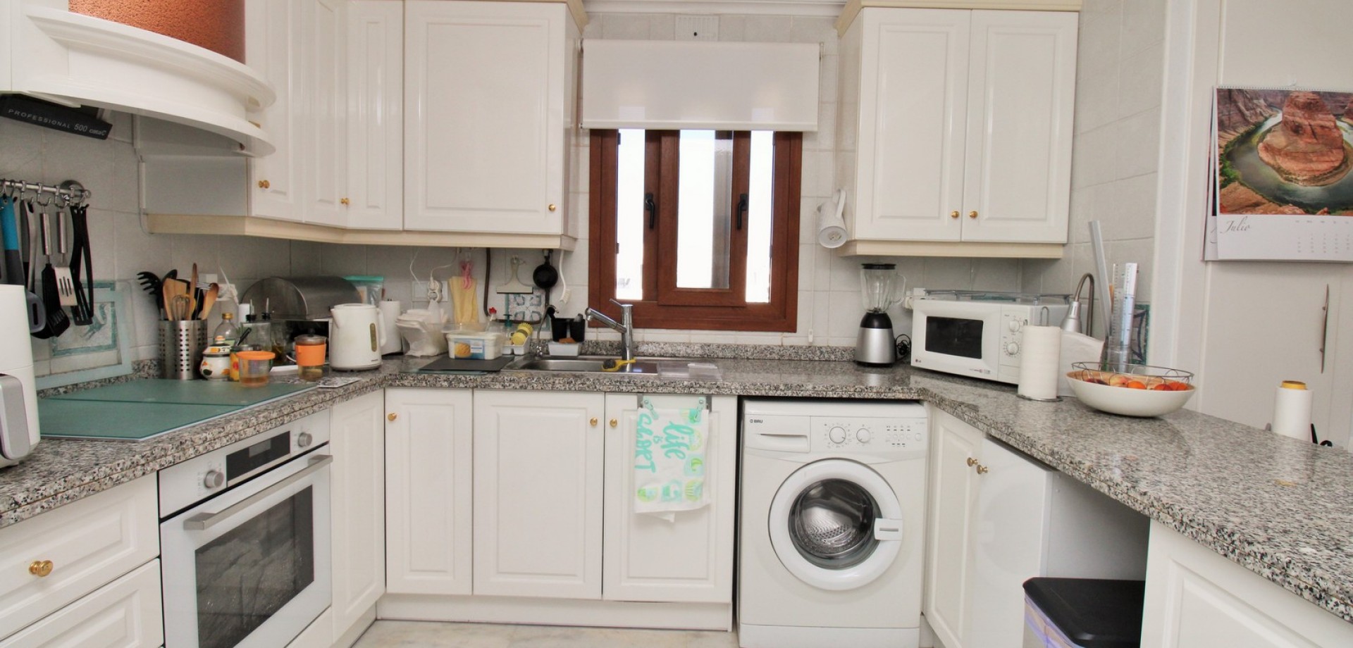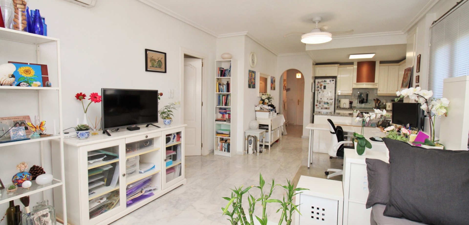 This beautifully presented 2-bedroom, 2-bathroom corner apartment is set in the sought-after Pau 8 area of Villamartin, combining quality finishes with a superb location. Situated within a secure gated community, the property offers a bright open-plan living and dining area, leading onto a glazed terrace that’s perfect for year-round sun. The interior is finished to a high standard, featuring marble flooring, integrated wardrobes, and air conditioning throughout—making it ready to enjoy from day one. Additional features include underground parking, a private storage room, and access to a generous communal pool—ideal for unwinding or socialising in the Costa Blanca sunshine. The location is hard to beat: just a short stroll to the lively Villamartin Plaza with its excellent choice of restaurants, bars, and shops, and only a couple of minutes by car to the renowned Villamartín Golf Course. Whether you're looking for a full-time residence, a holiday home, or a strong rental investment, this apartment ticks all the right boxes.