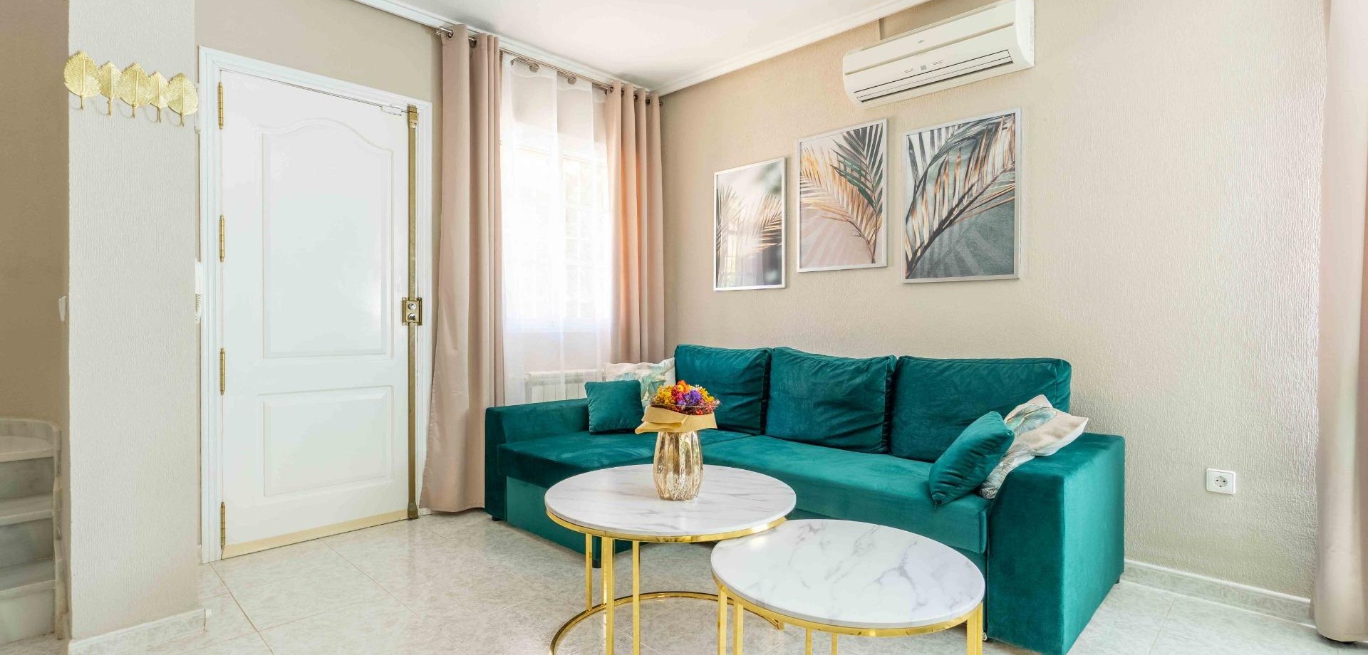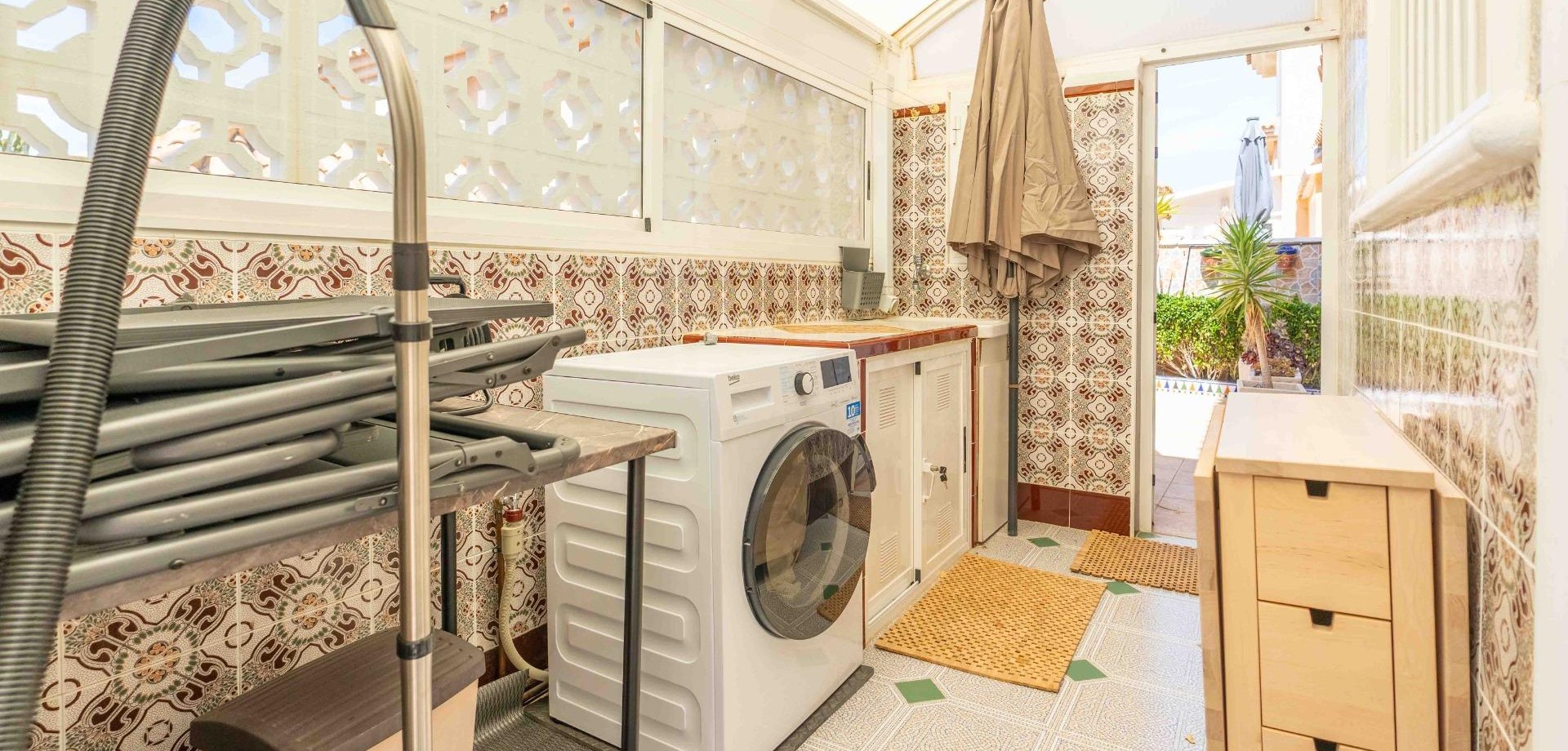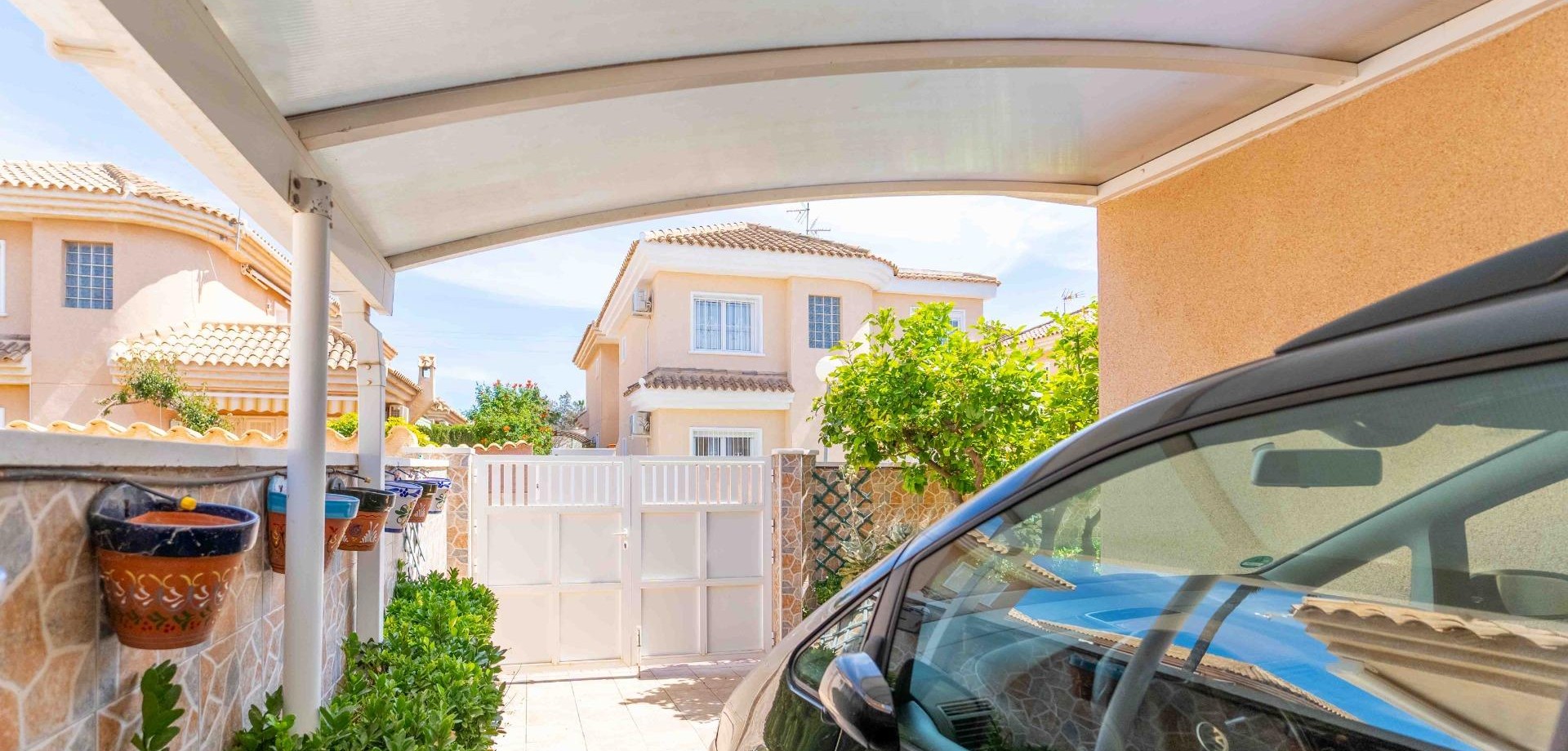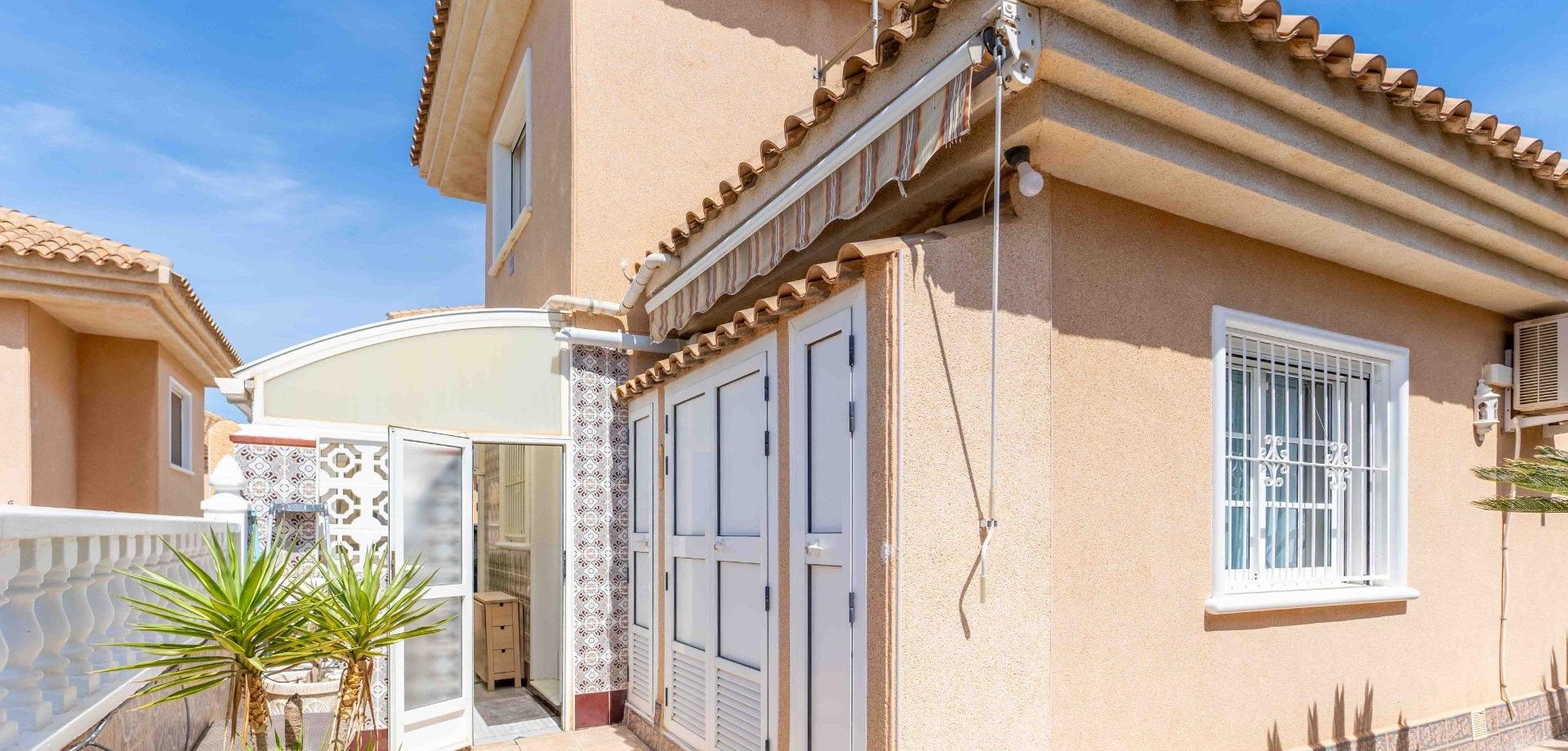 I present this detached villa with a private garden. It is located in a quiet residential area in Punta Prima, Orihuela Costa. It is just 10 minutes from the beach and 9 minutes from La Zenia Shopping Center.~~The villa has been renovated and furnished. It has 182 m2 of built area, distributed over 2 floors. Upon entering, we find a beautiful garden with a seating area and on-site parking.~~Upon entering, we find a large renovated living room, a separate fully equipped kitchen, and a laundry room for your comfort. It has 3 bedrooms and 2 bathrooms with underfloor heating. There is also a large and bright south-facing terrace of approximately 20 m2 with incredible unobstructed views.~~The residential area has communal pools and is surrounded by green areas. Perfect for hot summers.~~Located in a quiet area surrounded by all amenities, with shopping centers, schools, medical centers, supermarkets, and leisure areas. Perfect for year-round living or for a beachside vacation.~~Don't miss this opportunity and come visit!