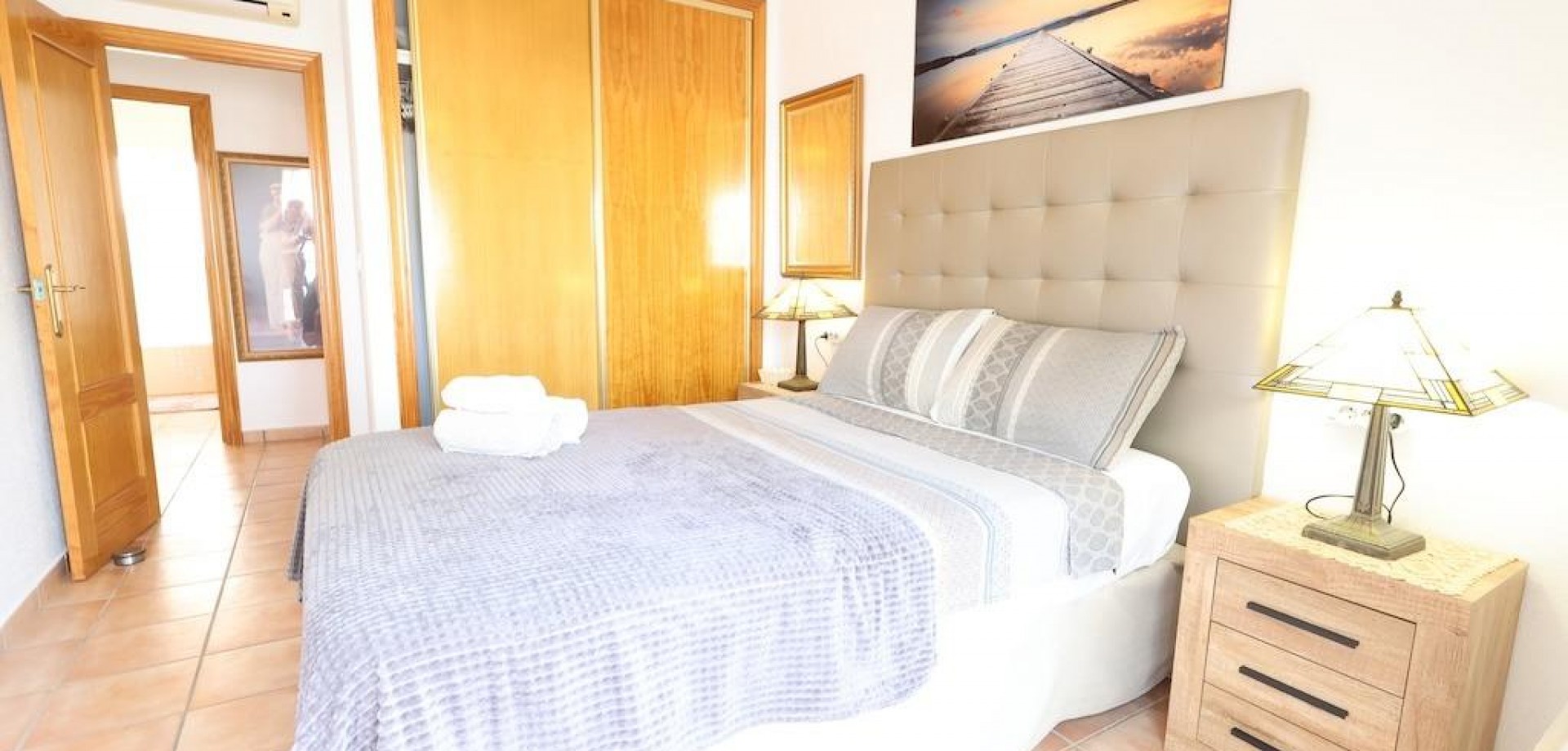 Semi-detached house in the exclusive Aldeas de Aguamarina residential area, located in Cabo Roig. The 72 m2 home features 3 bedrooms, one of them on the ground floor, 2 full bathrooms, a spacious living-dining room, and a spacious separate kitchen with an open-plan utility room.. . It features two terraces, a 34 m2 garden with a barbecue area, ideal for outdoor enjoyment, and a large sun terrace with sea views. It is sold semi-furnished and in good condition.. . The residential complex offers a beautiful communal pool and is located just steps from the sea and all amenities. Ideal as a permanent residence or as an investment for holiday rentals.