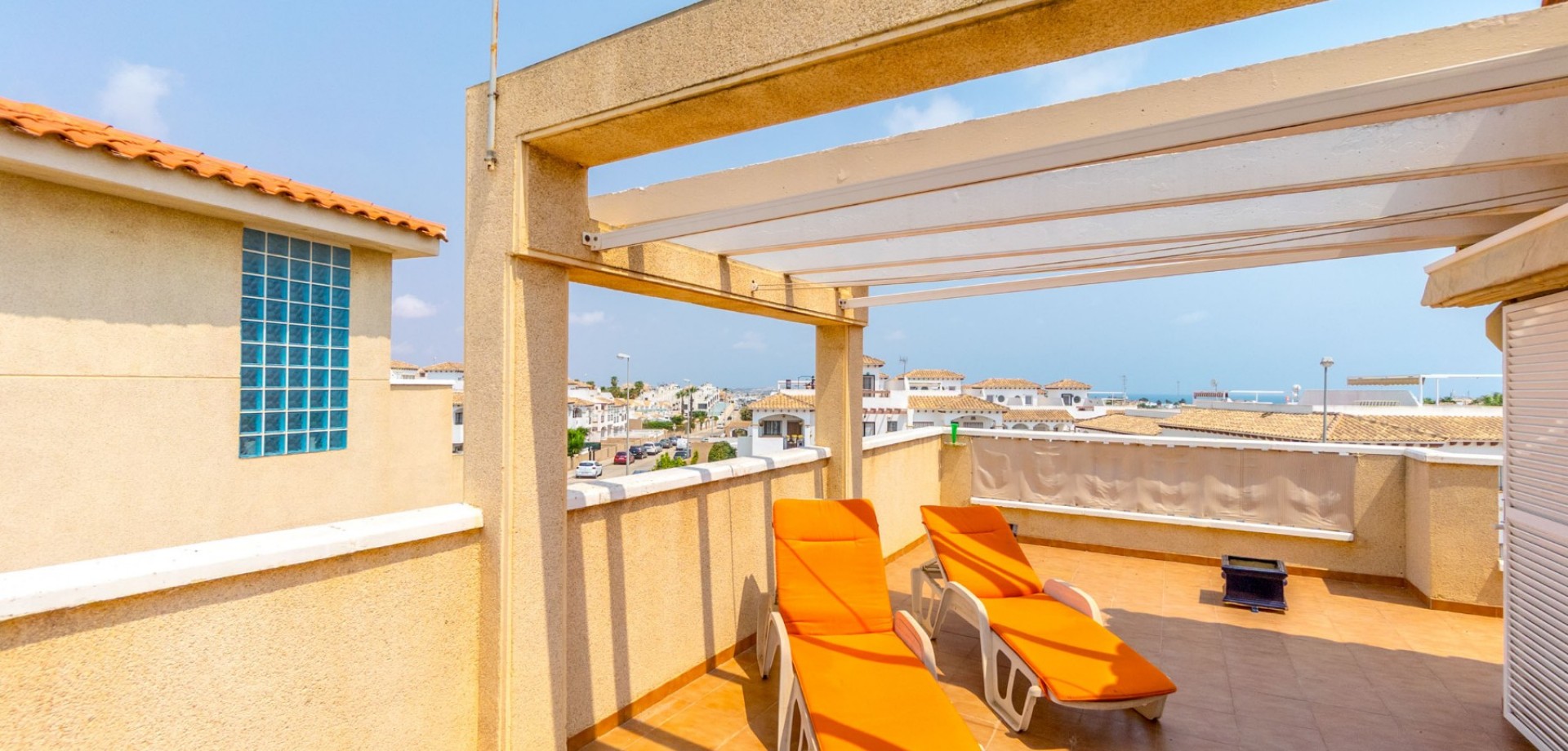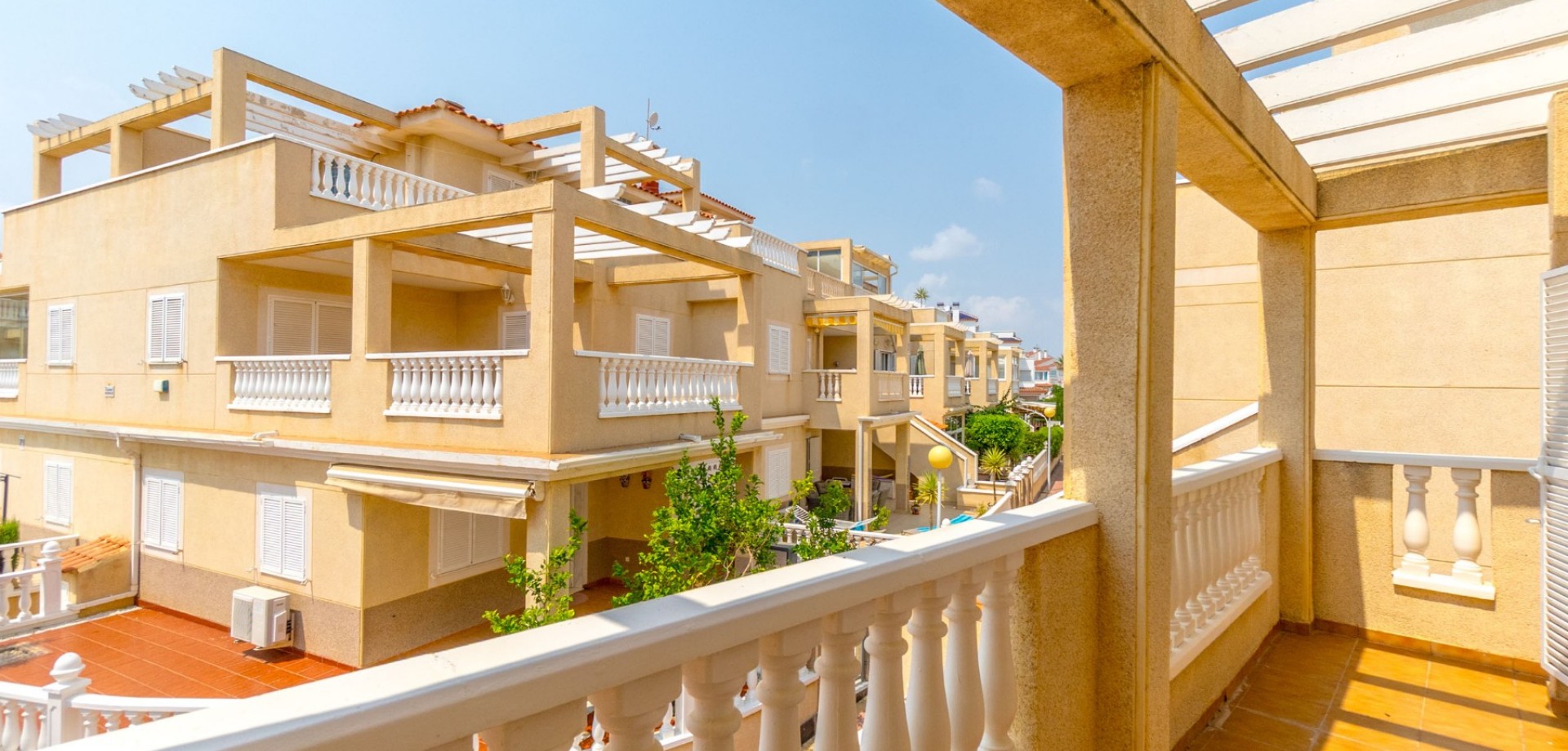Your Dream Home in Zeniamar VI – Playa Flamenca Discover your new home in the exclusive Zeniamar VI complex in Playa Flamenca. This prestigious area is known for its beautiful green spaces, a stunning communal pool, an international atmosphere, and its unbeatable location close to shopping centers, restaurants, schools, beaches, and several golf courses within a 5 km radius. This stunning townhouse with 3 bedrooms and 3 bathrooms offers comfort, space, and the perfect Mediterranean lifestyle. Imagine starting your day in your private garden overlooking the pool, enjoying a morning coffee in the sun, or relaxing on your own solarium with breathtaking sea views. Spread across three well-designed floors, the home features bright living areas, a modern kitchen with laundry room, front and back gardens, and private terraces from the bedrooms. The private garage of 44 m2 with direct access to the property ensures convenience, security, and extra storage space. The house is sold partly furnished, with air conditioning in every room and is move-in ready. ✨ A unique opportunity to live or invest on the Costa Blanca. Don’t miss the chance to visit this fantastic property!
