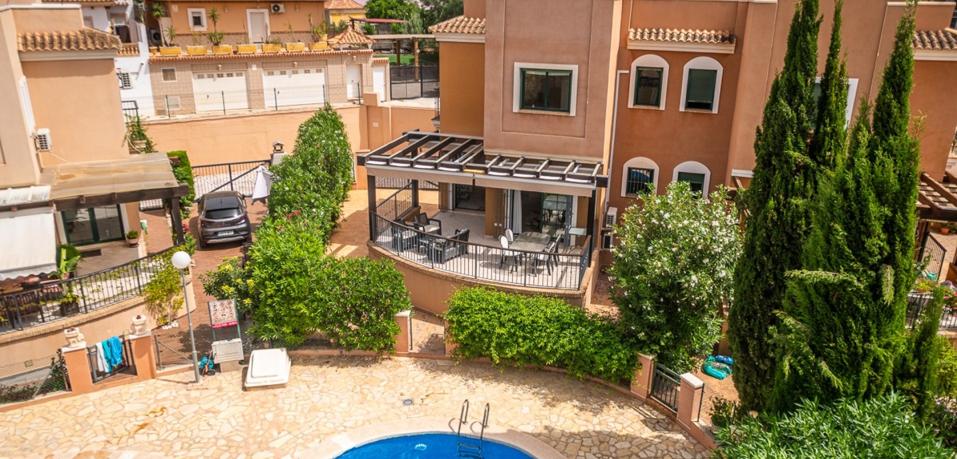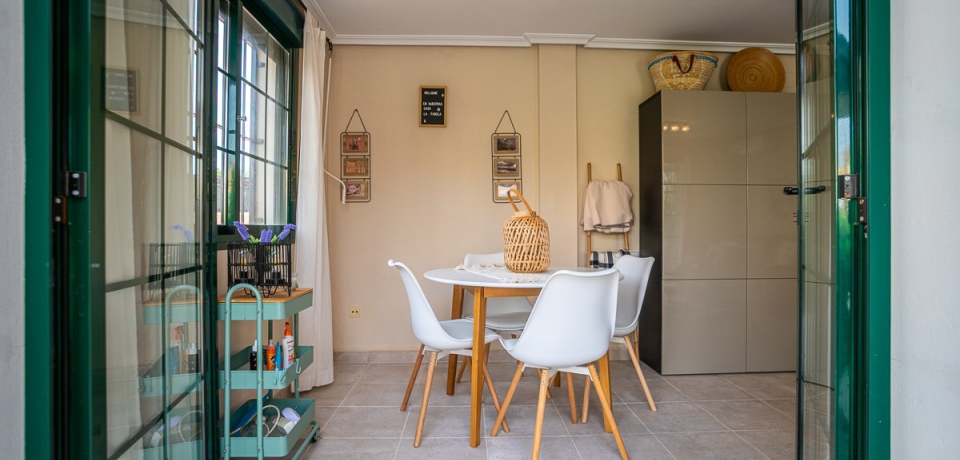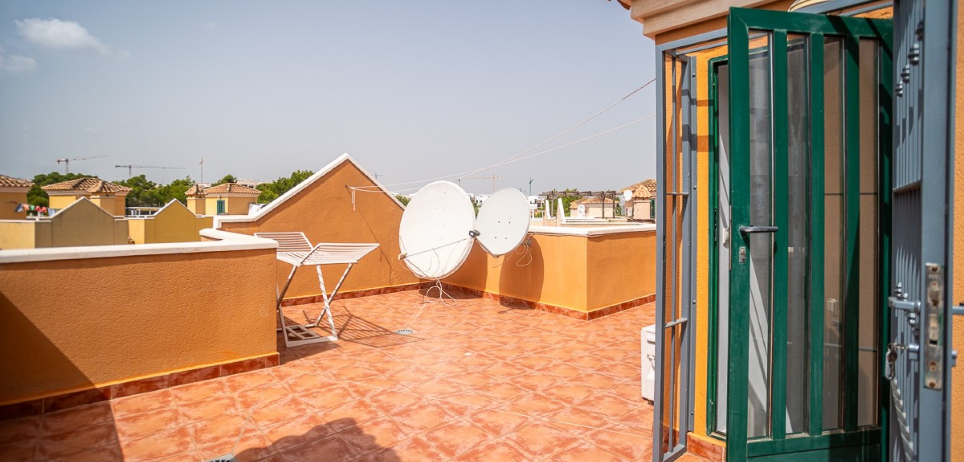 Charming semi-detached house in Los Balcones, Torrevieja Discover this beautifully maintained townhouse in the sought-after area of Los Balcones, where quality construction meets Mediterranean charm. The main house offers two spacious bedrooms on the first floor and a modern bathroom, creating a comfortable living space for both permanent residence and holiday stays. On the ground floor, you will find a generous living area that connects seamlessly with the outside space. The kitchen is fully equipped and combines flawlessly with the living room. The big terrace with pool views is equipped with sun screens, making it the ideal spot to relax or entertain throughout the day. If you are looking for the complete holiday vibe in your own property when you come to Spain,... Then keep reading! The basement adds extra flexibility, featuring two beds and a bathroom en suite, perfect for hosting guests in comfort and privacy. As a final touch, we have a Solarium that offers an open view of the surroundings, such as the famous salt lakes of Torrevieja. Do you have hobbies or a passionate handyman? This house comes with a big storage room right next to your parking Space on your own plot! This home belongs to a small, well-kept community with a Mediterranean atmosphere that you can instantly feel in its surroundings. A large pool area, landscaped spaces with green plantation and the proximity to all amenities make daily life both practical and enjoyable. Located just steps away from Mercadona and close to beaches, restaurants, and services, Los Balcones is one of the most desirable residential areas in Torrevieja. A property that combines location, space, and quality, ready to move in and enjoy. Could this be the home you’ve been searching for? Contact us today and come see it for yourself. Community costs: €500/semesterIBI: 368,58€