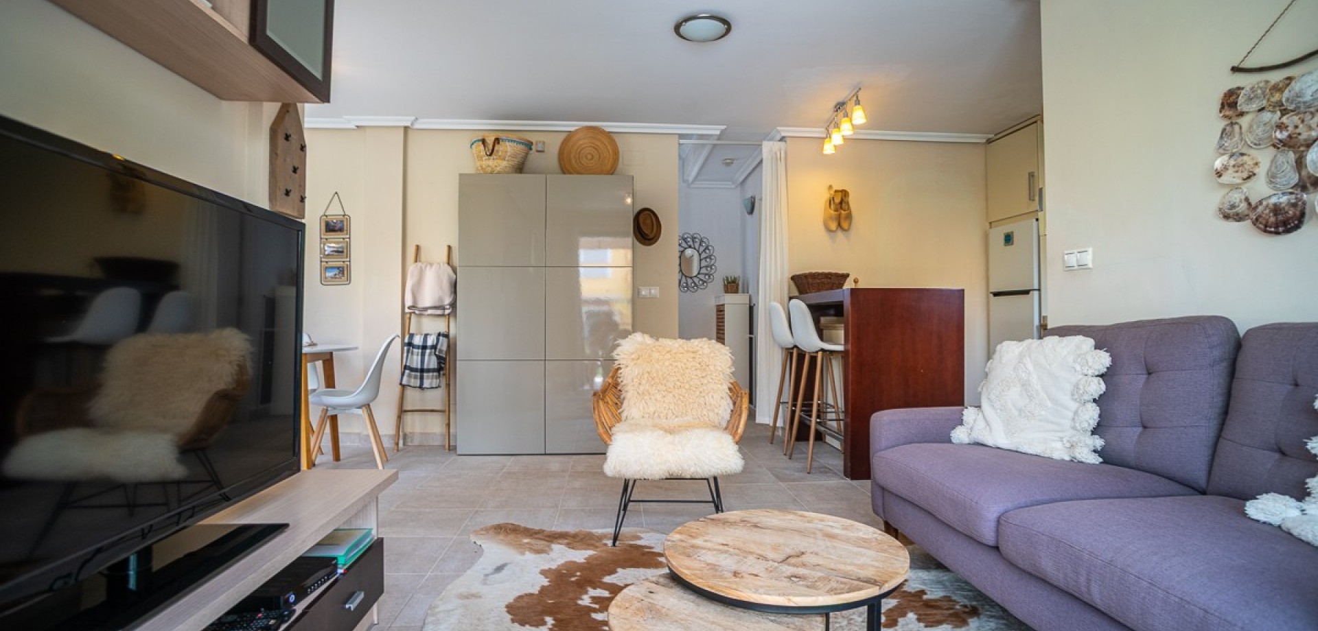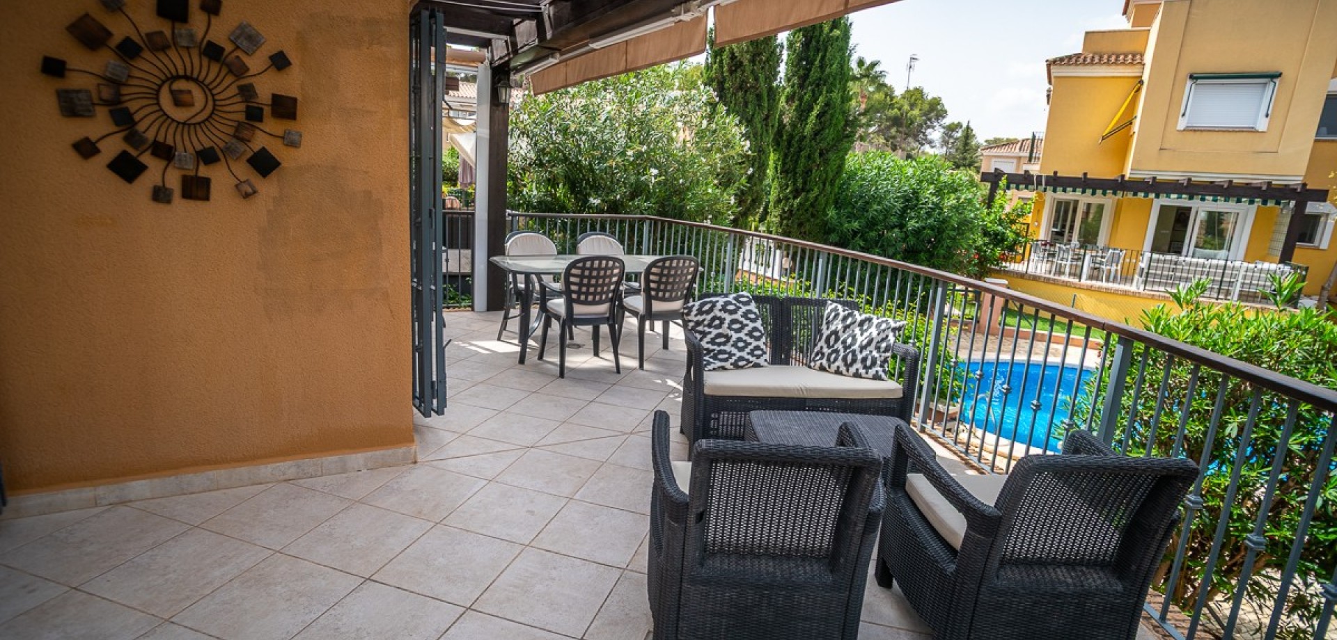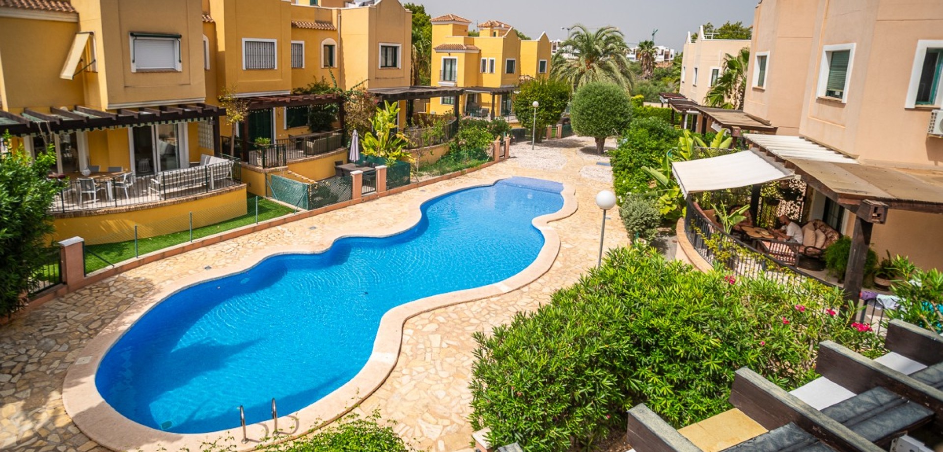 Charming semi-detached house in Los Balcones, Torrevieja Discover this beautifully maintained townhouse in the sought-after area of Los Balcones, where quality construction meets Mediterranean charm. The main house offers two spacious bedrooms on the first floor and a modern bathroom, creating a comfortable living space for both permanent residence and holiday stays. On the ground floor, you will find a generous living area that connects seamlessly with the outside space. The kitchen is fully equipped and combines flawlessly with the living room. The big terrace with pool views is equipped with sun screens, making it the ideal spot to relax or entertain throughout the day. If you are looking for the complete holiday vibe in your own property when you come to Spain,... Then keep reading! The basement adds extra flexibility, featuring two beds and a bathroom en suite, perfect for hosting guests in comfort and privacy. As a final touch, we have a Solarium that offers an open view of the surroundings, such as the famous salt lakes of Torrevieja. Do you have hobbies or a passionate handyman? This house comes with a big storage room right next to your parking Space on your own plot! This home belongs to a small, well-kept community with a Mediterranean atmosphere that you can instantly feel in its surroundings. A large pool area, landscaped spaces with green plantation and the proximity to all amenities make daily life both practical and enjoyable. Located just steps away from Mercadona and close to beaches, restaurants, and services, Los Balcones is one of the most desirable residential areas in Torrevieja. A property that combines location, space, and quality, ready to move in and enjoy. Could this be the home you’ve been searching for? Contact us today and come see it for yourself. Community costs: €500/semesterIBI: 368,58€