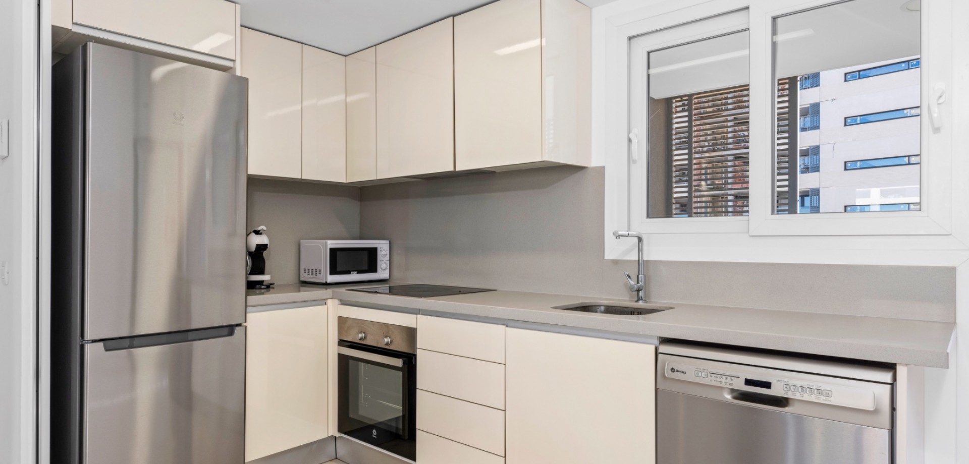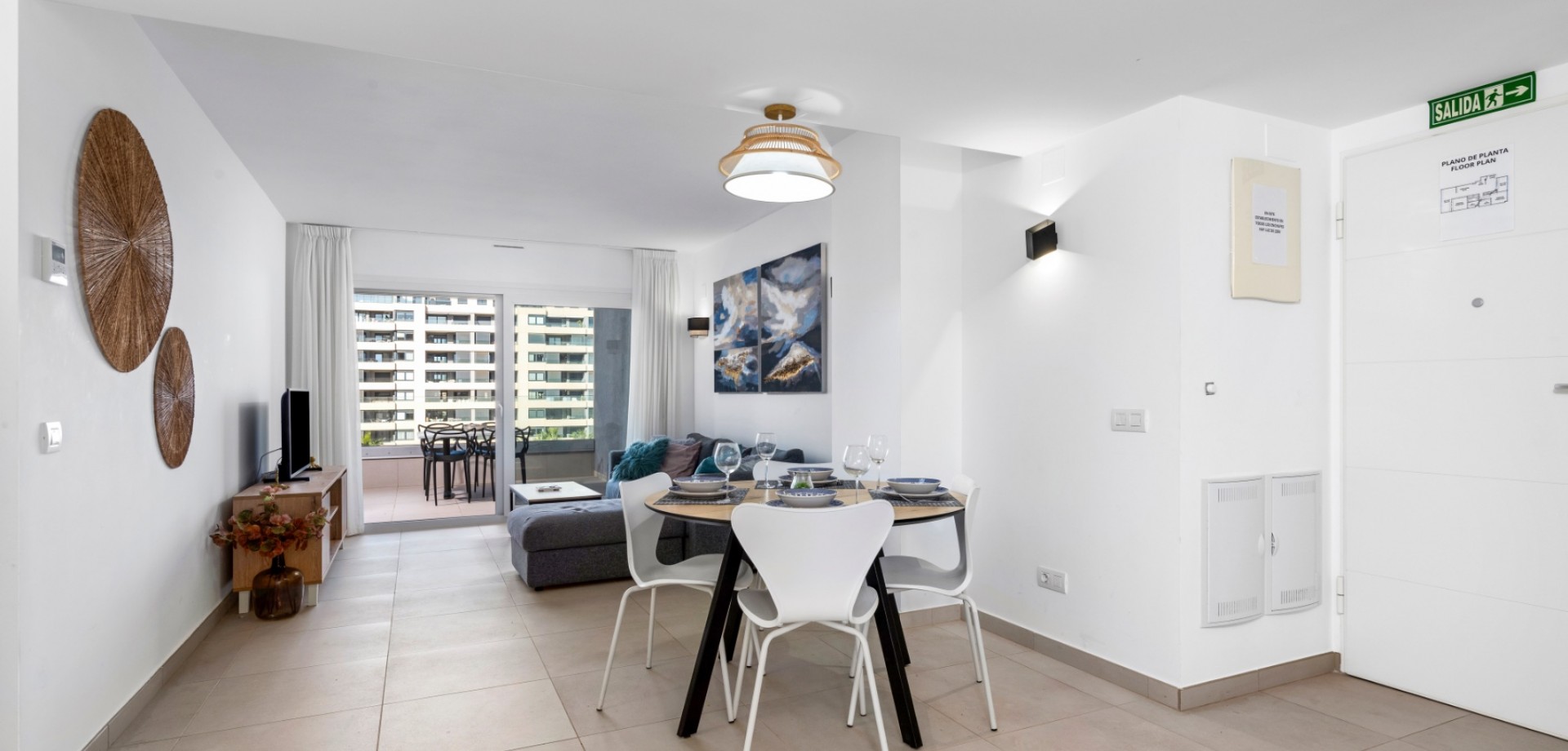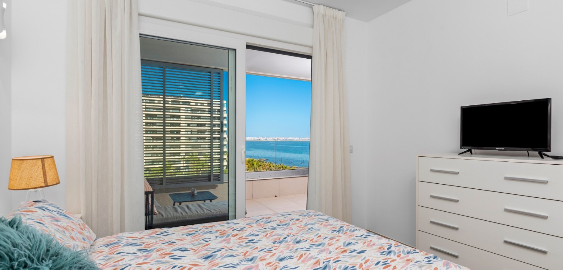 Welcome to this spacious and well-designed two-bedroom, two-bathroom apartment, located in the sought-after Residential Panorama Park, built in 2020. Offering a perfect blend of comfort, style, and convenience, this home is ideal for those looking for a modern coastal retreat. As you step inside, you're greeted by an open-concept living and dining area, ideal for both relaxing and entertaining. Large sliding doors lead to an expansive north-facing balcony, bringing in ample natural light and offering breathtaking sea views. The kitchen is efficiently designed with modern appliances, ample counter space, and convenient access to the dining area, making meal prep and hosting effortless. Additionally, a second south-facing balcony is accessible from the kitchen, ensuring a bright and airy atmosphere throughout the apartment. The primary bedroom serves as a private retreat, featuring an ensuite bathroom and direct access to the large balcony, perfect for enjoying morning coffee or evening sunsets. A second well-sized bedroom is located on the opposite end of the unit, providing privacy and flexibility for guests, family members, or a home office. Adjacent to it, another full bathroom ensures convenience and comfort. This property includes underground parking and a private storage room, adding extra practicality to your living experience. The Panorama Park complex boasts three swimming pools, one of which is heated, offering year-round enjoyment.