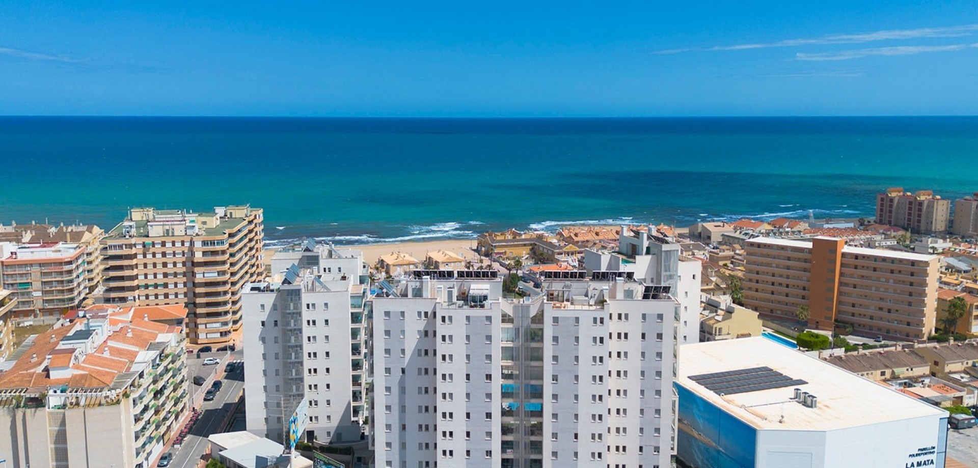 Discover this perfectly located ground floor apartment in La Mata, just 50 metres from the beach. This key-ready property combines comfort, space and an excellent location on the Costa Blanca South, ideal for enjoying Mediterranean living on one level. Thanks to the spacious private garden with lounge area and fully equipped outdoor kitchen, you can enjoy outdoor living all year round. Whether it is sunny breakfasts, cosy barbecues or quiet evenings outdoors, this is true outdoor living. Property layout The apartment offers a bright and cosy living area with an open, fully equipped kitchen, two spacious and light-filled bedrooms and a modern bathroom with stylish walk-in shower. Everything is practically laid out and ready to move in. Additional features The property is sold fully furnished and ready for immediate use. An underground parking space is included in the price, a real advantage so close to the beach. The residence also offers a communal swimming pool and beautifully landscaped gardens. Prime location Located within walking distance of La Mata beach and close to a wide selection of restaurants, bars, shops and supermarkets. The airports of Alicante and Murcia are easily accessible. Ideal for This property is perfect as a holiday home, a comfortable winter retreat or as an investment with strong rental potential thanks to its unique location. Contact us today for more information or to arrange a viewing. Properties in this location are rare and sell quickly.