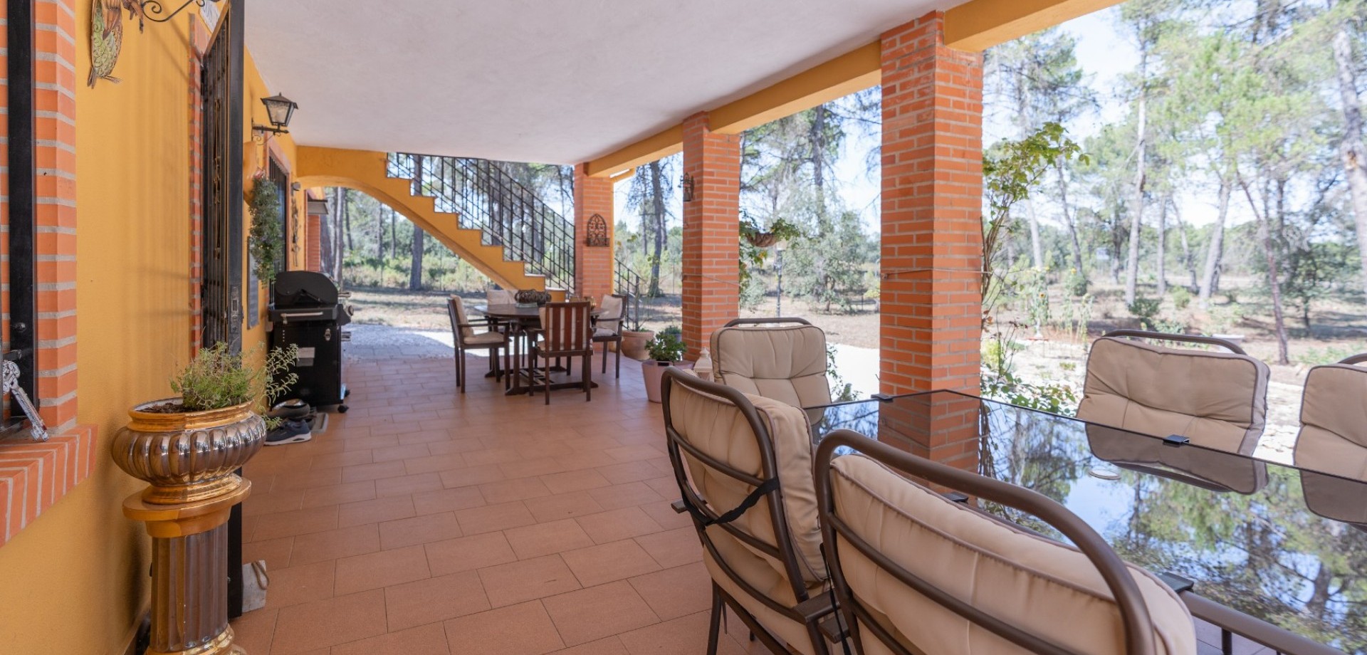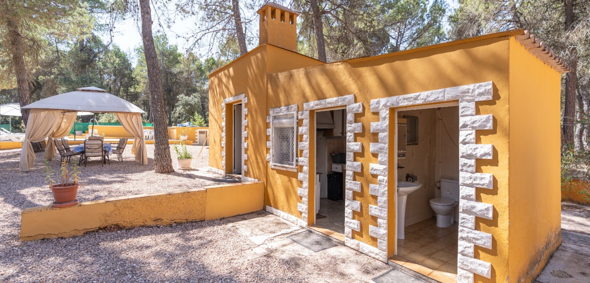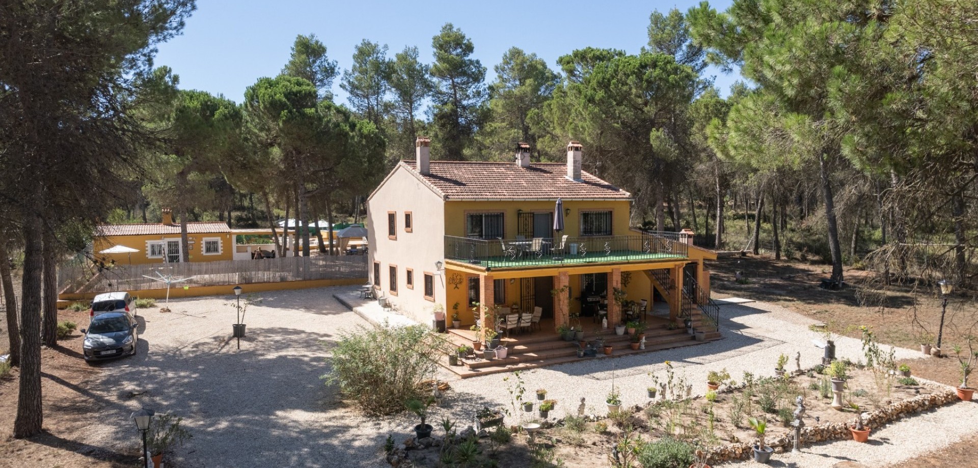 This unique estate in Bocairent offers everything you need for spacious, versatile and comfortable living in one of Valencia's most beautiful natural areas. After a trip through the idyllic valley, you drive onto the estate via the beautiful gravel path and find yourself in a natural paradise. With two well-maintained, completely independent houses, a plot of no less than 9,142 m² and a built area of 450 m², this is ideal for large families, multiple occupants (plenty of privacy) or as a tourist investment. First house: 8 bedrooms spread over 2 floors • 2 floors connected by an internal staircase and separate external access (ideal for separate living). • Each floor has: ✔ 4 bedrooms ✔ 1 full bathroom with toilet ✔ Equipped kitchen ✔ Living room with lovely fireplace ✔ Covered terraces with great views! Extra: spacious garage for 1 car or extra storage. Second residence (casita) – completely independent and free • 3 bedrooms • Living room • 1 bathroom • Modern kitchen The outdoor space and extra facilities are also impressive: • Fantastic private swimming pool (7x4 m) with well-maintained pump system • Outbuildings with: storage, outdoor kitchen, separate toilet and storage for wood-burning fireplaces • Two separate entrances to the plot. This makes it ideal for rental or occupancy by several families with plenty of privacy. • Ample parking spaces • Beautiful expansive front and back garden with lots of trees and lovely vegetation. The entire plot is neatly fenced. Located in beautiful Bocairent, an area full of nature, tranquillity and authentic Spanish charm. Perfect for living and enjoying the outdoors. In the middle of the Sierra de Mariola Natural Park with unlimited opportunities for hiking with panoramic views, beautiful mountain bike trails and much more. Close to the larger towns of Ontinyent and Alcoy. The beautiful beaches of Oliva, Gandia and Denia are less than an hour's drive away. Contact us today for more information and to schedule a viewing.