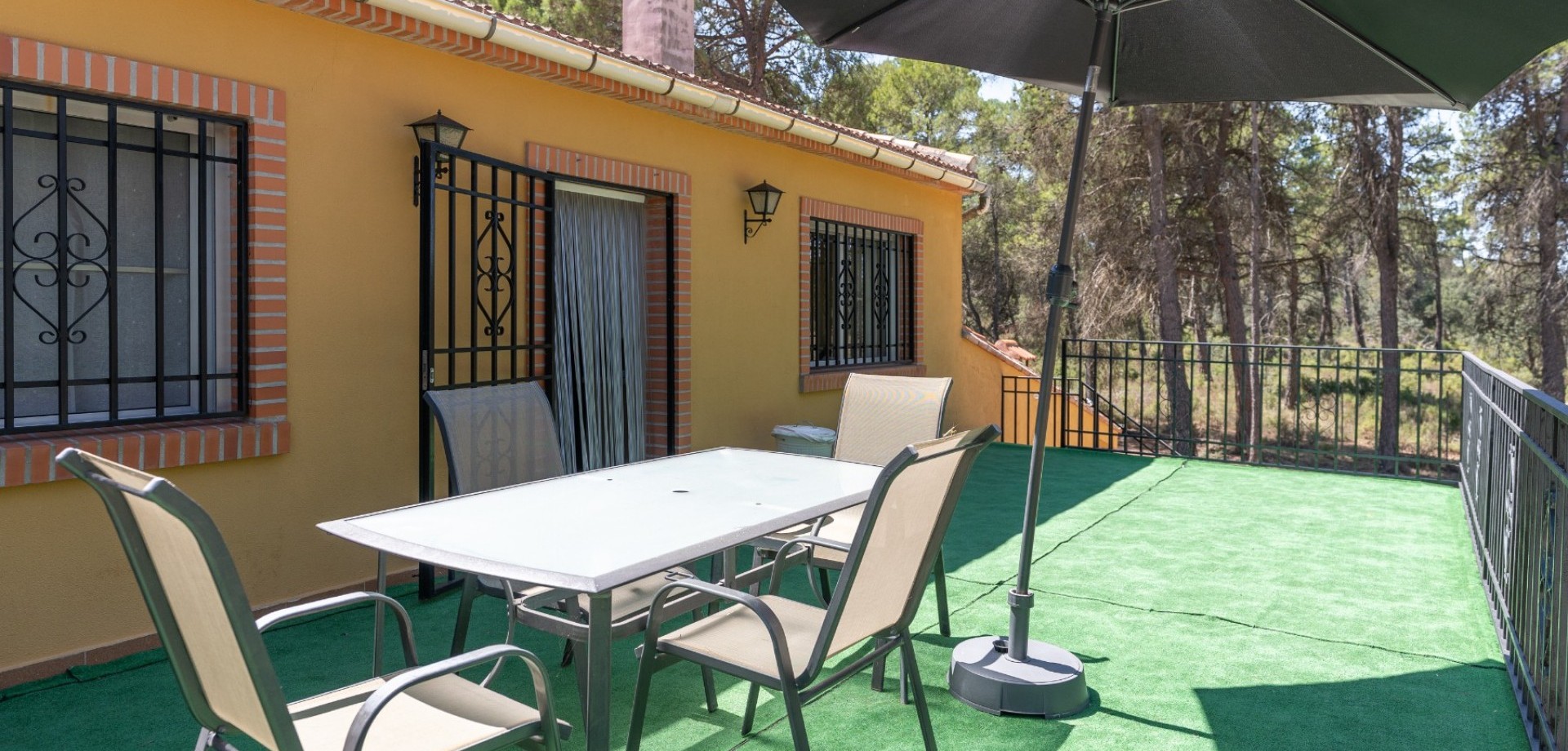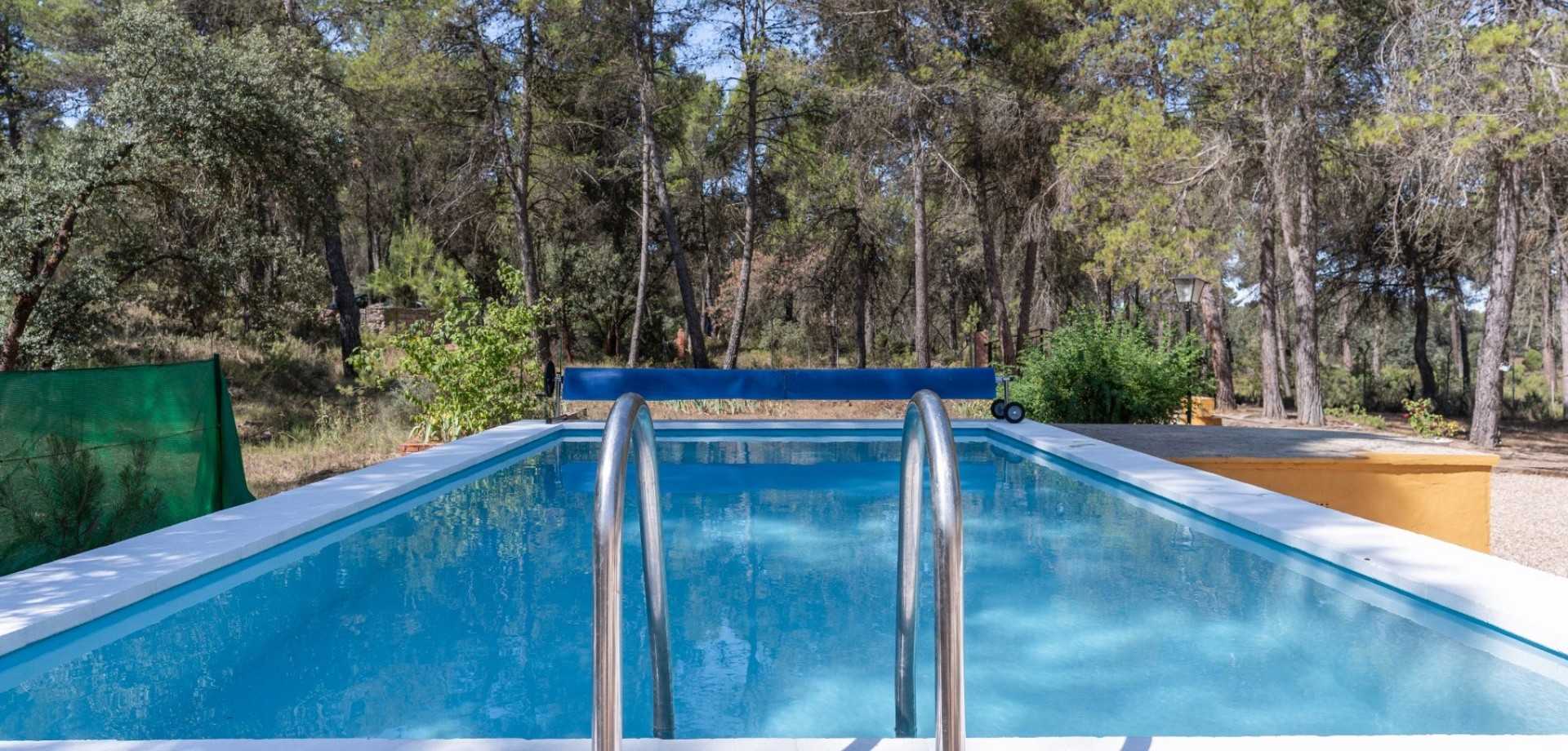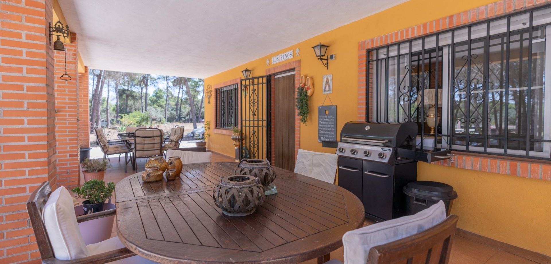 This unique estate in Bocairent offers everything you need for spacious, versatile and comfortable living in one of Valencia's most beautiful natural areas. After a trip through the idyllic valley, you drive onto the estate via the beautiful gravel path and find yourself in a natural paradise. With two well-maintained, completely independent houses, a plot of no less than 9,142 m² and a built area of 450 m², this is ideal for large families, multiple occupants (plenty of privacy) or as a tourist investment. First house: 8 bedrooms spread over 2 floors • 2 floors connected by an internal staircase and separate external access (ideal for separate living). • Each floor has: ✔ 4 bedrooms ✔ 1 full bathroom with toilet ✔ Equipped kitchen ✔ Living room with lovely fireplace ✔ Covered terraces with great views! Extra: spacious garage for 1 car or extra storage. Second residence (casita) – completely independent and free • 3 bedrooms • Living room • 1 bathroom • Modern kitchen The outdoor space and extra facilities are also impressive: • Fantastic private swimming pool (7x4 m) with well-maintained pump system • Outbuildings with: storage, outdoor kitchen, separate toilet and storage for wood-burning fireplaces • Two separate entrances to the plot. This makes it ideal for rental or occupancy by several families with plenty of privacy. • Ample parking spaces • Beautiful expansive front and back garden with lots of trees and lovely vegetation. The entire plot is neatly fenced. Located in beautiful Bocairent, an area full of nature, tranquillity and authentic Spanish charm. Perfect for living and enjoying the outdoors. In the middle of the Sierra de Mariola Natural Park with unlimited opportunities for hiking with panoramic views, beautiful mountain bike trails and much more. Close to the larger towns of Ontinyent and Alcoy. The beautiful beaches of Oliva, Gandia and Denia are less than an hour's drive away. Contact us today for more information and to schedule a viewing.