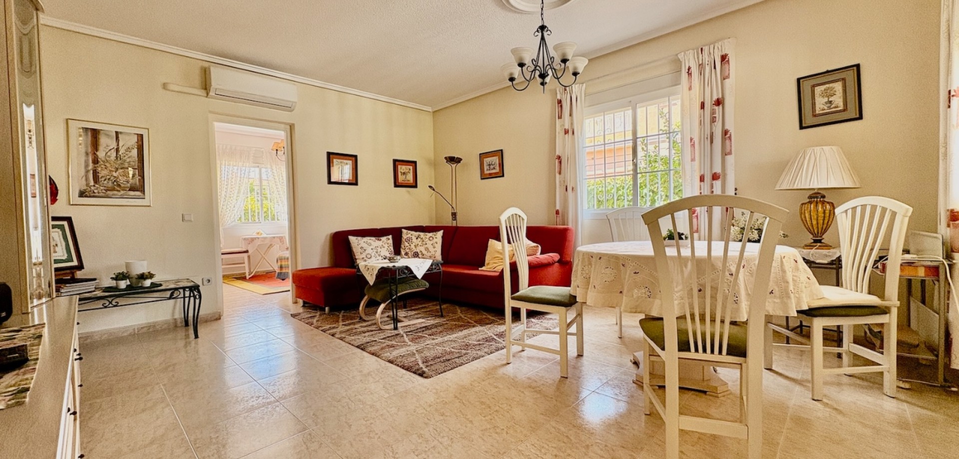 We present a unique opportunity to acquire a magnificent "Lola" model duplex, located in the exclusive Residencial Fortuna, within the prestigious Doña Pepa urbanization in Ciudad Quesada (Rojales). This charming corner duplex combines comfort, style, and a prime location in a peaceful, family-friendly environment. The property boasts a built area of 101 m² and a generous 90 m² private garden, perfect for enjoying outdoor activities, hosting gatherings, or relaxing under the Mediterranean sun. Its functional design includes three bedrooms and two bathrooms, ideal for families or those seeking extra space. The independent kitchen, fully equipped, opens to a cozy rear porch, perfect for soaking up the afternoon sun. The bright and spacious living-dining room connects to a front porch, where you can enjoy the morning sunshine. Additionally, the property features a practical covered carport, with ample space for parking a car and storing bicycles, ensuring convenience and security. The home is delivered fully furnished and equipped with appliances and air conditioning, ready to move in from day one. One of the standout features of Residencial Fortuna is its stunning communal swimming pool, considered one of the largest and most beautiful in Doña Pepa, perfect for refreshing swims and enjoying leisure time in a well-maintained, exclusive setting. Advantages of Living in Doña Pepa Urbanization Doña Pepa is one of the most sought-after areas in Ciudad Quesada, renowned for its tranquil, elegant, and well-planned environment. This urbanization offers the perfect blend of serenity and proximity to essential services: supermarkets, restaurants, pharmacies, medical centers, and leisure areas are just a short walk away. Furthermore, its excellent location allows you to reach the beaches of Guardamar, La Marquesa golf course, and the cities of Alicante and Torrevieja in just a few minutes by car. Doña Pepa is ideal for those seeking a permanent residence or a holiday home in an area with high demand and great potential for appreciation. This property is an exceptional opportunity to enjoy Mediterranean quality of life in a home designed for comfort and enjoyment. Contact us for more information or to arrange a no-obligation viewing!
