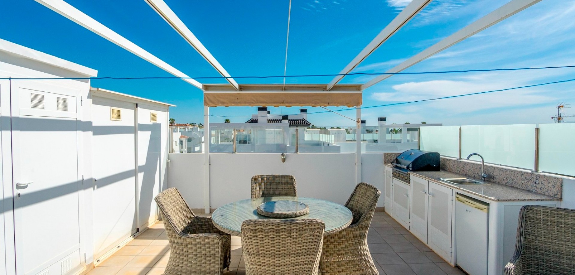Discover the allure of penthouse living with this delightful two-bedroom, two-bathroom residence boasting 85 square meters of comfortable living space.Nestled near the heart of Ciudad Quesada, this property offers a cozy retreat with all the essentials for a relaxed lifestyle.Upon entering, you'll be greeted by an inviting open-plan layout seamlessly connecting the kitchen, living, and dining areas.The kitchen features modern appliances and overlooks the welcoming living space, ideal for casual gatherings or quiet evenings at home.Step outside onto the spacious terrace and soak in the picturesque views of the pool and surrounding area, including stunning sunsets that paint the sky in hues of orange and pink.This outdoor space is perfect for enjoying leisurely meals or simply unwinding with a good book in the fresh air.Ascend to the expansive private roof terrace, where you'll find multiple seating areas offering a serene setting for outdoor relaxation.A mounted pergola provides shade on sunny days, while an outdoor kitchen with a barbecue allows for casual outdoor dining with friends and family.Residents of this charming community have access to beautiful communal areas featuring palm trees, a refreshing swimming pool, and lush greenery, creating a peaceful environment for leisurely strolls or afternoon swims.There is private parking outside the apartment and the beautiful beaches of Guardamar del Segura are a quick 10 minute drive away.This penthouse is sold fully furnished, ready to move right into, whether you're looking for a permanent residence or a holiday getaway.Located just a short stroll from restaurants, amenities, and shops, this property offers convenience without sacrificing tranquility.Don't miss out on this opportunity to own a piece of paradise in Ciudad Quesada.Contact us today to schedule a viewing and experience the charm of penthouse living on the Costa Blanca