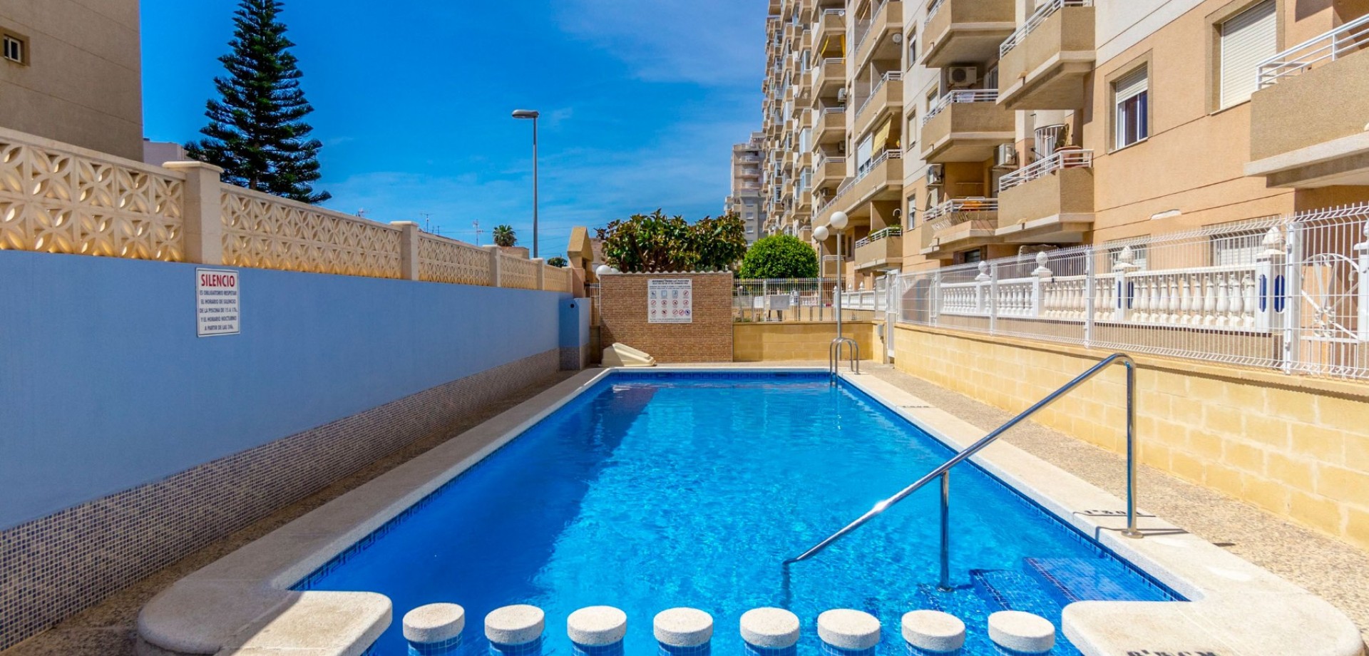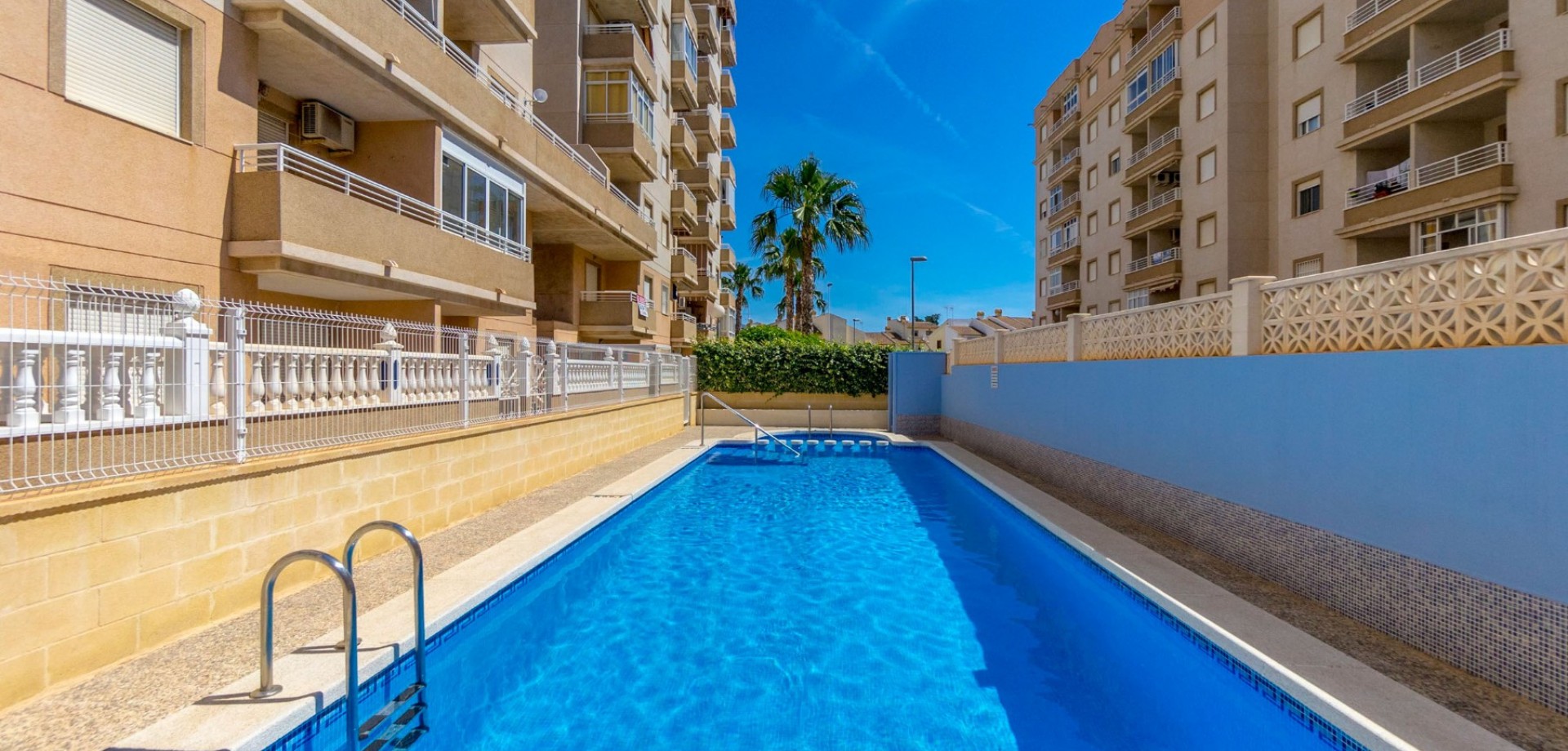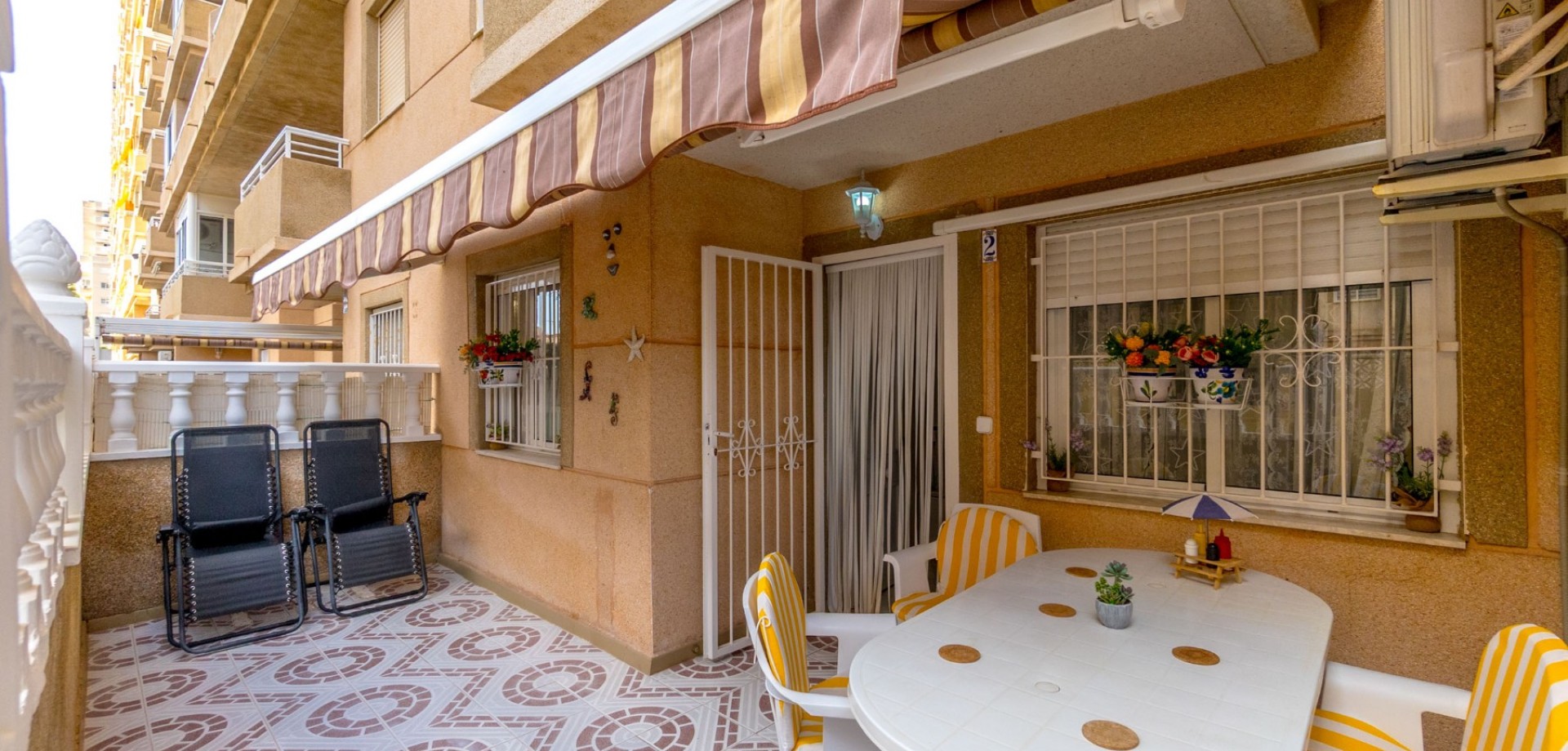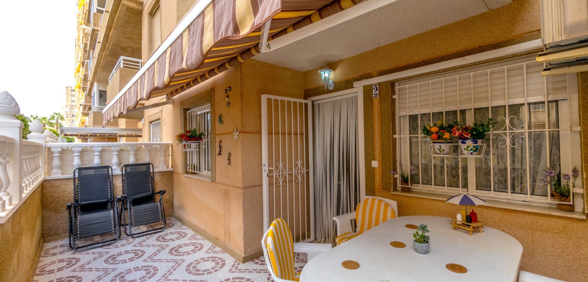 Renovated 2-Bedroom Ground Floor Apartment in Torrevieja Located in the peaceful and established area of Nueva Torrevieja, this ground floor 2-bedroom, 1-bathroom apartment is ideal for year-round living, a holiday home, or a solid rental investment. The apartment is set within a well-maintained residential complex that offers access to a communal swimming pool, and is situated on the ground floor for easy access. It features a modern bathroom with a walk-in shower, an updated kitchen, and new floor tiling, offering a clean and functional living space. One of the highlights of this property is the two private terraces — one at the front and one at the rear — allowing you to enjoy both morning and afternoon sun, relax outdoors, or use the space for extra storage or dining. The total built area is 62 m², providing a comfortable and practical layout. The apartment is well-connected by road and local transport. Supermarkets, cafés, and other essential services are just a short walk away. Property Features: 62 m² built 2 bedrooms air conditioning 1 bathroom with walk-in shower Renovated kitchen New floor tiles Ground floor – step-free access Two private terraces (front and rear) Communal swimming pool Quiet residential location in Torrevieja Easy access to shops, services, and public transport A great opportunity to own a move-in-ready property in a calm area of Torrevieja, offering both indoor comfort and outdoor space.