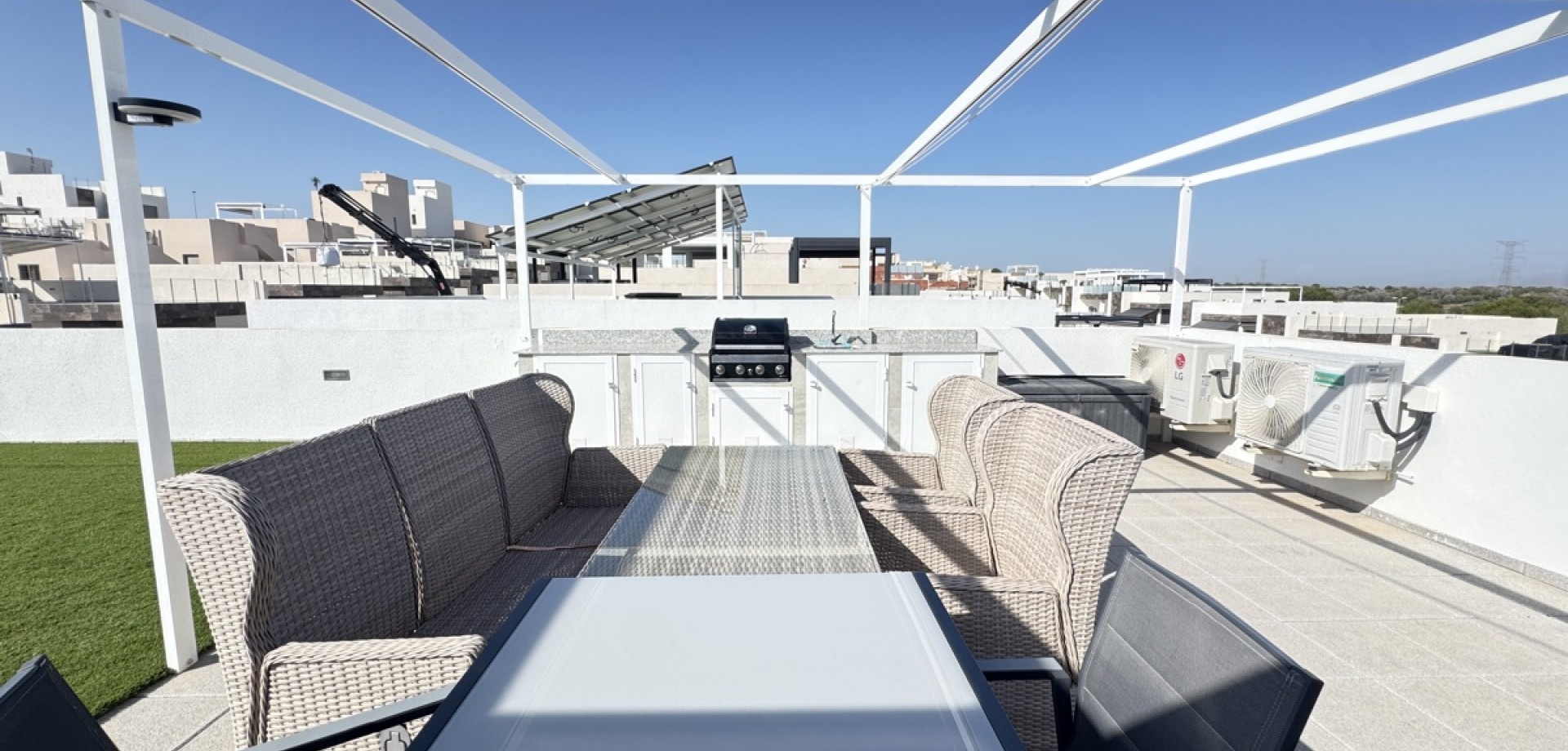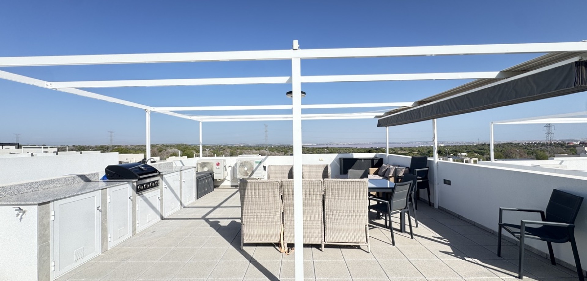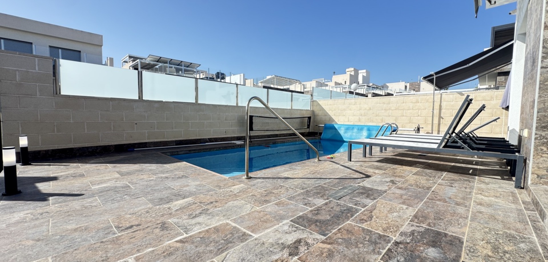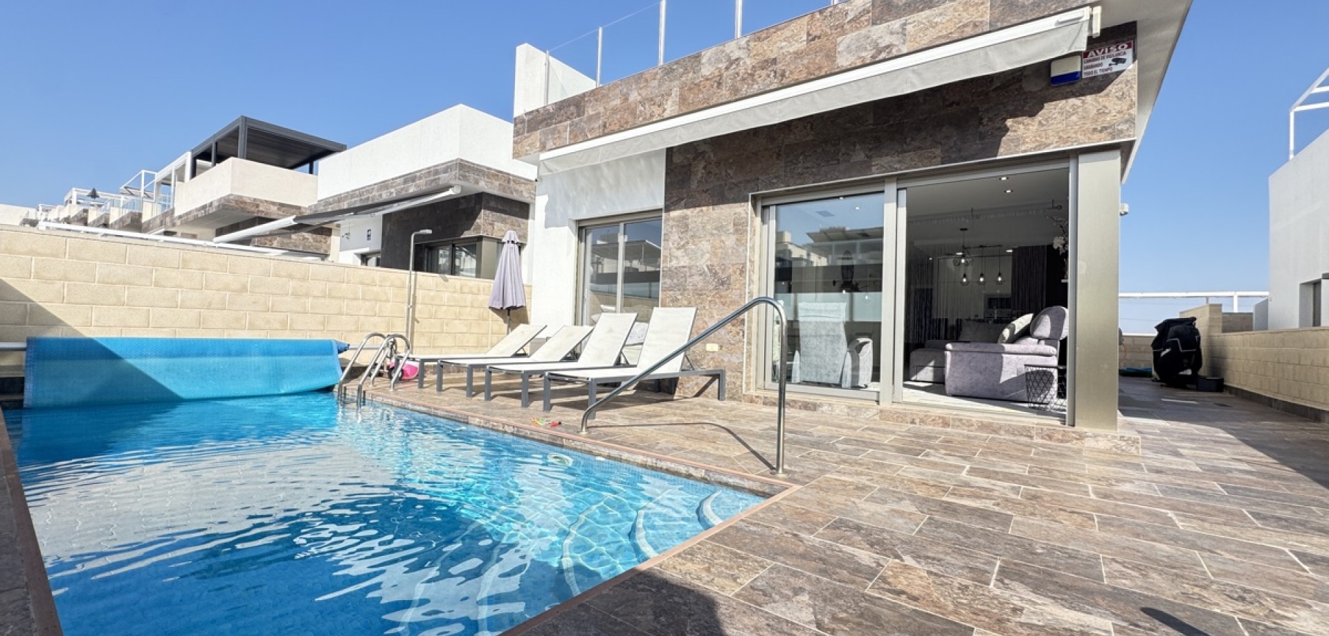 Experience the ultimate in luxury living in this stunning 5-bedroom, 4-bathroom modern villa, perfectly situated in the exclusive Pink Paradise community in Pau26, Villamartin. KEY FEATURES: - Spacious Underbuild: A large underbuild area featuring 2 bedrooms, lounge, 2 bathrooms, and utility room, perfect for guests or extended family. - Private Pool: Relax and unwind in the private pool, surrounded by beautiful gardens and stunning views. - Large Roof Terrace: Take in the breathtaking views of the Pink Lakes of Torrevieja from the expansive roof terrace. - Outdoor Kitchen with BBQ area. - Abundant Natural Light: The villa is filled with natural light, creating a bright and airy atmosphere. - Open-Plan Living: A spacious open-plan living area flows seamlessly into the modern kitchen, perfect for entertaining. LOCATION: - Walking Distance to Amenities: Local shops, restaurants, and leisure facilities are just a short stroll away. - Short Drive to Villamartin Plaza: The vibrant town centre and golf course are easily accessible by car. - Stunning Views: Enjoy panoramic views of the Pink Lakes of Torrevieja, a unique and breathtaking feature. BUILDER'S CREDENTIALS: - Innova Villas Construction: This villa is part of a reputable builder's portfolio, ensuring high-quality construction and attention to detail. IDEAL FOR: - Large Families: The spacious underbuild and multiple bedrooms make this villa perfect for large families. - Entertainers: The open-plan living area and private pool make this villa ideal for entertaining. - Those Seeking Luxury: The high-quality finishes and stunning views make this villa an ideal choice for those seeking a luxurious lifestyle. Don't miss the opportunity to own this stunning 5-bedroom villa.
