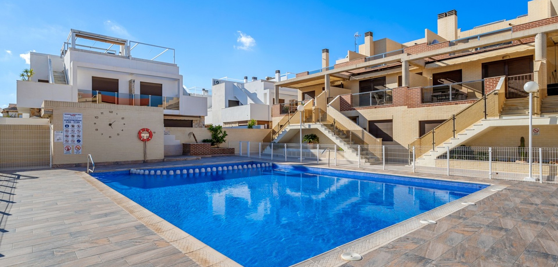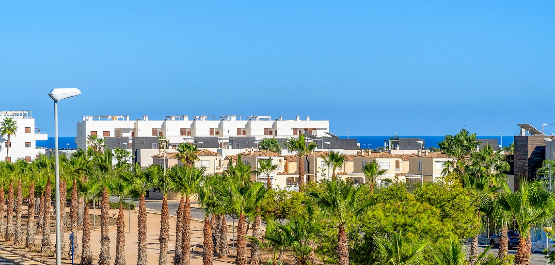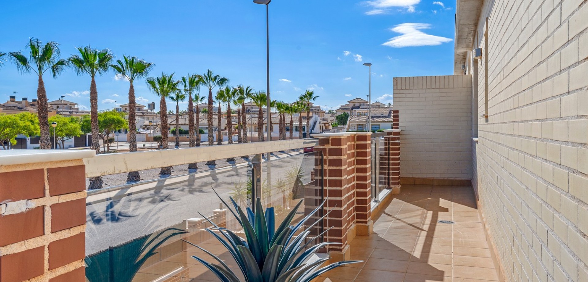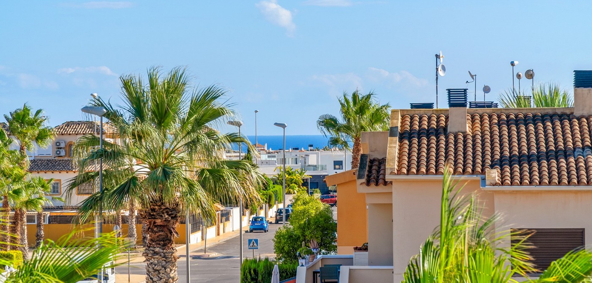 3-Bedroom Duplex Apartment with 2 Bathrooms and Private Roof Terrace We are pleased to present a highly attractive duplex apartment with a total of 53 m2 terraces, in a modern residential complex built in 2015. This is considered the best-located unit within the community, offering open views over the park, excellent sun exposure throughout the day, and complete privacy. The apartment is situated on the second floor and features a practical and well-designed layout. On the main level, you will find a bright living room with direct access to a spacious terrace enjoying both morning and afternoon sun, along with a kitchen, bathroom, and two bedrooms. A staircase from the living room leads to the upper level, which comprises a large master bedroom with fitted wardrobes, a full bathroom with washing machine, and direct access to a private roof terrace. The solarium benefits from all-day sun and open park views – the perfect retreat when you want a more private space. The complex itself offers excellent communal facilities including a gym, sauna, jacuzzi, and a large swimming pool with green areas. An underground parking space is also included. The location is very convenient, with daily services within walking distance. Just 550 metres away there is a modern centre with restaurants, a supermarket and a rooftop lounge bar. In addition, the well-known La Zenia Boulevard shopping centre is close by, offering a wide range of shops, dining options and leisure activities. Several golf courses can be reached within a short drive, while the beaches of Campoamor and Cabo Roig are easily accessible by bike in around 15 minutes. In summary: A property with the best internal location in the complex, a private roof terrace, all-day sun and modern on-site facilities. A smart choice both for personal use and rental investment. Highlights – Calle Cabo Prior 4, Orihuela Costa Best internal location in the complex – sunny, private & park views Duplex with 3 bedrooms / 2 bathrooms Main terrace + private roof terrace with all-day sun. 53m2 terraces! Modern complex (2015) with pool, gym, sauna & jacuzzi Underground parking included Walking distance to shops, restaurants & La Zenia Boulevard Short drive to golf & beaches