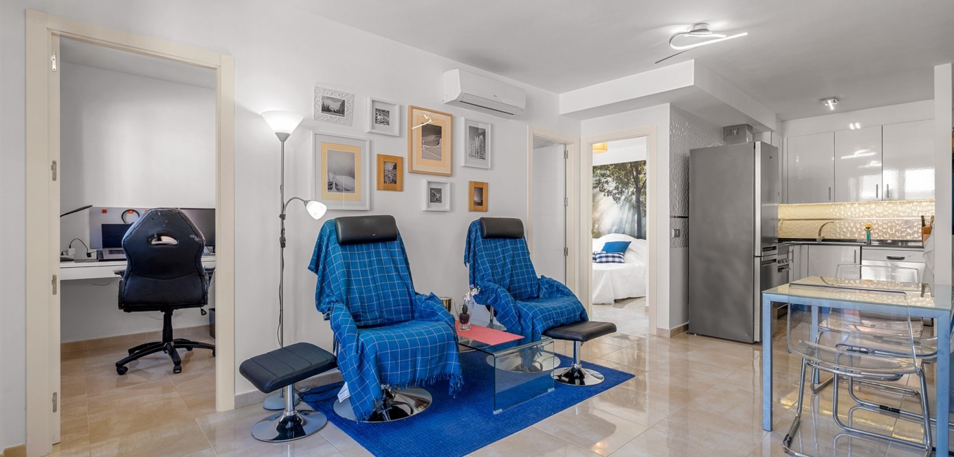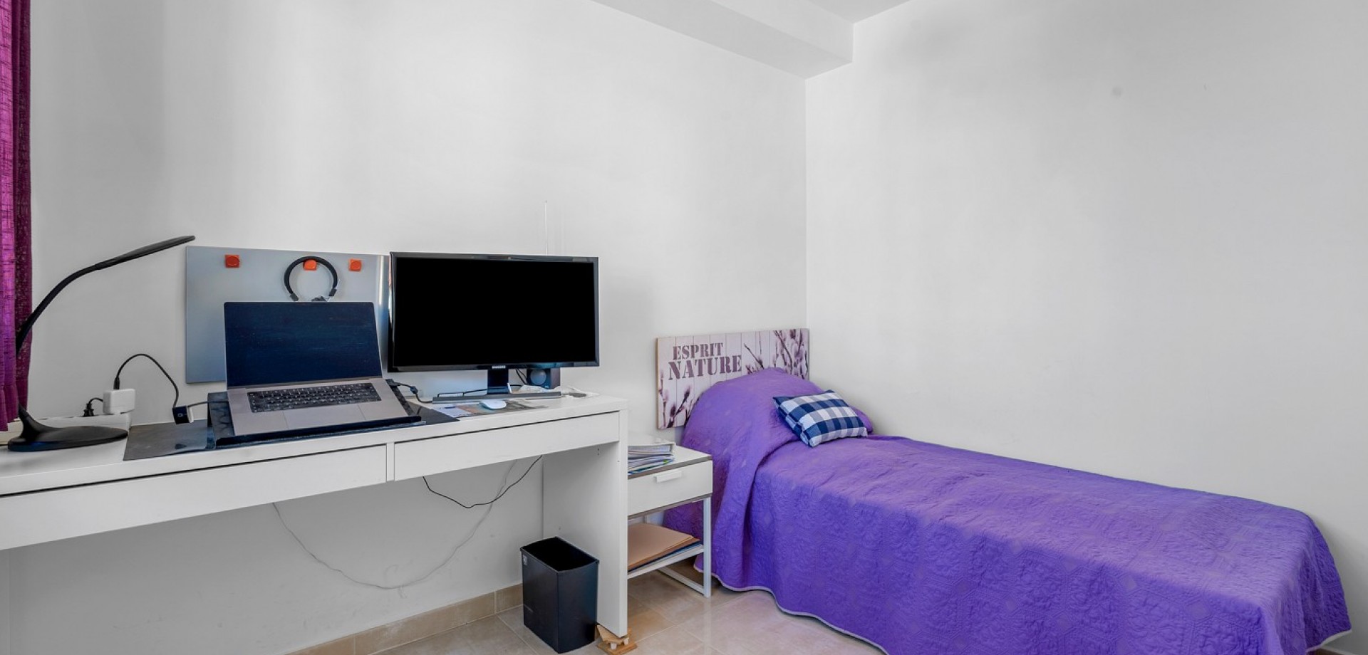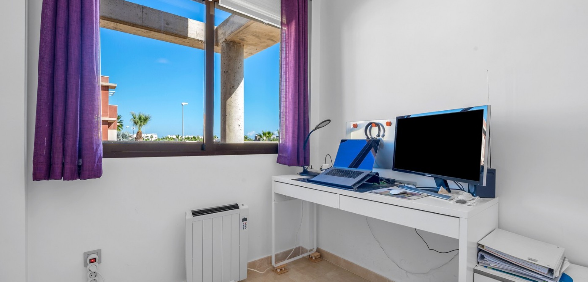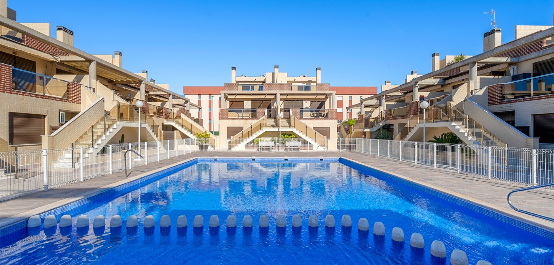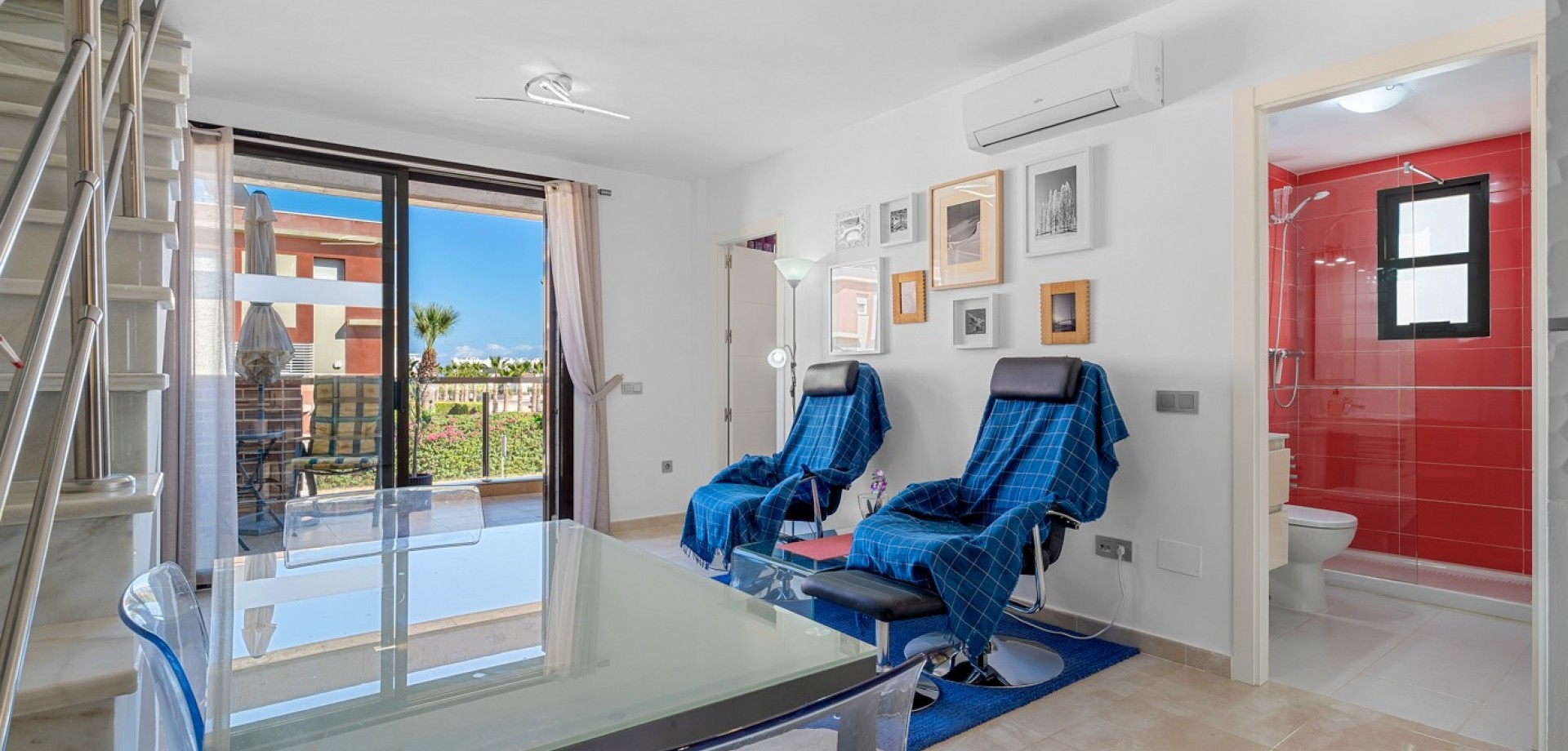 3-Bedroom Duplex Apartment with 2 Bathrooms and Private Roof Terrace We are pleased to present a highly attractive duplex apartment with a total of 53 m2 terraces, in a modern residential complex built in 2015. This is considered the best-located unit within the community, offering open views over the park, excellent sun exposure throughout the day, and complete privacy. The apartment is situated on the second floor and features a practical and well-designed layout. On the main level, you will find a bright living room with direct access to a spacious terrace enjoying both morning and afternoon sun, along with a kitchen, bathroom, and two bedrooms. A staircase from the living room leads to the upper level, which comprises a large master bedroom with fitted wardrobes, a full bathroom with washing machine, and direct access to a private roof terrace. The solarium benefits from all-day sun and open park views – the perfect retreat when you want a more private space. The complex itself offers excellent communal facilities including a gym, sauna, jacuzzi, and a large swimming pool with green areas. An underground parking space is also included. The location is very convenient, with daily services within walking distance. Just 550 metres away there is a modern centre with restaurants, a supermarket and a rooftop lounge bar. In addition, the well-known La Zenia Boulevard shopping centre is close by, offering a wide range of shops, dining options and leisure activities. Several golf courses can be reached within a short drive, while the beaches of Campoamor and Cabo Roig are easily accessible by bike in around 15 minutes. In summary: A property with the best internal location in the complex, a private roof terrace, all-day sun and modern on-site facilities. A smart choice both for personal use and rental investment. Highlights – Calle Cabo Prior 4, Orihuela Costa Best internal location in the complex – sunny, private & park views Duplex with 3 bedrooms / 2 bathrooms Main terrace + private roof terrace with all-day sun. 53m2 terraces! Modern complex (2015) with pool, gym, sauna & jacuzzi Underground parking included Walking distance to shops, restaurants & La Zenia Boulevard Short drive to golf & beaches
