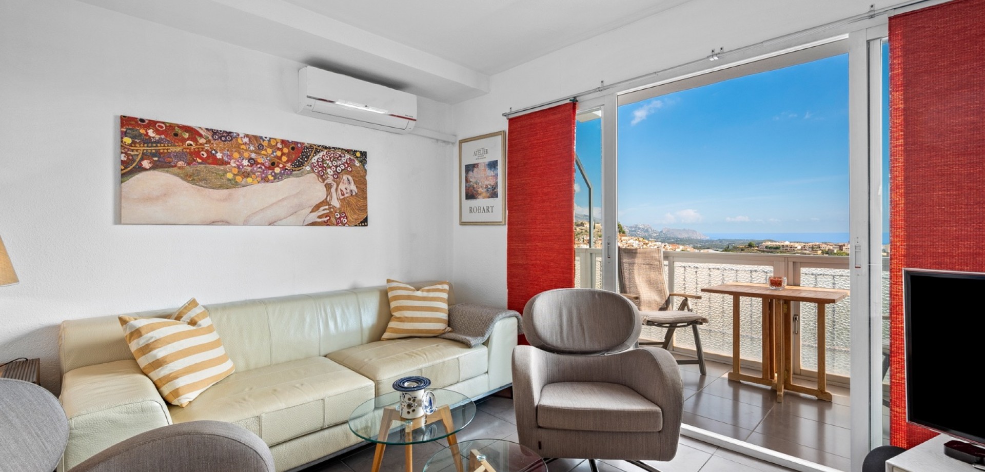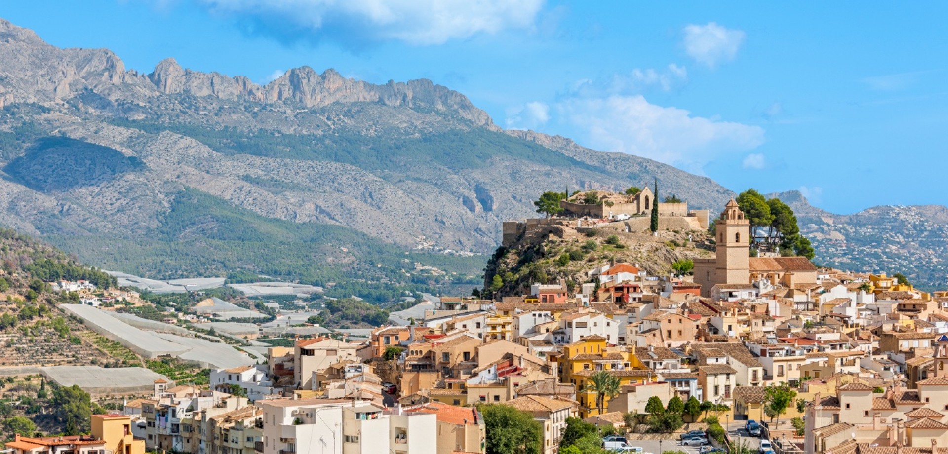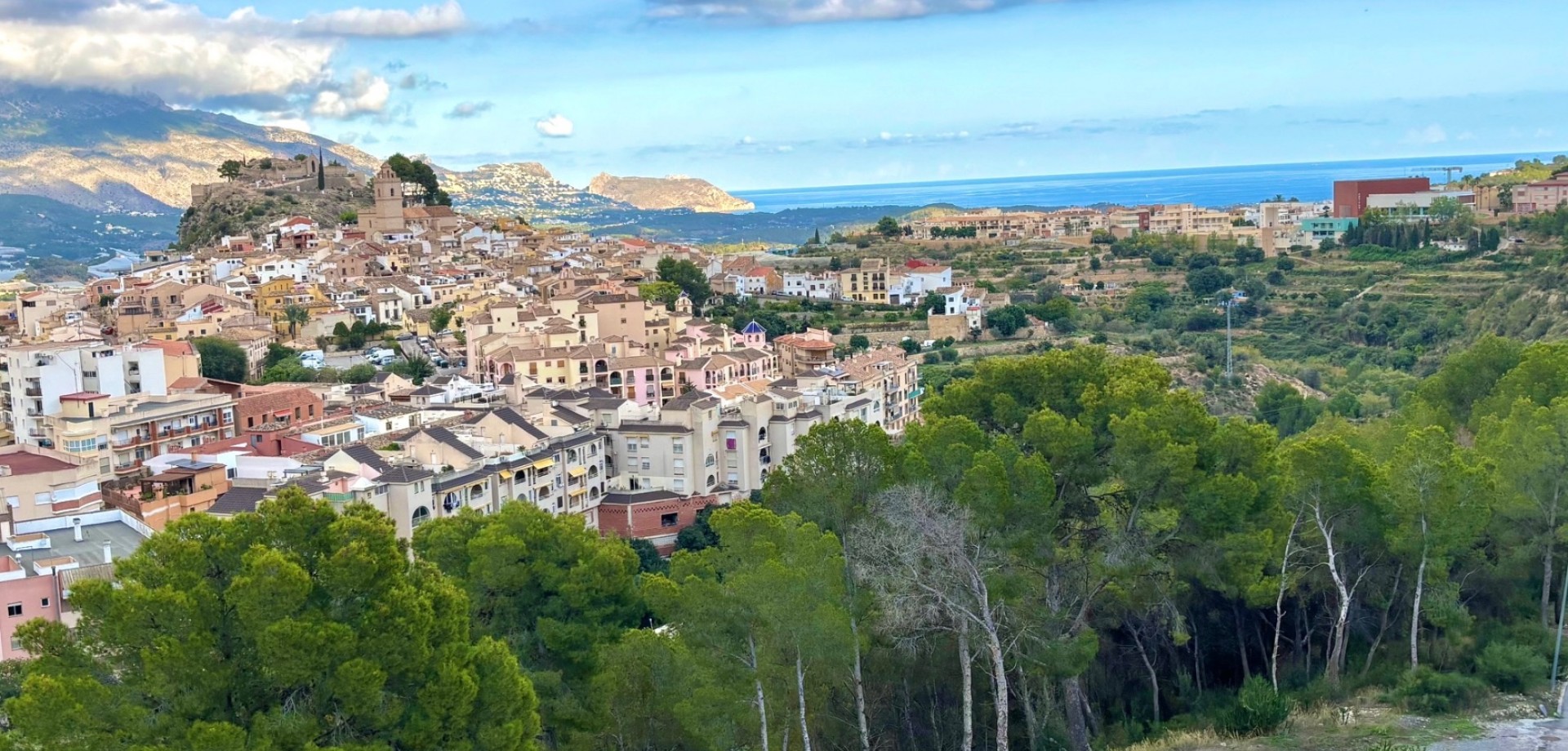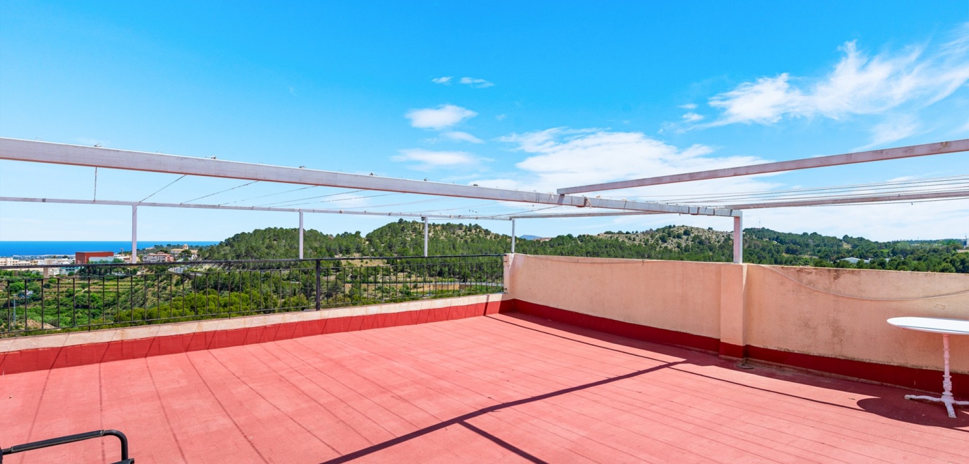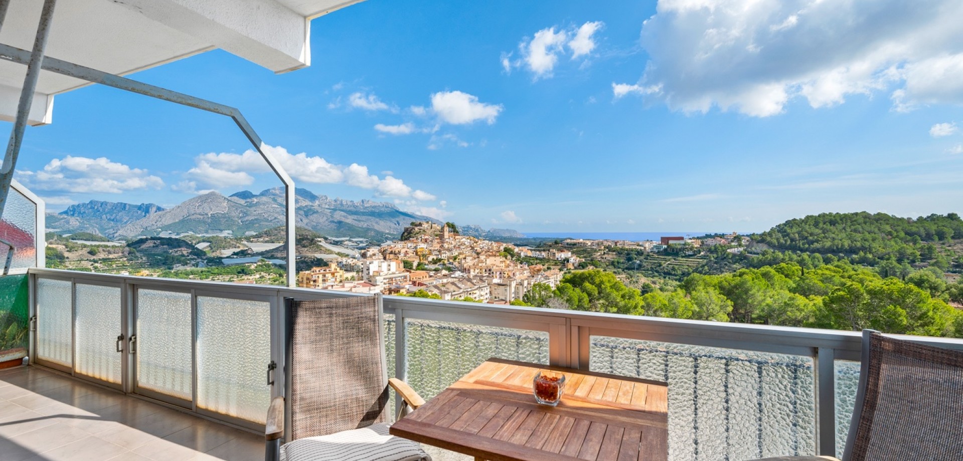 Enjoy stunning panoramic views of the mountains, Polop village, and the Mediterranean Sea from this bright 5th-floor apartment. Perfectly located for those who love nature, peace, and authentic Spanish surroundings – yet only a short walk to restaurants (Michelin), cafés, and supermarket. Key Features 2 bedrooms (option to easily create a 3rd by reconfiguring the living area)Beautiful mountain and sea views from the terraceUnderfloor heating in bathroom and double-glazed windows – ideal for year-round livingAir conditioning / heat pump (installed 2 years ago) – one outdoor unit, two indoor units (living room + bedroom)Modern kitchen and upgraded bathroomSold mostly furnished – even the car can be included upon agreement Outdoor & Communal Areas Large communal swimming pool – exceptionally generous in size and around 3 meters deepGarage (upon agreement) (rare feature – only 16 of the 47 apartments have one)Peaceful natural surroundings with hiking trails nearbyHistorical landmarks and charming Spanish villages in the area Practical Details Expected community fees 2026: approx. €840 per yearReduced thanks to rental income from a rooftop phone antennaAdditional costs: electricity, water, SUMA (property tax), internetMild microclimate all year round – enjoy pleasant evening breezes on the terrace A perfect home for full-time living, a holiday retreat, or an investment with great rental potential.