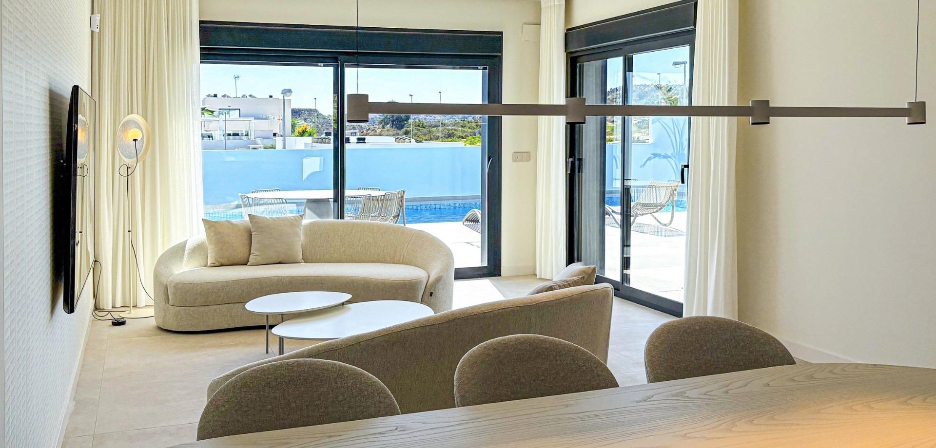 Modern Luxury Villa with Mountain Views in Ciudad Quesada, Costa Blanca Contemporary Design and Exceptional Comfort Discover this elegant new-build villa in Ciudad Quesada, one of the most sought-after residential areas on the Costa Blanca. Set on a 300 m² plot with a beautifully landscaped garden and a private 3x12 m swimming pool, this villa offers the perfect blend of modern architecture, natural beauty, and Mediterranean comfort. The property boasts 265 m² of interior space distributed over two levels, designed to maximize light, space, and functionality. Large windows flood the living areas with natural sunlight while offering breathtaking views of the mountains and surrounding nature. Spacious Layout with Flexible Living Options The villa features 4 bedrooms, with the possibility to create a 5th bedroom or an additional lounge area, adapting perfectly to your lifestyle. On the main floor, you will find an open-plan living and dining area connected to a modern fully equipped kitchen with high-end appliances, creating a seamless flow to the terrace and pool area; ideal for entertaining or relaxing outdoors. On the lower level (underbuild), the remaining bedrooms provide a cool and peaceful atmosphere, with direct access to the garden. The property also includes a closed garage, laundry area, and high-quality finishes throughout. High-End Finishes and Sustainable Features Every detail of this villa has been carefully designed for comfort and efficiency. It includes: Fully furnished kitchen with integrated appliances Bathrooms with furniture, shower screens, and electric towel heaters Air conditioning by ducts (fully installed) Photovoltaic solar panels for energy savings Electric shutters in living room and bedrooms Armoured entrance door for maximum security Prime Location in Ciudad Quesada Nestled in an exclusive and quiet area, this villa enjoys an unbeatable location close to everything. La Marquesa Golf Course is just 1 km away, offering a haven for golf lovers. The Blue Flag beaches of Guardamar del Segura are only 6 km away, while Torrevieja and Orihuela Costa can be reached in under 15 minutes. Alicante International Airport is approximately 40 km (35 minutes), ensuring excellent connectivity. Experience the Mediterranean Lifestyle Surrounded by orange groves, sports clubs, restaurants, and all essential services, Ciudad Quesada offers a vibrant yet peaceful environment. It’s the ideal setting for those seeking a luxury home in the sun; perfect as a permanent residence, vacation retreat, or investment property. Contact us today to schedule a visit and experience the best of Mediterranean living in your new home in Ciudad Quesada.