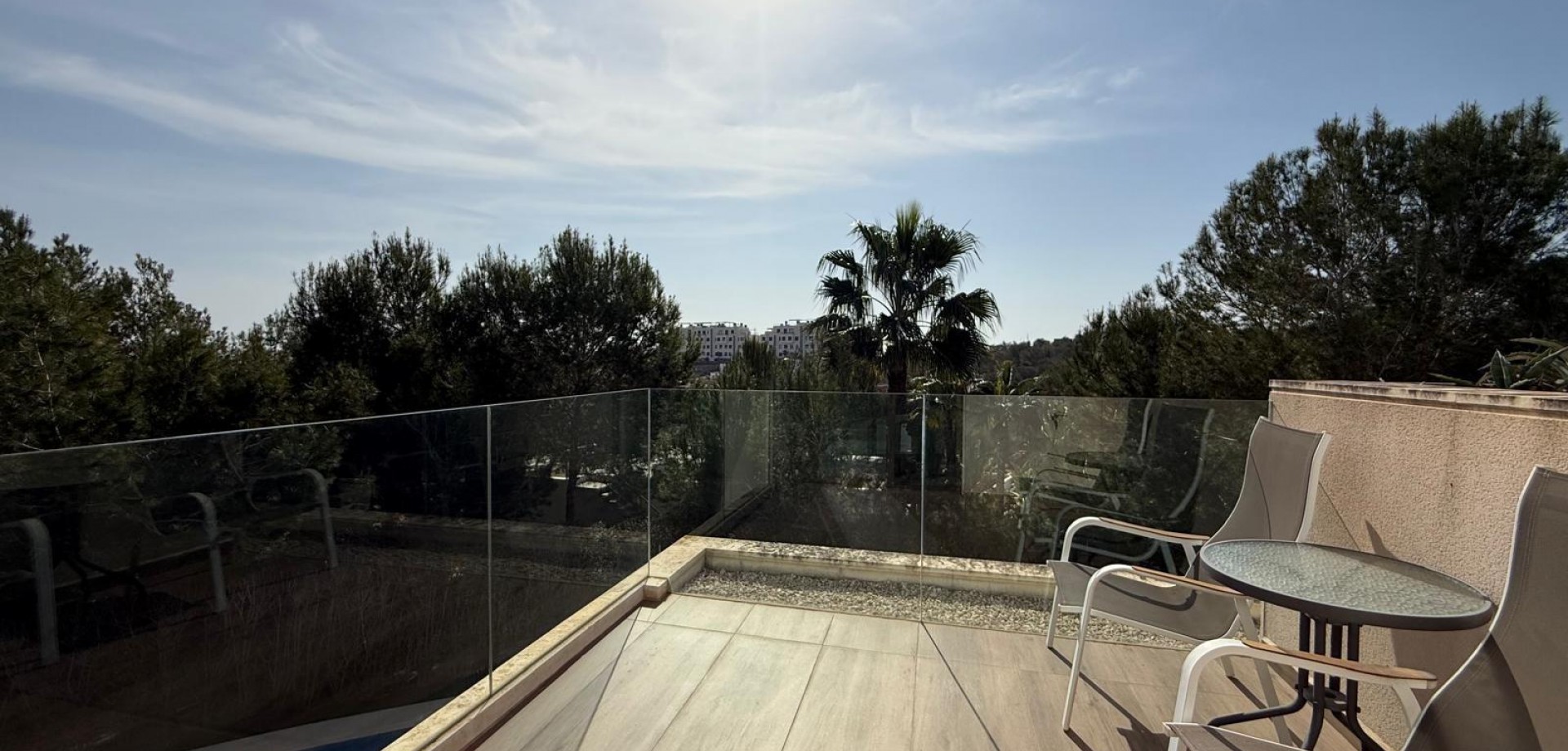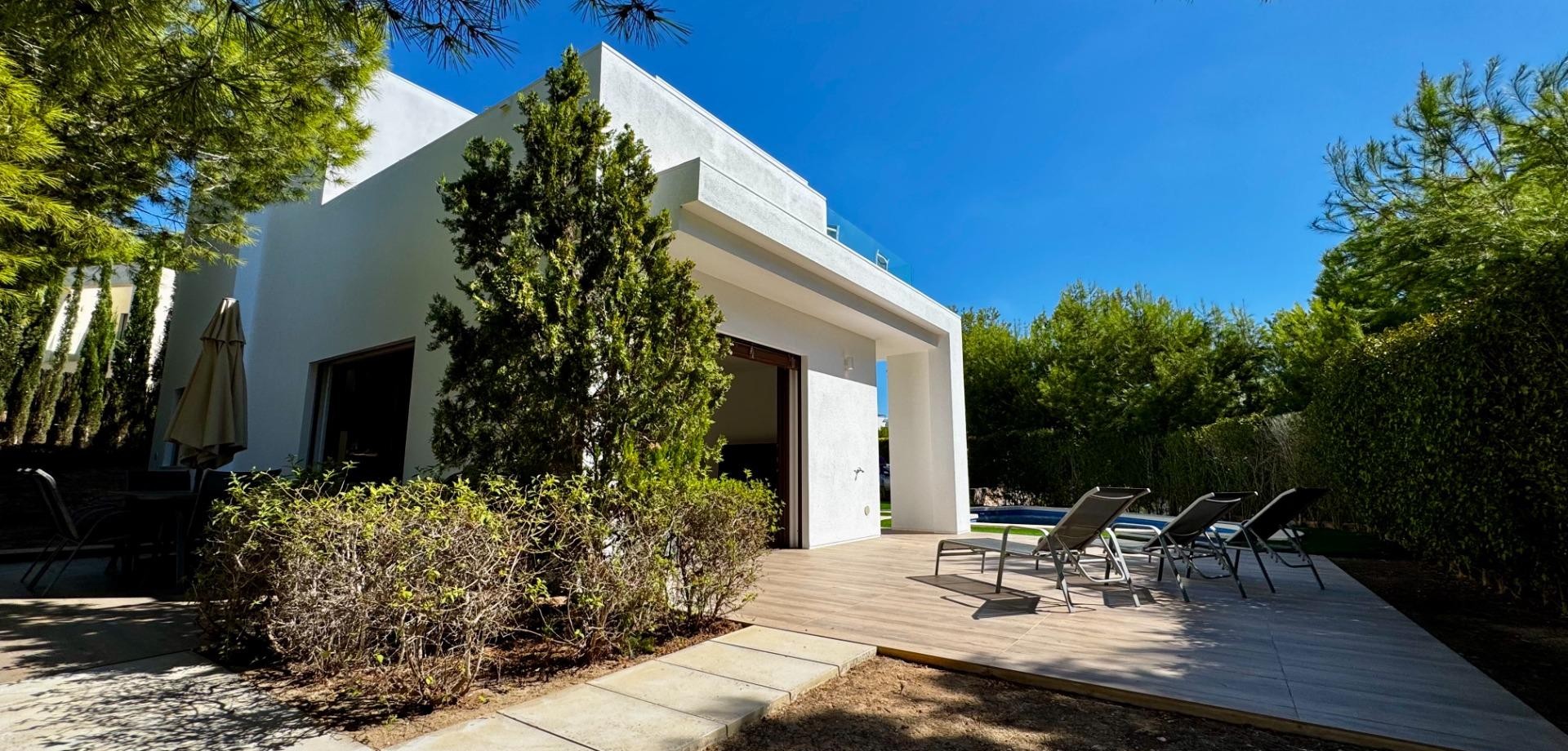 This fantastic luxury villa is located in the prestigious multi awarding winning (2016, 2017, 2018, 2019, 2020 and 2021) Golf Resort of Las Colinas, a 330 hectare valley between the hills, near the sea with a championship golf course running through it.This villa has an excellent interior and exterior design, fitted with premium equipment. The villa is built on a plot of 783m2 and is distributed over two floors with 3 bedrooms and 2 bathrooms. The property has a large private garden with a private swimming and an exterior parking space. There are beautiful open views to the sea from the terrace of the first floor. The villa also has a community pool with fantastic views of the area and the sea.Your life in the award winning Las Colinas Golf & Country Club includes one of the best golf courses in Spain just a walk away, shopping in any of the convenient shopping centers, sunbathing on the beach or dining in any of the several restaurants on site or in nearby charming villages. All the services and leisure are located at a short drive away.This is an ideal place to escape to and enjoy 200,000 sq. meters of beautiful countryside and scenic walks through indigenous flora, and orange and lemon groves. With easy access by car about 45 minutes’ drive from both Murcia and Alicante airports.