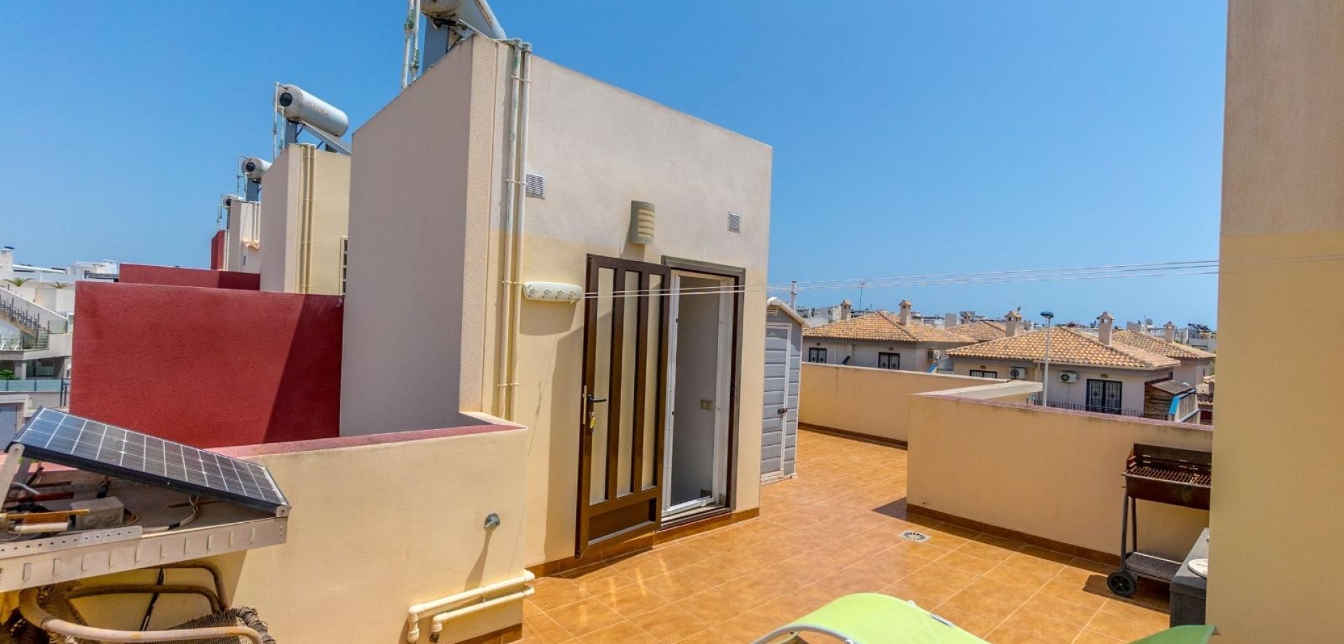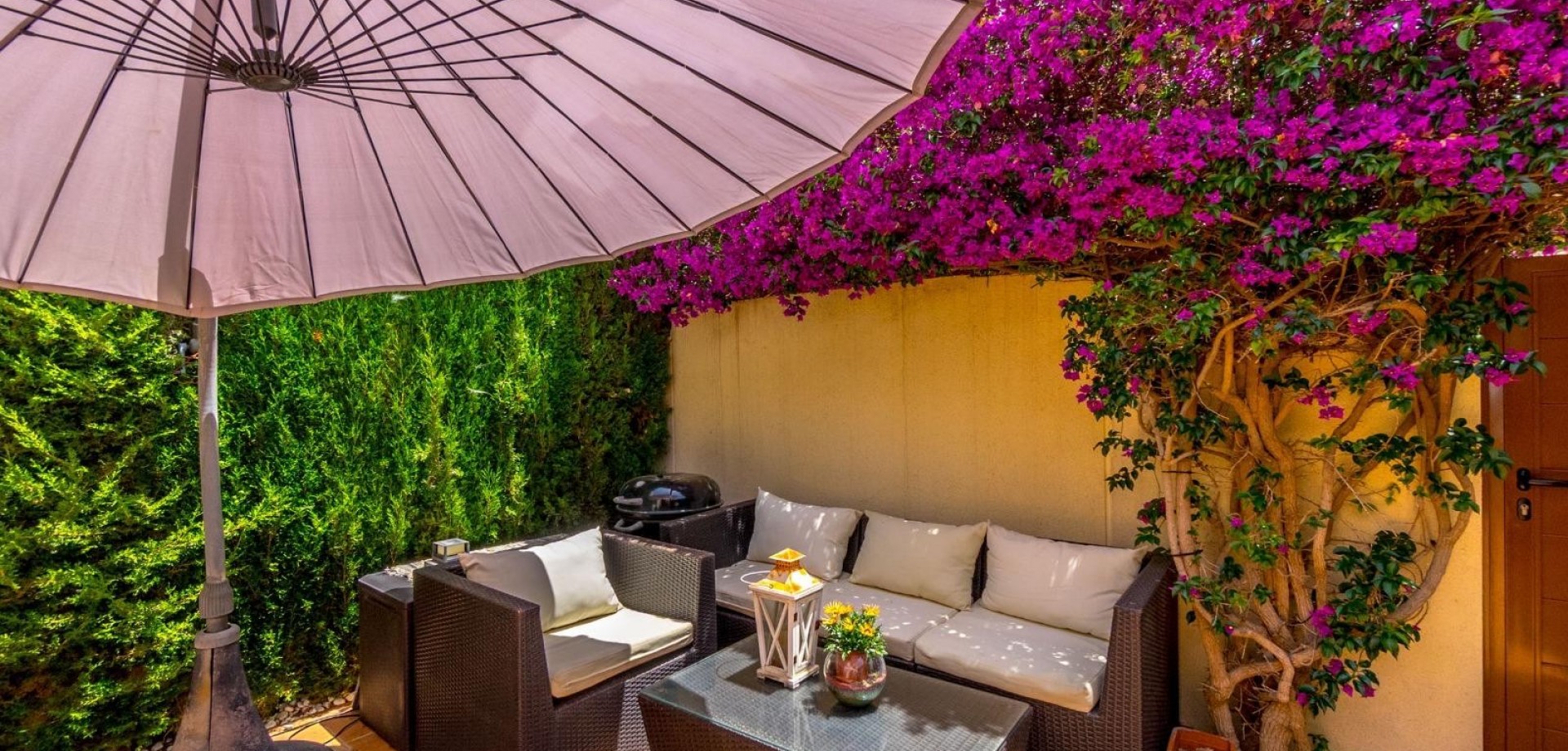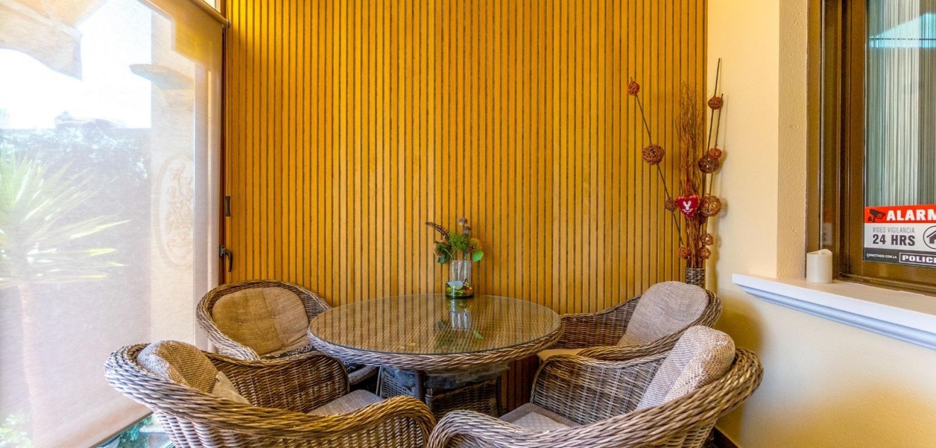 This stunning two-storey townhouse combines privacy, comfort, and contemporary design in a fully renovated home decorated with exceptional taste. It features three spacious bedrooms with fitted wardrobes and two modern bathrooms, offering a functional and elegant living space. The fully equipped kitchen connects seamlessly to a bright and stylish living room furnished with high-quality pieces, including two leather sofas. Enjoy exceptional outdoor areas: a 43 m² front terrace with rattan garden furniture, a private rear patio, an upper-floor balcony, and a 40 m² private solarium — ideal for relaxing and enjoying the Mediterranean climate all year round. The property is sold fully furnished and equipped, including three TVs (50”–65”), Bosch dishwasher, Ariston Wi-Fi water heater, Panasonic air conditioning, infrared heating in every room. It also includes an alarm system, surveillance cameras, reinforced anti-theft doors and windows (up to 120 kg), safety bars, Grohe taps, and garden lighting with automatic irrigation and awnings. Every detail has been meticulously renovated: floors, bathrooms, bedrooms, and outdoor areas. Sold exactly as shown in the photos, ready to move in. A unique home for those seeking quality, elegance, and peace in a prime location.