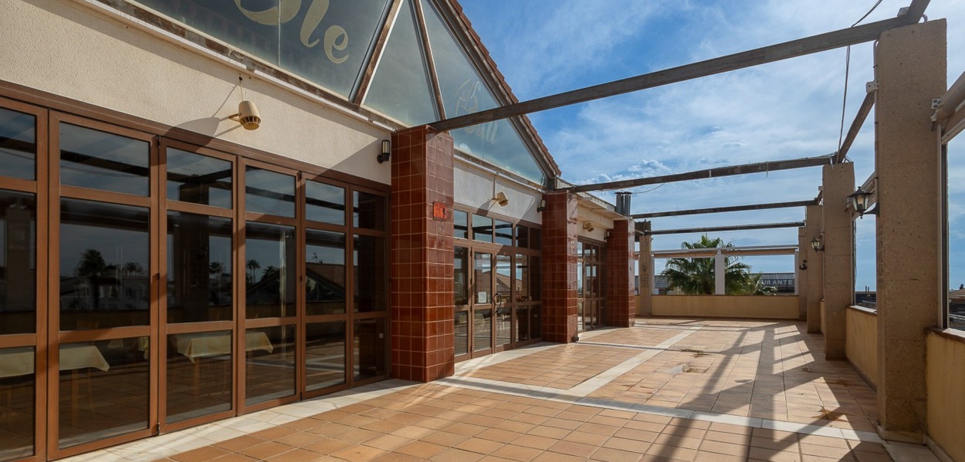 Fantastic Commercial Unit for Sale in the Popular Los Dolses Commercial Center This spacious corner premises—formerly a successful restaurant—offers an excellent opportunity for anyone looking to start or expand a business in one of the most sought-after areas of Los Dolses. The property is sold fully furnished and includes a complete, ready-to-use kitchen, making it an ideal turnkey investment. The unit boasts generous indoor space as well as extensive outdoor terraces on both sides, perfect for creating an inviting atmosphere for customers. Located on the second floor and easily accessible by elevator, it benefits from prime visibility within the bustling commercial center. Inside, the ground level features a well-designed restaurant layout with a bar area and customer toilets. The upper level includes a private office, bathroom, and additional storage space, providing convenience and functionality for daily operations. With its excellent location, ample space, and fully equipped setup, this property offers endless potential. Contact us for more information or an on-site viewing.