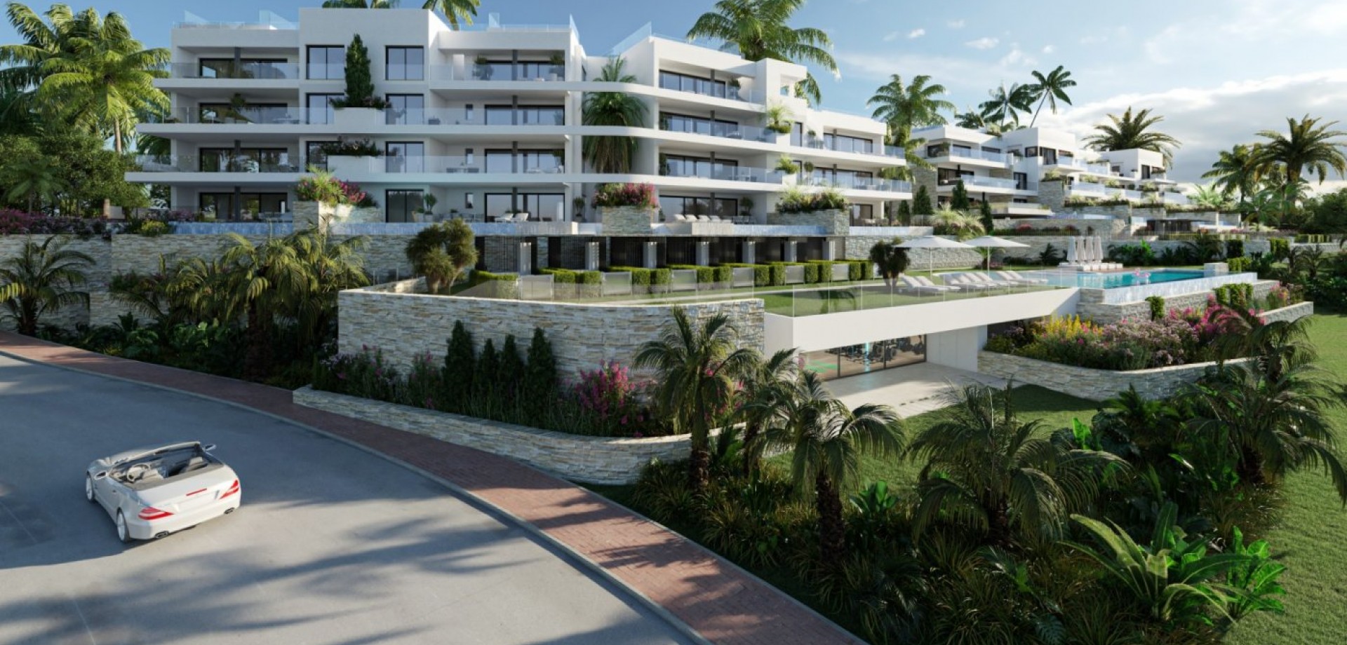 NEW BUILD RESIDENTIAL COMPLEX IN LAS COLINAS GOLF New Build developments consists of 15 luxury apartments with huge terrases overlooking the surrounding natural green area. We have made a combinations of modern and traditional Mediterranean Arhcitecture. Our idea from the beginning has been to make the apartments, with a material description inclutding amongst others, underfloor heating with water, quooker tap, air renewal system, sound reducing ceilings, laquered kitchens, smart home system and much more. When taking the privileged location and views into consideration we believe that complex offers the ideal conditions to meet the criteria of clients with exquisite taste. The thirt floor consists of 3 apartments: 2 apartments comes with 3 bedrooms, 3 bathrooms and a guest toilet and 1 apartment comes with 2 bedrooms, 2 bathrooms. From the apartments you have direct access to big terraces in the same level as the apartment. You have furthermore a staircase taking you to solarium, where each top floor apartment has a private swimming pool, a toilet, an outdoor kitchen with a small lift from the kitchen downstairs and much more. On Las Colinas Golf & Country Club you will furthermore find a wide variaty of amenities for the property owners such as tennis, padel-tennis, fitness, massage, golf, trekking and much more. Inside Las Colinas Golf & Country Club you will also find a number of restaurants as well as a minimarket with fresh baked bread and much more. You will enjoy 200,000 square meters of beautiful Mediterranean landscapes and you will be able to make scenic walks through the lush indigenous, native flora and the extensive fields of orange and lemon groves. Complex located 40 minutes from Alicante airport and 1 hour Murcia - Corvera airport.