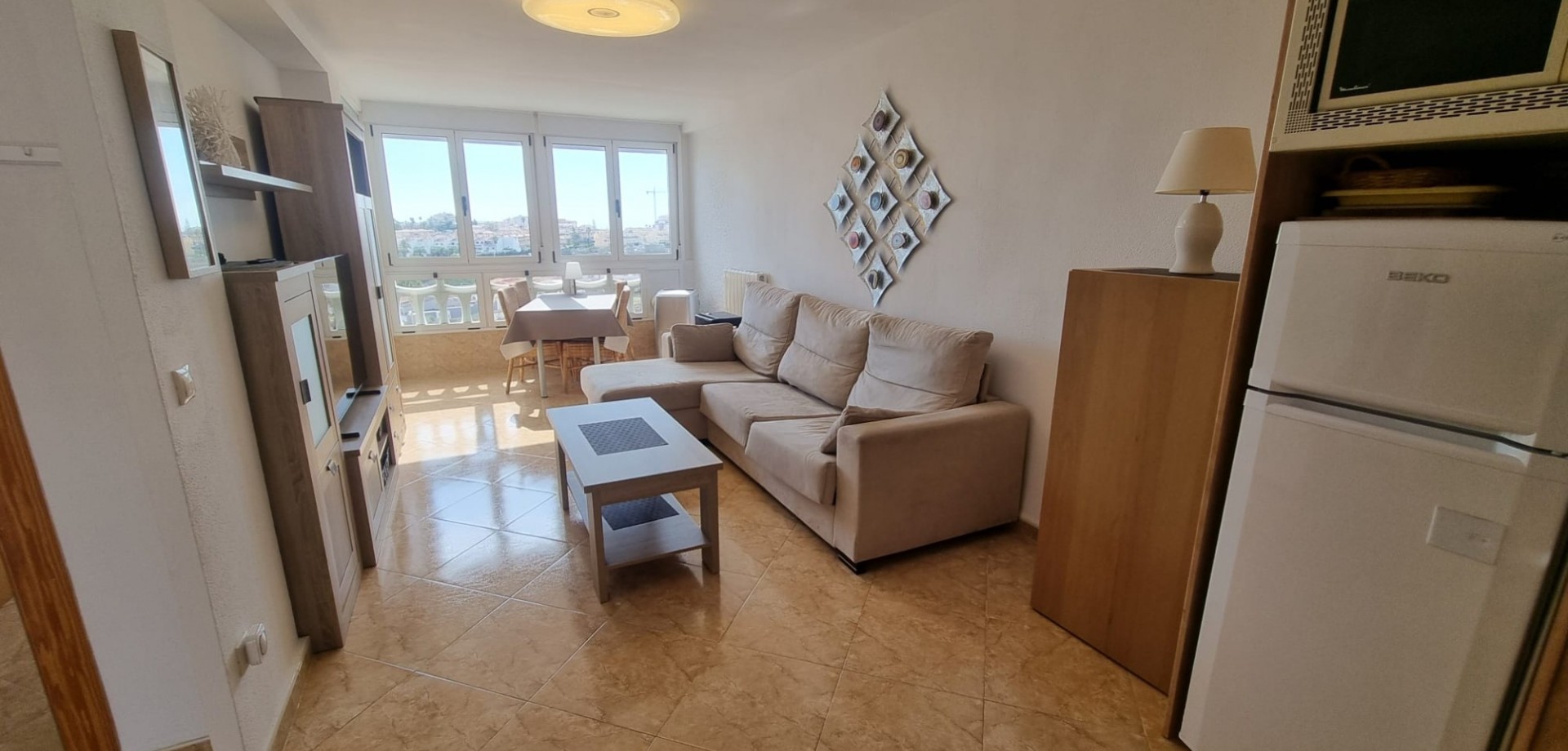 Located on the peaceful Avenida Torreblanca, within the Gerona Building, this bright fifth-floor apartment has been fully renovated and feels brand new. Its smart layout and fresh modern style make it a perfect choice both for those looking for a comfortable home by the sea and for investors seeking a property with strong rental potential in one of Torrevieja’s most popular areas. Panoramic sea views and glazed terrace One of the main highlights of this apartment is its stunning panoramic view of the Mediterranean Sea. The south-east facing glazed terrace fills the living room with natural light throughout the day, while the other half of the terrace has been seamlessly integrated into the interior, creating a spacious and welcoming area with a contemporary touch. It’s the perfect place to enjoy the morning light or relax in the evening while watching the sea. Modern and functional interior The apartment features one bedroom, a bathroom with shower cabin, and a French-style kitchen that is both practical and well designed. It is sold fully furnished and equipped, with every detail arranged to make the most of its 54 m². The full renovation has transformed the property into a stylish, cosy and functional home – ideal for singles or couples looking for a move-in-ready apartment by the coast. Communal areas The building offers beautiful communal gardens, a barbecue and play area, creating a pleasant environment for socialising or relaxing outdoors. Excellent location and surroundings Just 500 metres from Cabo Cervera Beach, this apartment enjoys an excellent location close to shops, restaurants, leisure options, healthcare facilities and the Aromatic Park, one of Torrevieja’s most charming green spaces. The area is very well connected via the N-332, offering quick access to both the town centre and main routes towards Alicante and Orihuela Costa. A perfect home or investment opportunity Thanks to its location, impeccable condition and sea views, this apartment represents an excellent opportunity for both living and investment. It’s the ideal property for those who wish to enjoy the Mediterranean lifestyle in a peaceful setting, with all services within easy reach and the beach just a short walk away. Would you like to know more or schedule a viewing? Contact our team for detailed information or to arrange a visit.