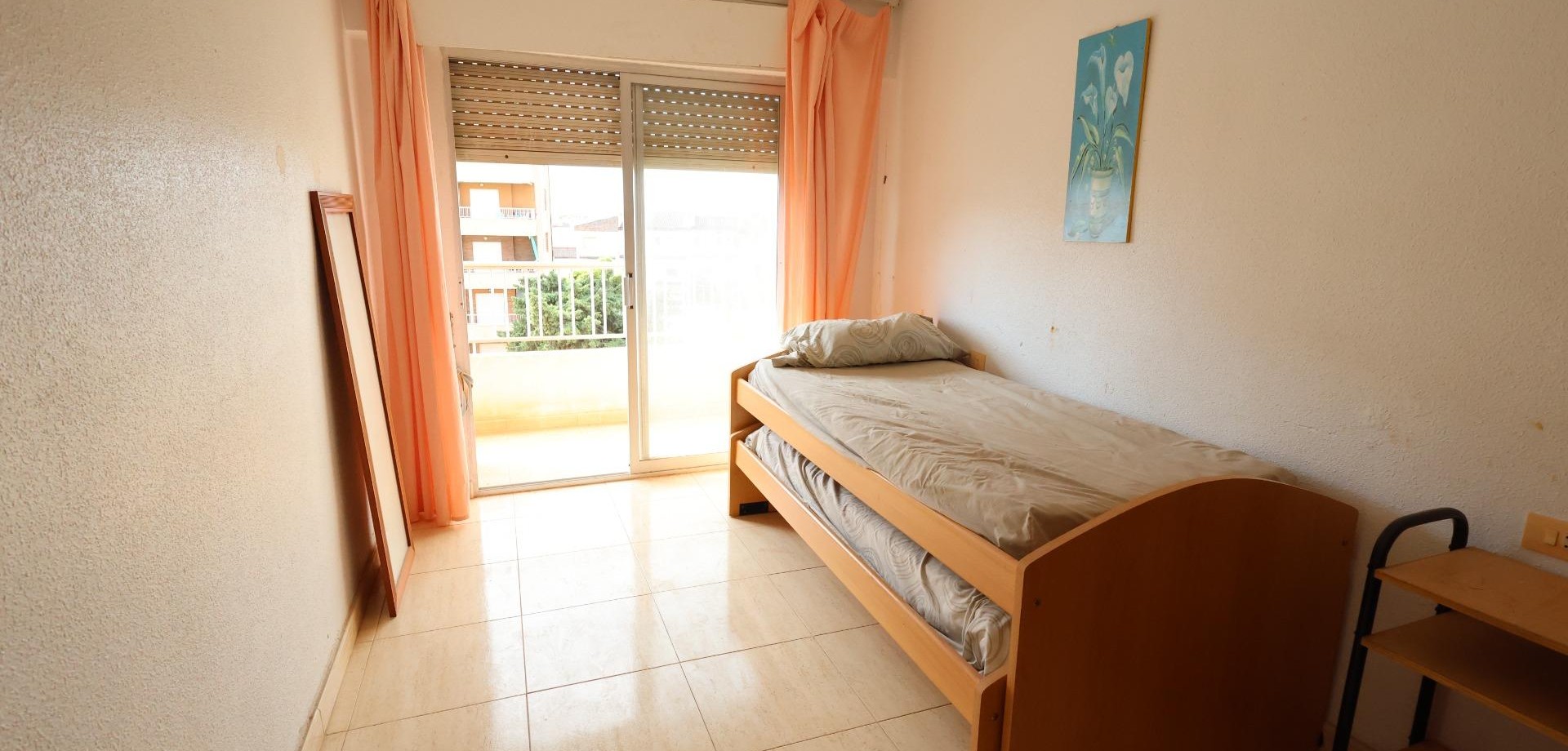 Punta Prima. Fourth-floor apartment with elevator, south-facing, and located directly in front of the communal pool — just 300 meters from the beach.. . With a surface area of approximately 70 m2, this property is ideal both for investors and for those looking to renovate and customize their home to their own taste. It offers 2 bedrooms with direct access to the terrace, one full bathroom, a guest toilet, an open-plan kitchen, and a bright living-dining room also opening onto the terrace.. . In addition, it includes a parking space in the same building.. An excellent opportunity in one of the most sought-after areas of the coast..