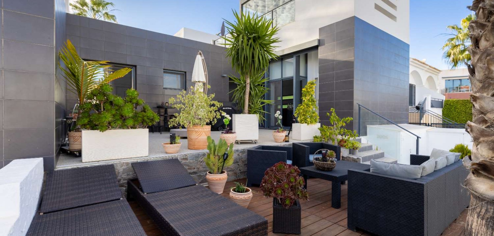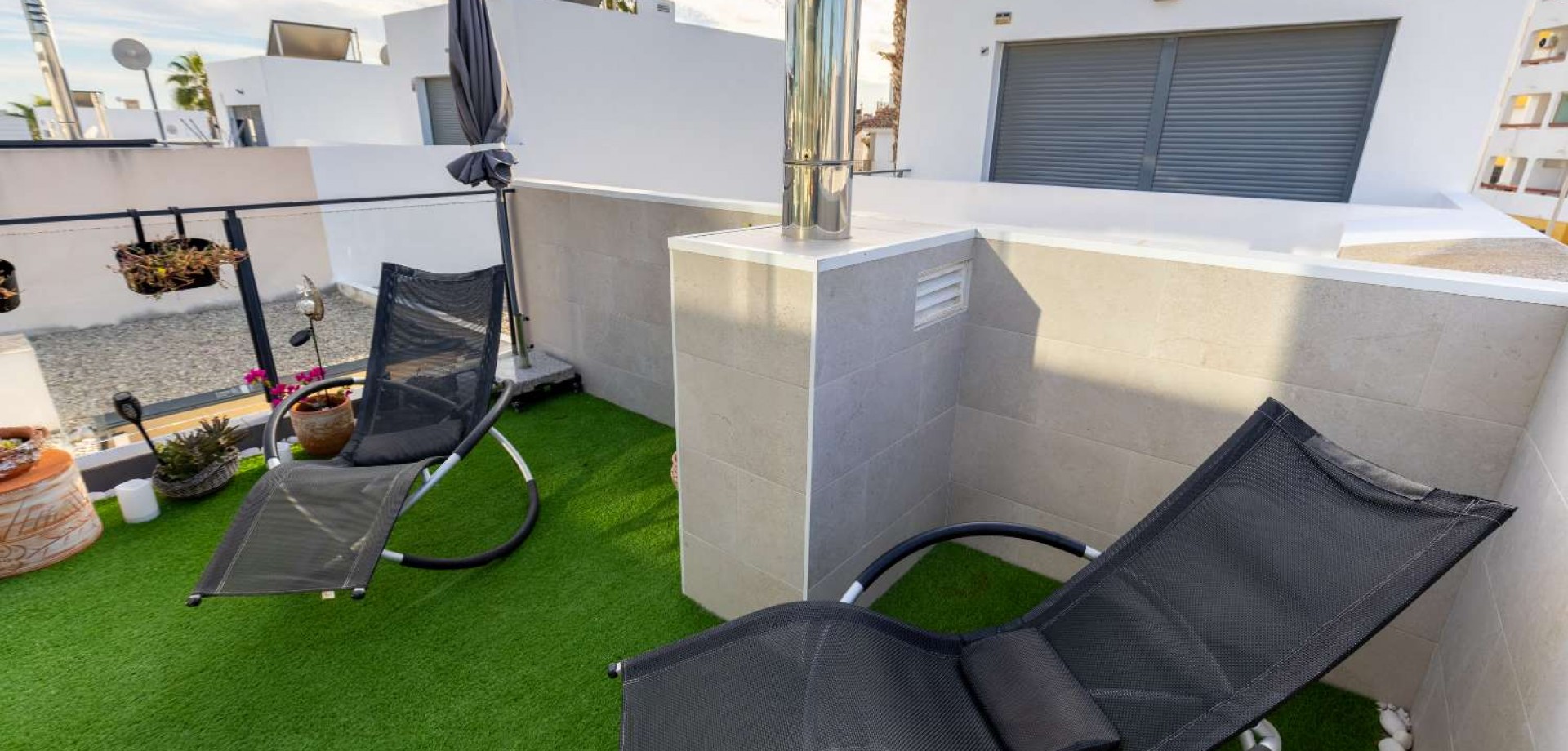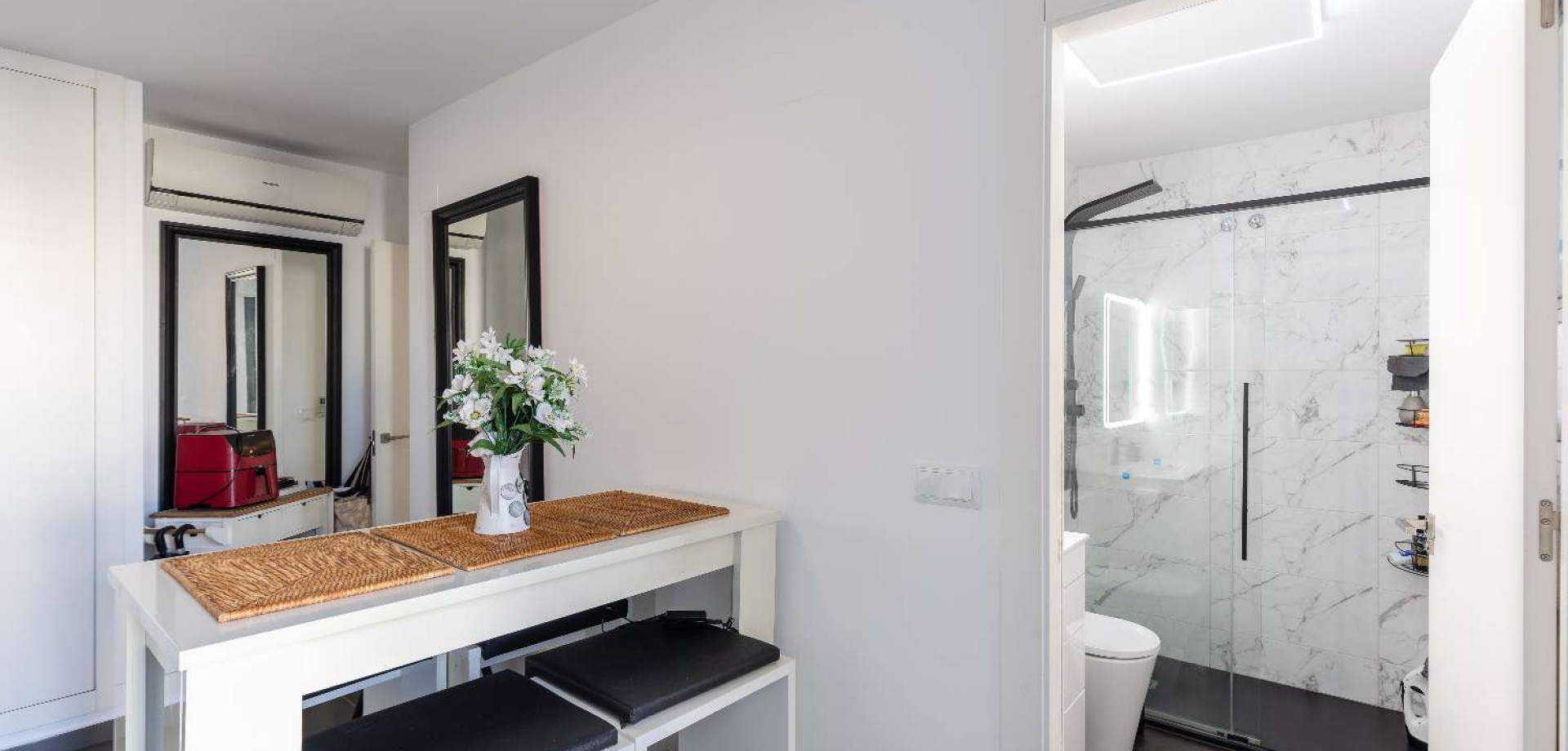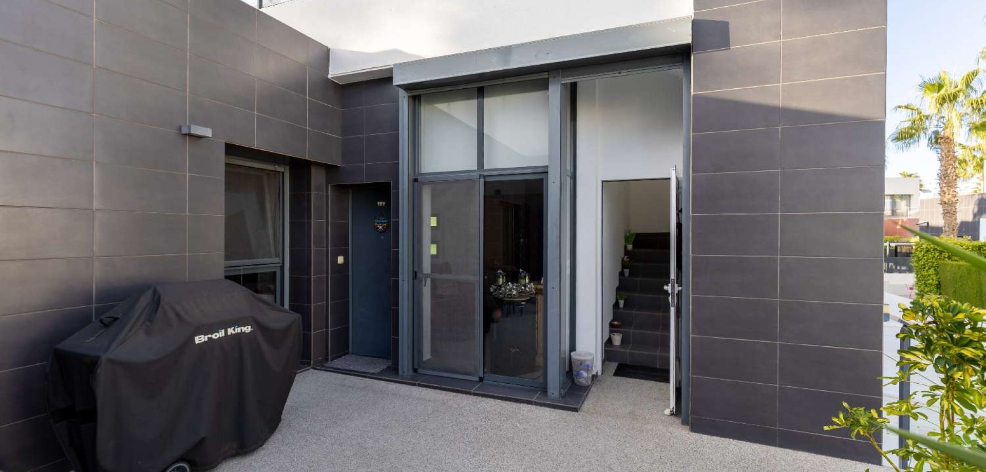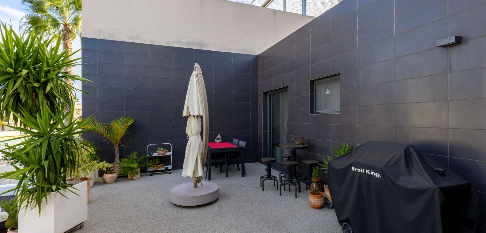 Charming Modern Semi-Detached House – Peaceful, Comfortable, and Close to Shops Located in a quiet residential area just steps from the La Fuente shopping center, this contemporary semi-detached house offers an ideal living environment for families or couples seeking comfort and convenience. Bathed in natural light, the house comprises three spacious bedrooms, two modern bathrooms, and a bright living room opening onto a fully equipped kitchen. Its optimized layout ensures a welcoming and functional atmosphere for everyday living. Enjoy several outdoor spaces: a pleasant terrace, a solarium for relaxing moments, and access to a shared swimming pool to enjoy sunny days. For added convenience, the property includes a private parking space and benefits from easy access to shops, schools, and public transportation. A rare find combining modernity, tranquility, and accessibility, ideal for those seeking a harmonious lifestyle close to all amenities.