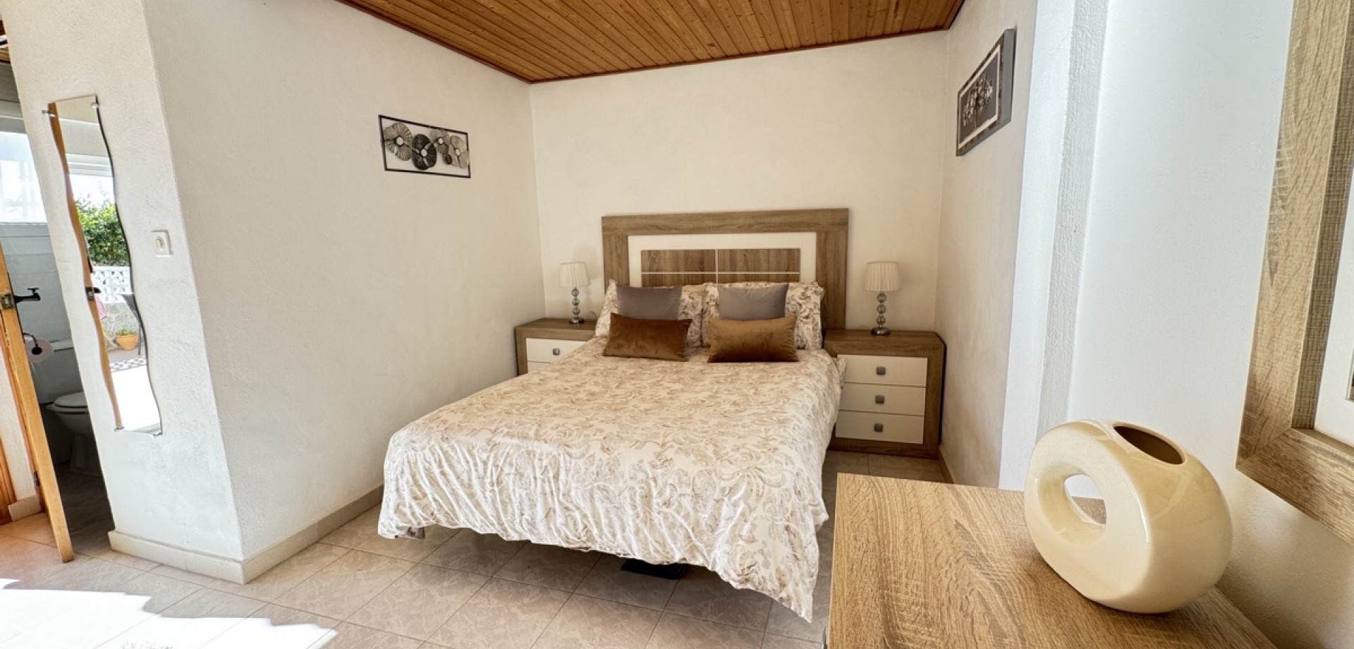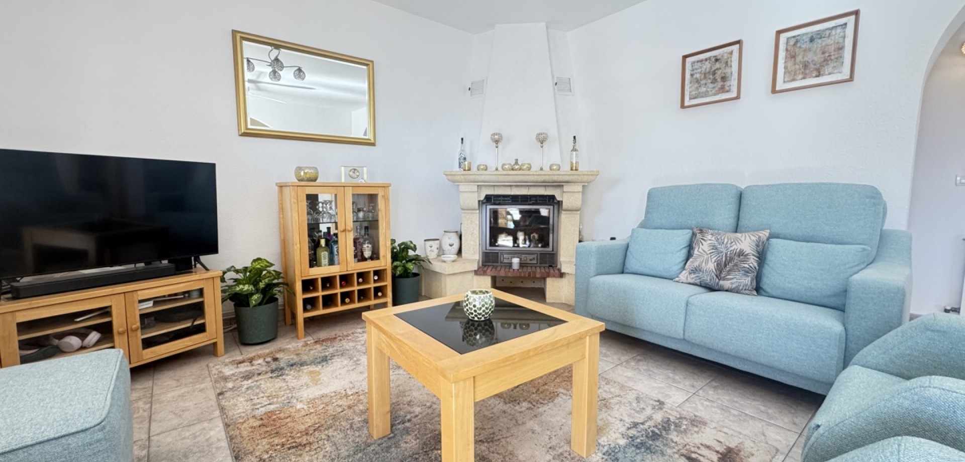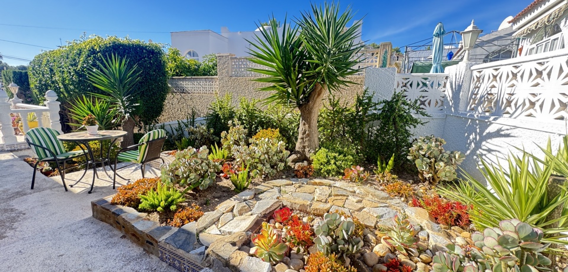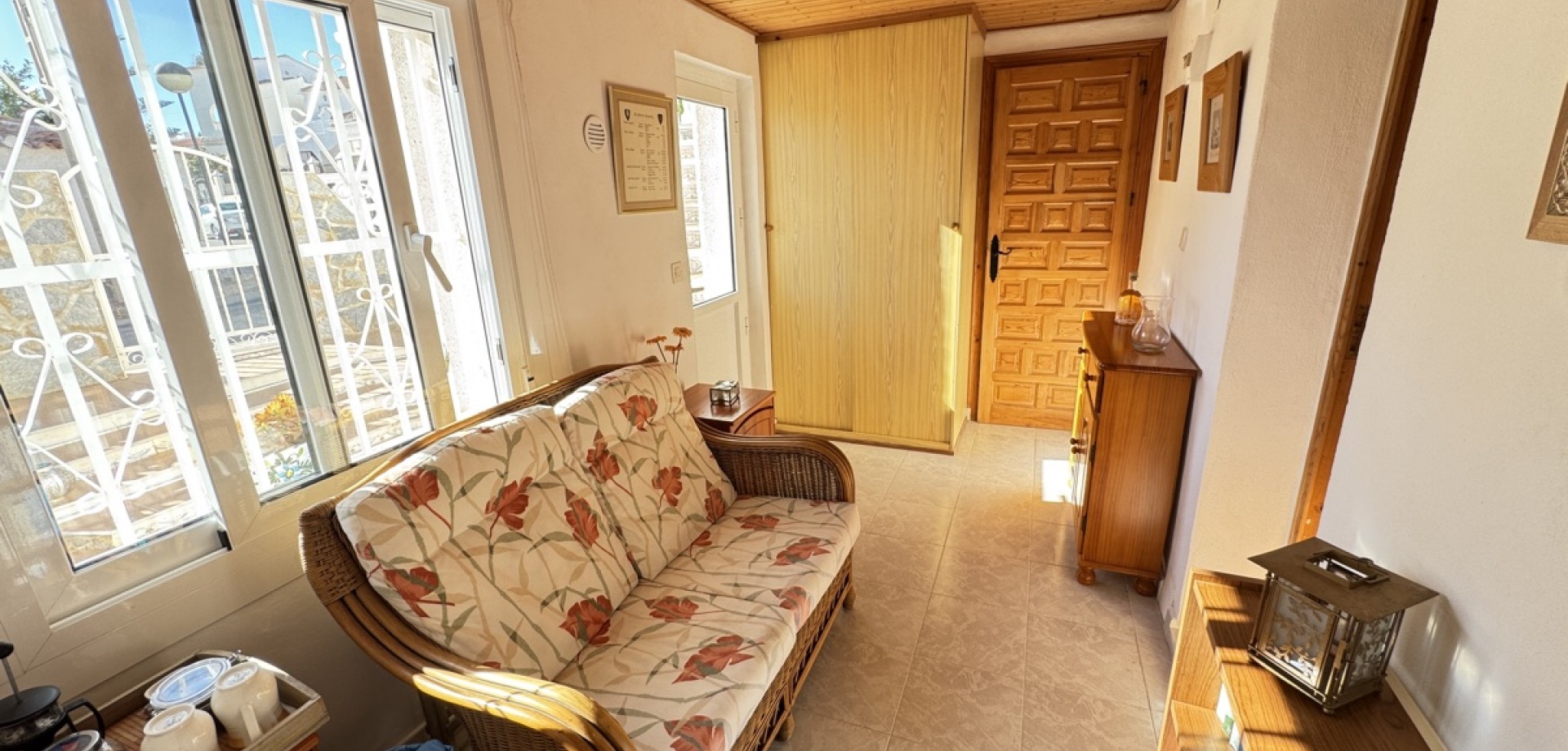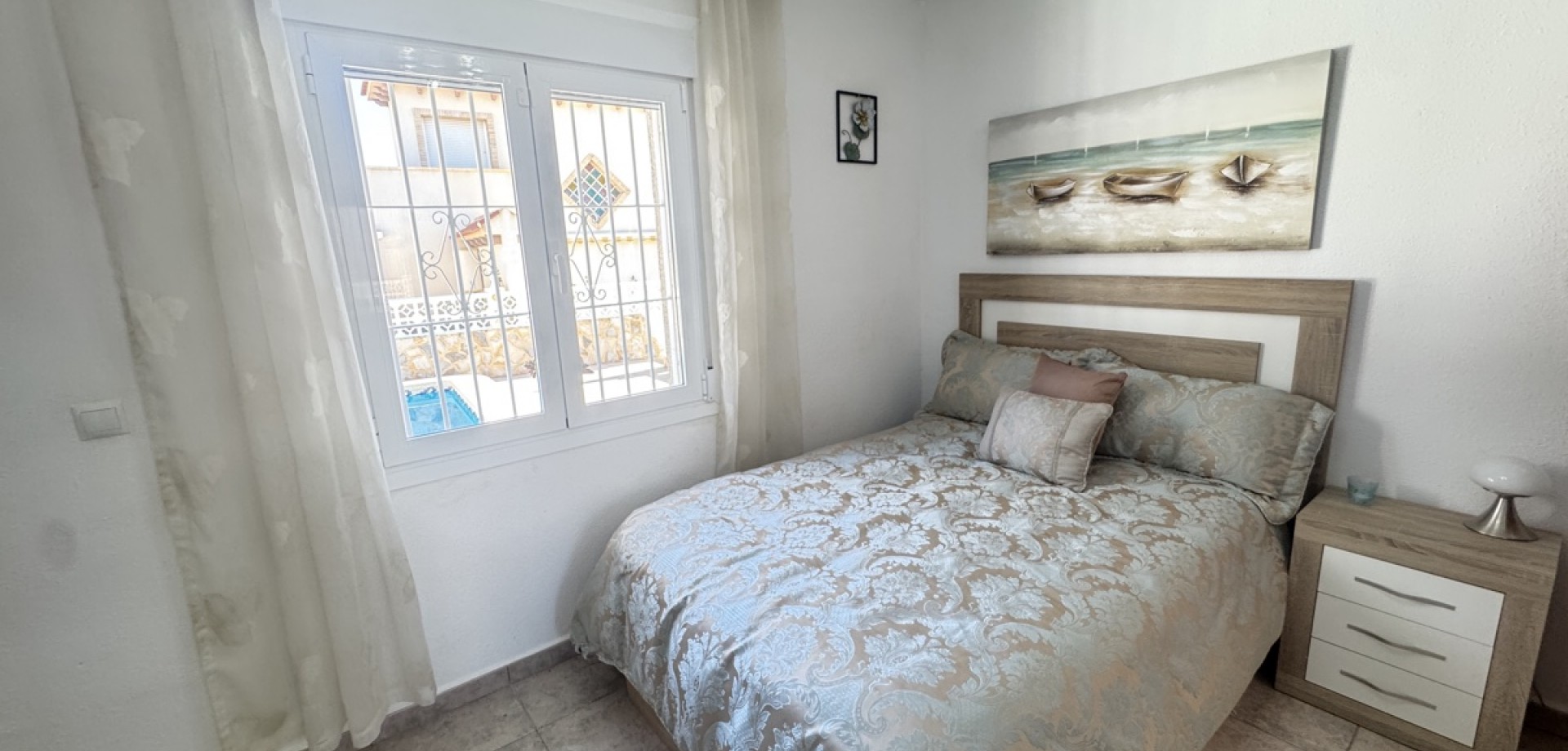 Stunning detached villa with private pool, located in the sought-after Blue Lagoon area of Orihuela Costa. This beautifully presented property boasts breathtaking views of the Torrevieja coastline and Orihuela mountains. Main Floor: - 2 spacious bedrooms with en-suite bathrooms - Large lounge with open-plan kitchen - Wrap-around glazed terrace with seating areas, perfect for alfresco dining and relaxation - Natural piped gas central heating and gas boiler Downstairs: - Self-contained 1-bedroom apartment with bathroom - Various store rooms and covered outdoor kitchen area Additional Features: - Large rooftop solarium with stunning views - Private pool - 2 outside storage cupboards Ideal Location: - Blue Lagoon is a tranquil and exclusive area, known for its beautiful beaches and crystal-clear waters - Close proximity to golf courses, sports facilities, and scenic walking routes - Easy access to the main road, with links to nearby towns and cities A Rare Find: This lovely villa offers a perfect blend of comfort, convenience, and relaxation. Don't miss the opportunity to make it your home or holiday retreat! Viewing Recommended: Contact us to arrange a viewing and make this stunning villa your own.