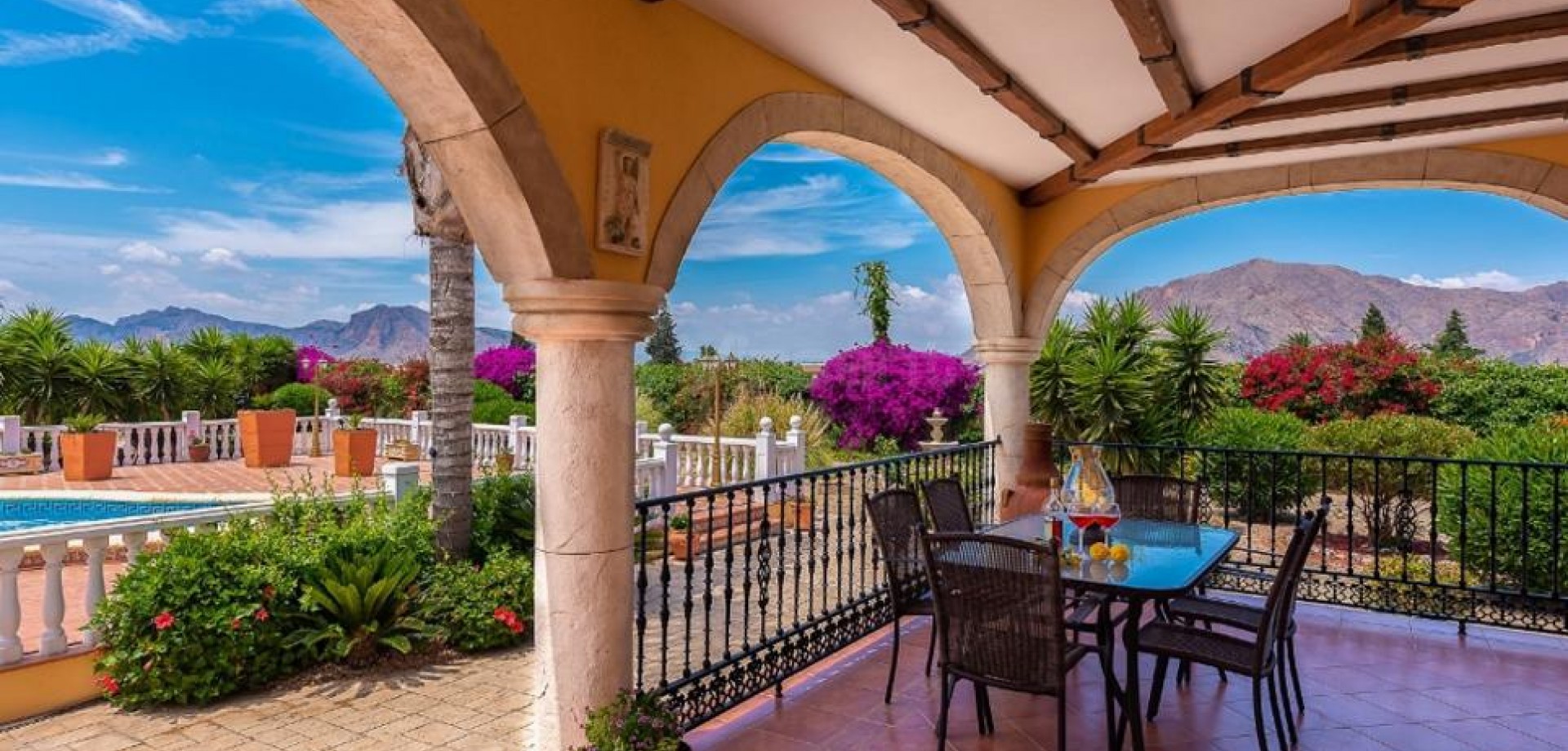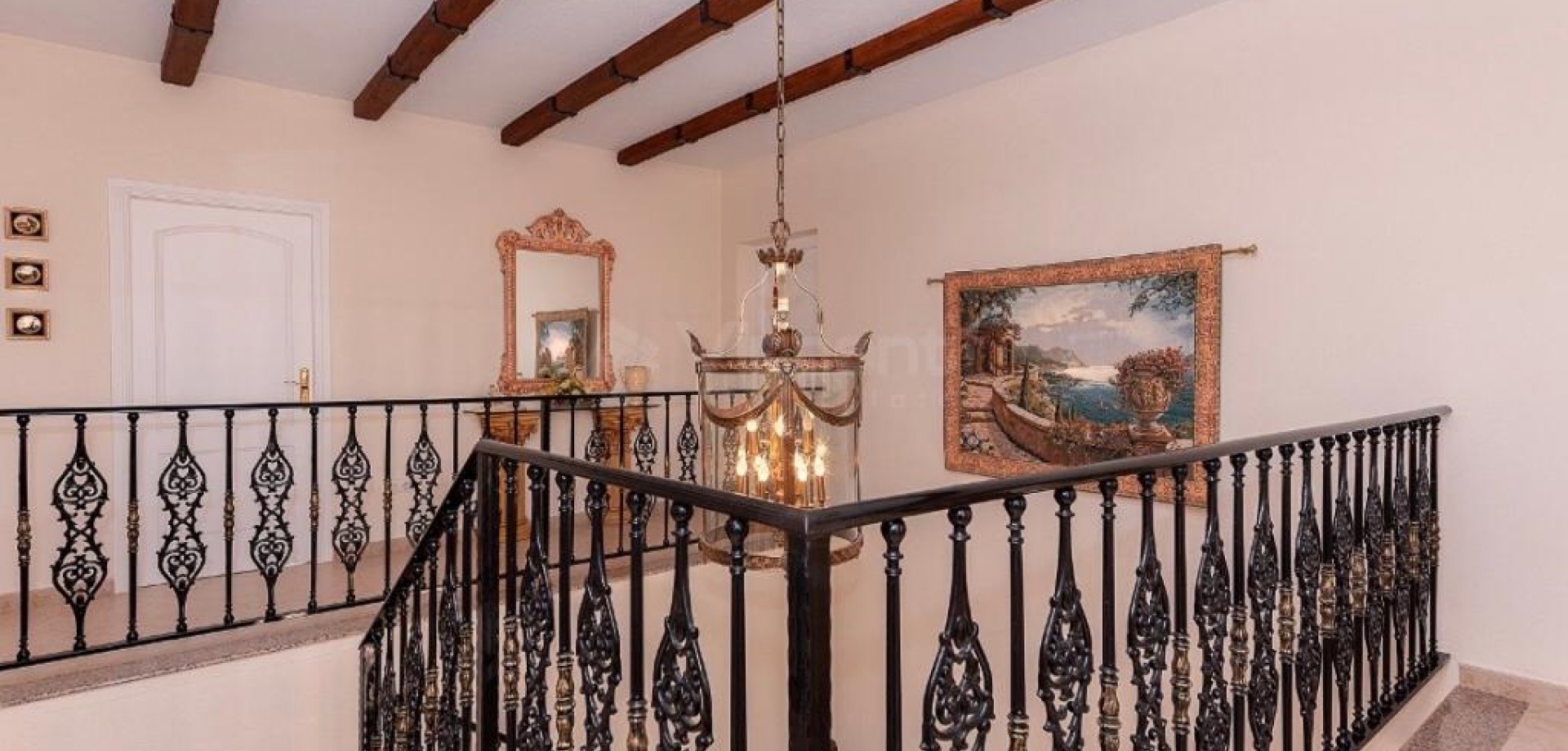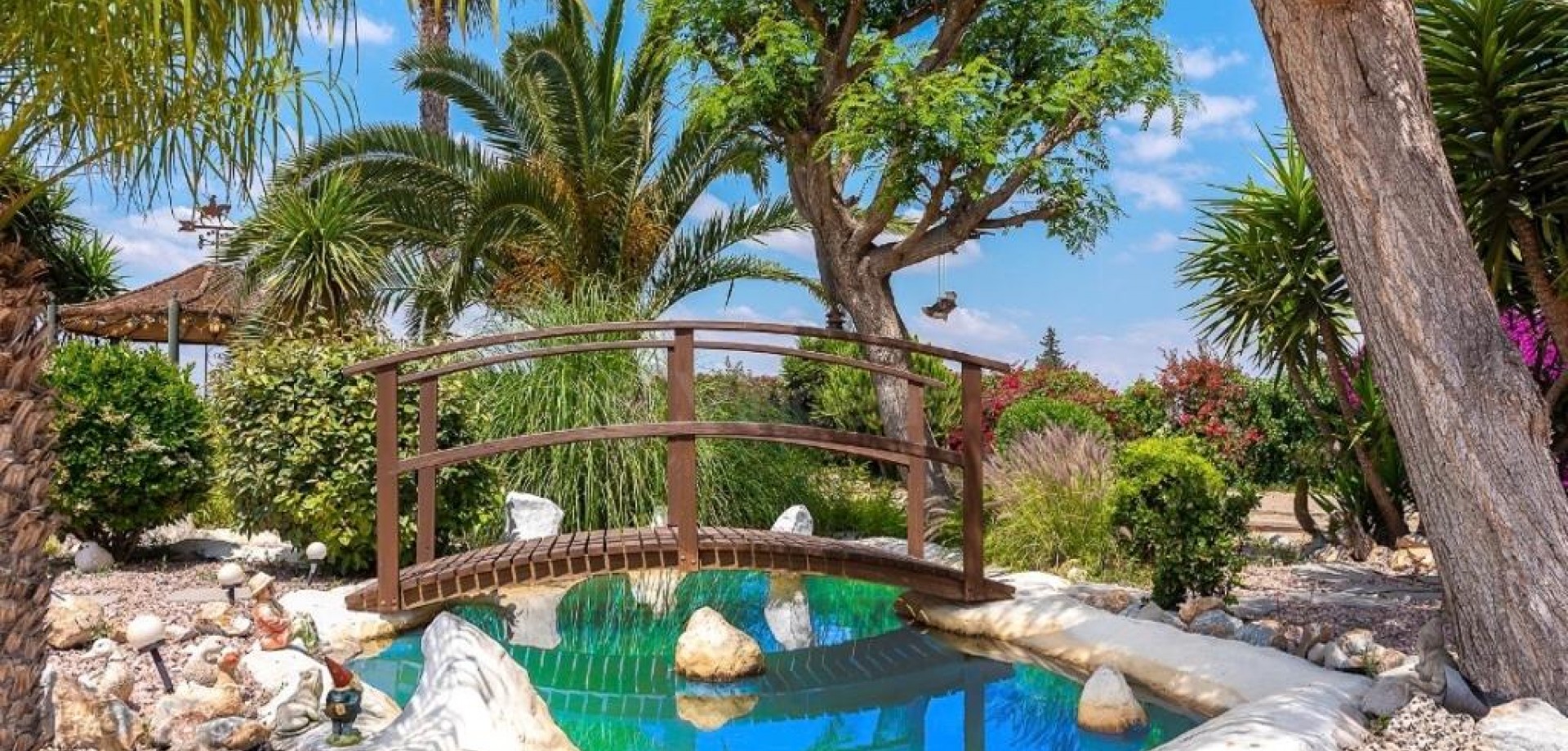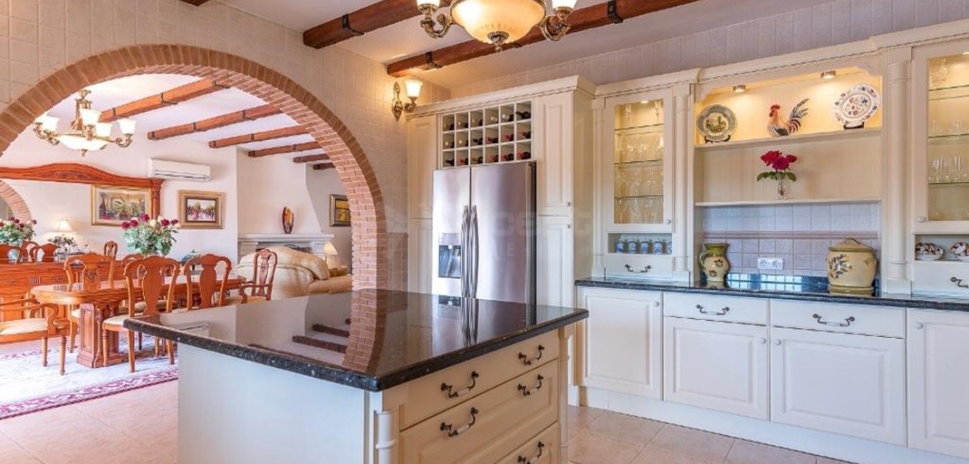 Upon entering, you'll be greeted by a spacious lounge, where original wooden beams stretch across the ceiling, adding a touch of rustic elegance. The large windows flood the room with natural light, creating a warm and inviting atmosphere. The centrepiece is a feature fireplace, perfect for cozy evenings during cooler months.One of the most remarkable features of this villa is the bright open-plan kitchen. It boasts a stunning island bench making it the heart of the home, ideal for entertaining guests and there's even a separate area for dining for enjoying family meals. The kitchen is a true work of art with original wooden beams giving it an air of grandeur and sophistication.With four bedrooms, this villa ensures that both residents and guests have a comfortable and private retreat. The master suite is especially spacious and luxurious, offering an ensuite bathroom and a private balcony overlooking the scenic beauty of Costa Blanca.Step outside, and you'll find a world of beauty waiting for you. A small bridge stretches over a tranquil, meandering lake, adding a touch of romance to the landscape. The outside terraces provide the perfect space for alfresco dining, soaking up the Mediterranean sun, or simply savouring the breathtaking mountain views that surround the property.For those who appreciate both aesthetics and practicality, this villa boasts two separate double garages. Whether you need the extra space for vehicles, storage, or a workshop, you have plenty of room to tailor it to your needs.In summary, this 4-bed detached country villa near La Campaneta, Costa Blanca, is a remarkable fusion of traditional charm and modern luxury. With its original wooden beams, ornate kitchen, outdoor features, and stunning mountain views, it provides the perfect canvas for a serene and sophisticated country lifestyle. Whether you're looking for a permanent residence or a vacation home, this villa promises a unique blend of comfort and elegance in a truly enchanting setting. Contact us today to arrange for your personal viewing appointment.