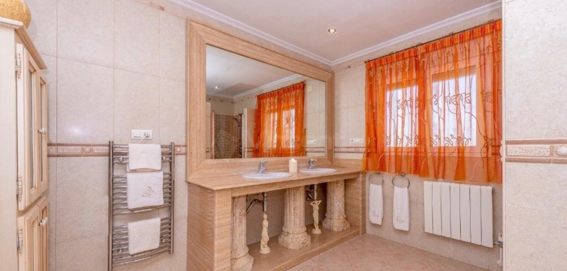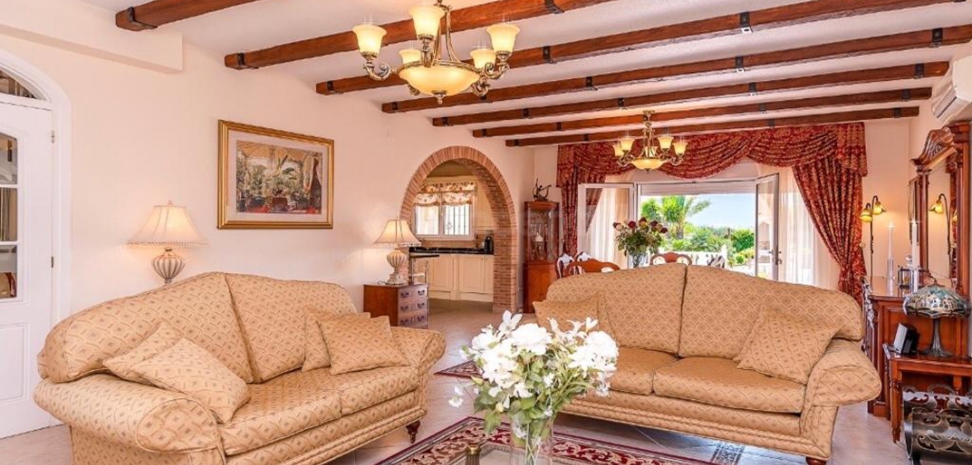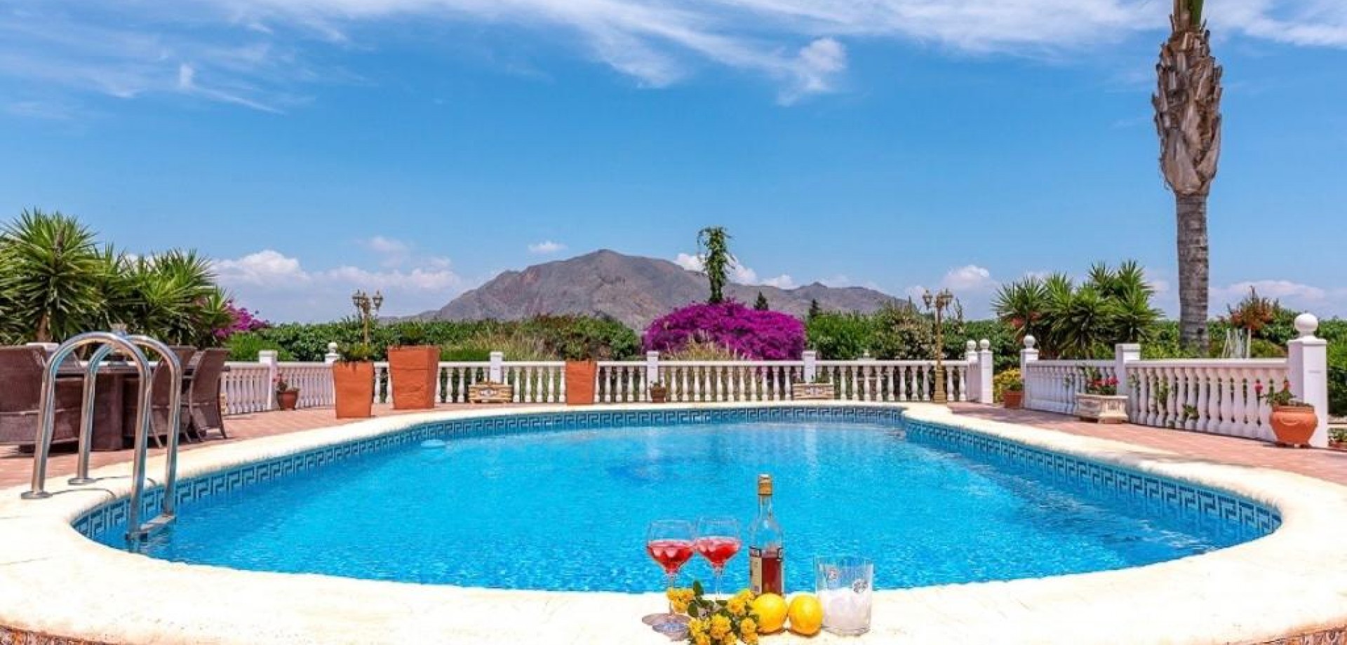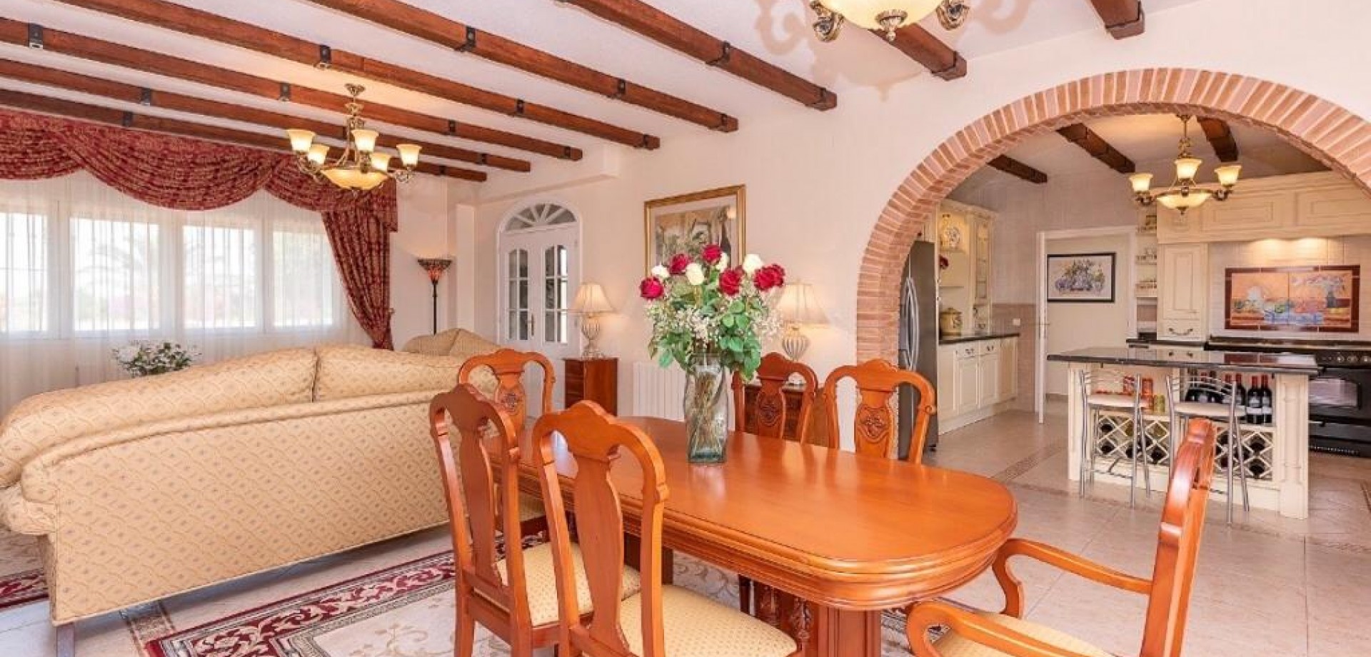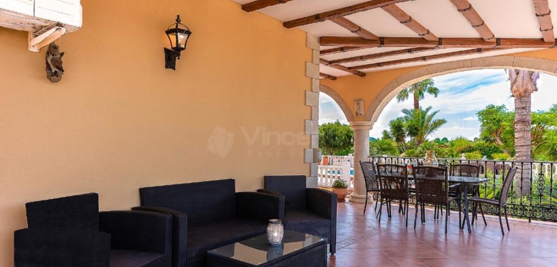 Upon entering, you'll be greeted by a spacious lounge, where original wooden beams stretch across the ceiling, adding a touch of rustic elegance. The large windows flood the room with natural light, creating a warm and inviting atmosphere. The centrepiece is a feature fireplace, perfect for cozy evenings during cooler months.One of the most remarkable features of this villa is the bright open-plan kitchen. It boasts a stunning island bench making it the heart of the home, ideal for entertaining guests and there's even a separate area for dining for enjoying family meals. The kitchen is a true work of art with original wooden beams giving it an air of grandeur and sophistication.With four bedrooms, this villa ensures that both residents and guests have a comfortable and private retreat. The master suite is especially spacious and luxurious, offering an ensuite bathroom and a private balcony overlooking the scenic beauty of Costa Blanca.Step outside, and you'll find a world of beauty waiting for you. A small bridge stretches over a tranquil, meandering lake, adding a touch of romance to the landscape. The outside terraces provide the perfect space for alfresco dining, soaking up the Mediterranean sun, or simply savouring the breathtaking mountain views that surround the property.For those who appreciate both aesthetics and practicality, this villa boasts two separate double garages. Whether you need the extra space for vehicles, storage, or a workshop, you have plenty of room to tailor it to your needs.In summary, this 4-bed detached country villa near La Campaneta, Costa Blanca, is a remarkable fusion of traditional charm and modern luxury. With its original wooden beams, ornate kitchen, outdoor features, and stunning mountain views, it provides the perfect canvas for a serene and sophisticated country lifestyle. Whether you're looking for a permanent residence or a vacation home, this villa promises a unique blend of comfort and elegance in a truly enchanting setting. Contact us today to arrange for your personal viewing appointment.