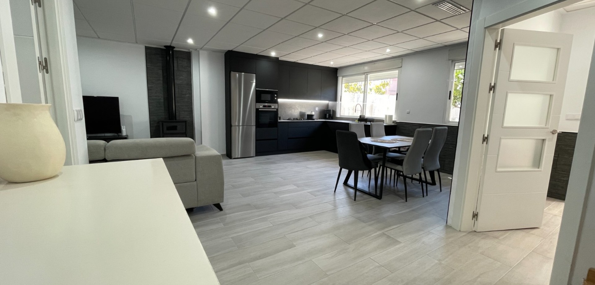 Spacious 5-bedroom family home in the heart of AlgorfaIntroducing this exceptional terraced house, beautifully renovated and impressively spacious, located in the charming village of Algorfa. Ideal for families seeking comfort, generous space and proximity to all amenities, it offers the perfect blend of modern living and traditional village character.Upon entering, a welcoming private terrace leads into a bright open-plan living area that combines the lounge, dining room and a contemporary kitchen—perfect for everyday living and entertaining. The main floor also includes two large double bedrooms, a stylish bathroom and a generous garage with an automatic door, providing parking and additional storage space.Upstairs, the property continues to impress with three further bedrooms, including an exceptionally large master bedroom, as well as a family bathroom. From this level, there is direct access to the private solarium—an ideal spot to unwind and enjoy panoramic views of the surrounding landscape.The location is outstanding: just a short walk from the medical centre, school, shops, bars, restaurants and all essential services. The municipal swimming pool is also within easy reach.With its generous proportions, recent renovation and unbeatable location, this property offers both an exceptional family home and a great investment opportunity in one of Costa Blanca's most sought-after villages.