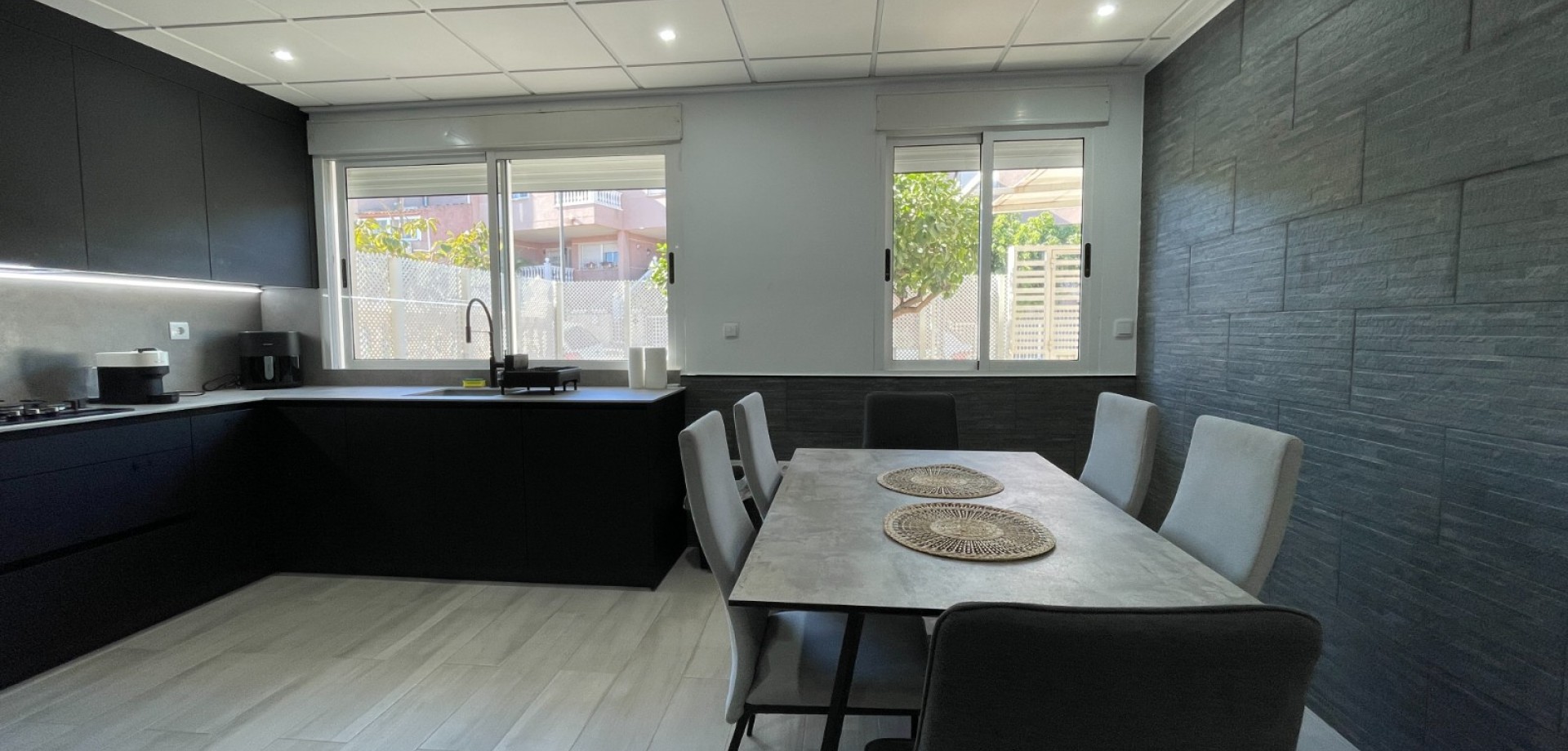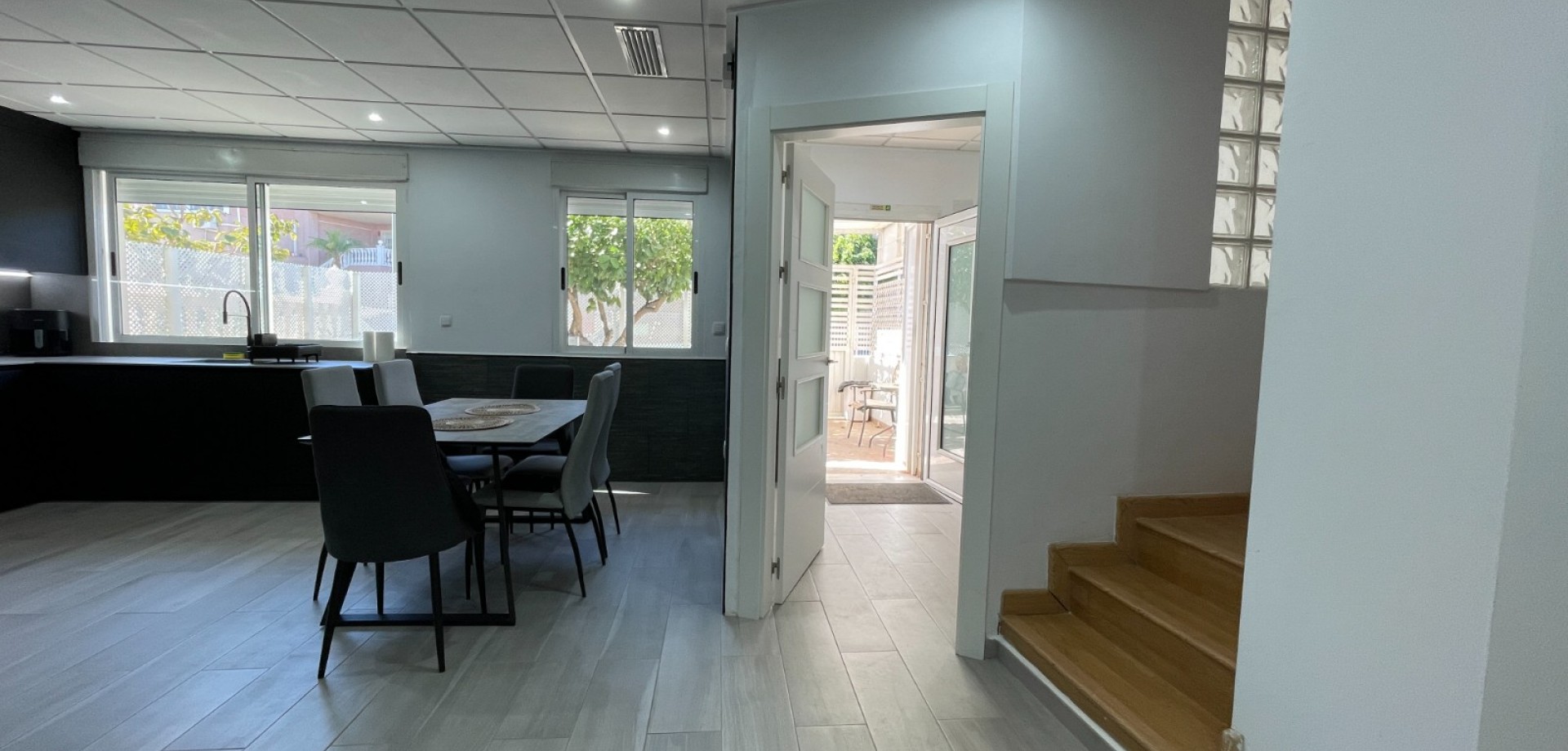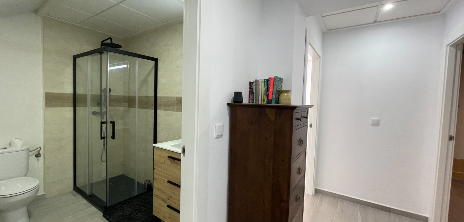 Spacious 5-bedroom family home in the heart of Algorfa Introducing this exceptional terraced house, beautifully renovated and impressively spacious, located in the charming village of Algorfa. Ideal for families seeking comfort, generous space and proximity to all amenities, it offers the perfect blend of modern living and traditional village character. Upon entering, a welcoming private terrace leads into a bright open-plan living area that combines the lounge, dining room and a contemporary kitchen—perfect for everyday living and entertaining. The main floor also includes two large double bedrooms, a stylish bathroom and a generous garage with an automatic door, providing parking and additional storage space. Upstairs, the property continues to impress with three further bedrooms, including an exceptionally large master bedroom, as well as a family bathroom. From this level, there is direct access to the private solarium—an ideal spot to unwind and enjoy panoramic views of the surrounding landscape. The location is outstanding: just a short walk from the medical centre, school, shops, bars, restaurants and all essential services. The municipal swimming pool is also within easy reach. With its generous proportions, recent renovation and unbeatable location, this property offers both an exceptional family home and a great investment opportunity in one of Costa Blanca's most sought-after villages.