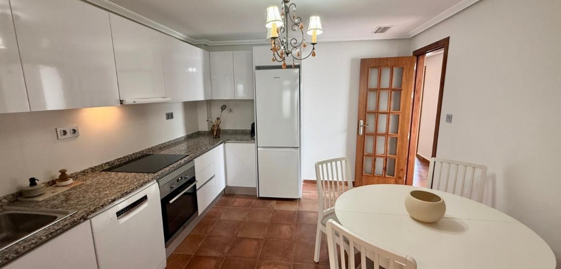 This beautiful and bright apartment measures 121 m² and consists of three bedrooms, two of which have direct access to balconies, and two bathrooms. Additionally, there is a spacious and light-filled living room with a dining area and access to large balconies, creating a cozy and open space. The kitchen is both large and fully equipped, with ample cupboard space and a functional work area. The apartment also includes a separate laundry room with extra storage, making daily life even more convenient. There is also a lovely terrace within the apartment, offering a relaxing outdoor area to enjoy sunny days and mild evenings. Furniture is included with the purchase. When buying the property, you have the option to choose whether it comes with a parking space in the underground garage or without, depending on your preference. The apartment also provides access to a shared rooftop terrace, where you have your own private relaxation area – a perfect spot to enjoy beautiful views of the Spanish town and soak up the sun. Additionally, the Zenia Boulevard shopping center is nearby, offering over 80,000 m² of retail space with a wide variety of shops and restaurants. The Torrevieja University Hospital, one of the top hospitals in the area, is just about a 15-minute drive away. If golf is your passion, you are in the right place – within an 8 km radius there are four 18-hole golf courses: Villamartín, Real Club de Golf Campoamor, Las Ramblas, and the award-winning Las Colinas Golf. For sun-lovers, vast sandy beaches are just a few minutes away, all with the Blue Flag – a symbol of first-class facilities, clean sand, and quality seawater. Do not hesitate to contact us for further information about this unique property!