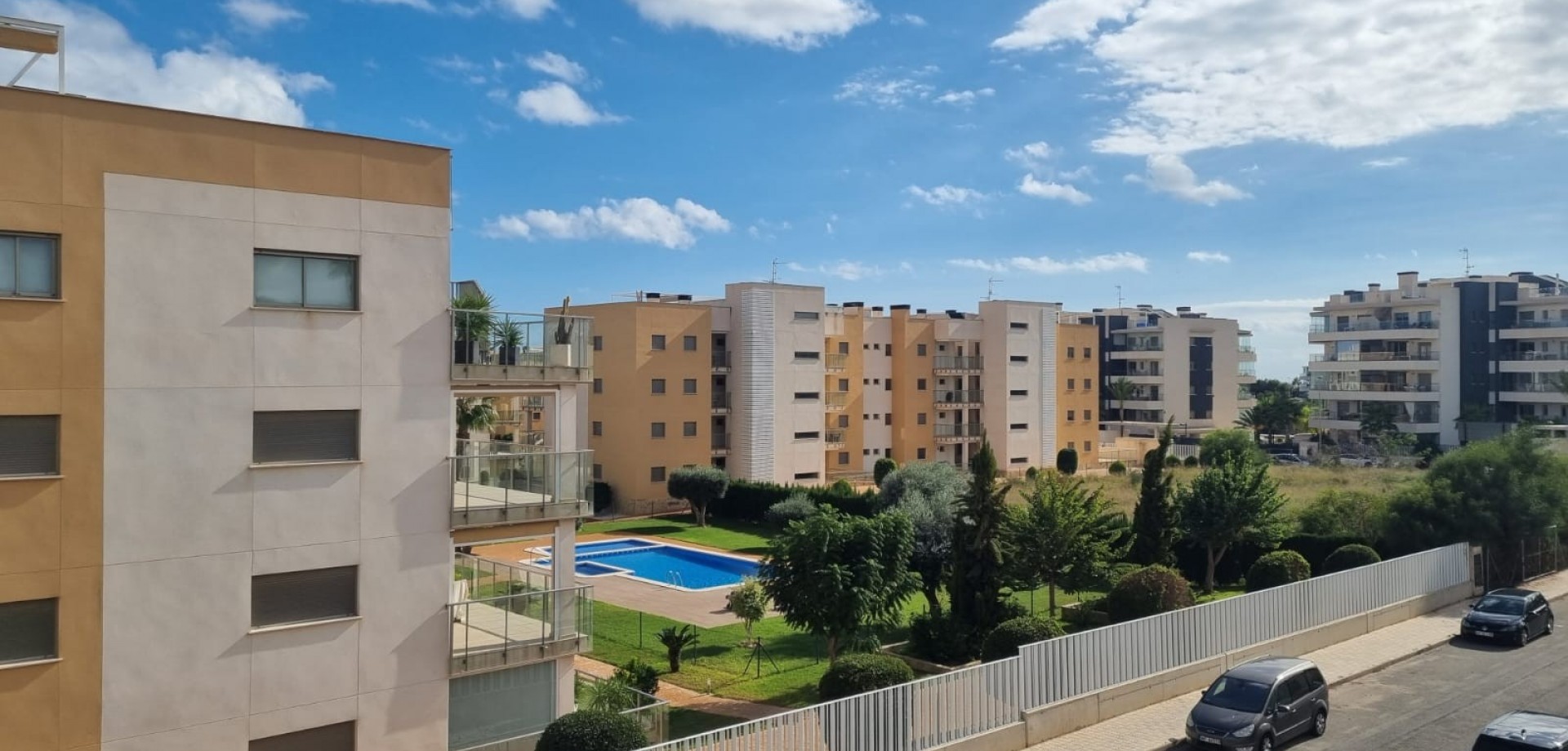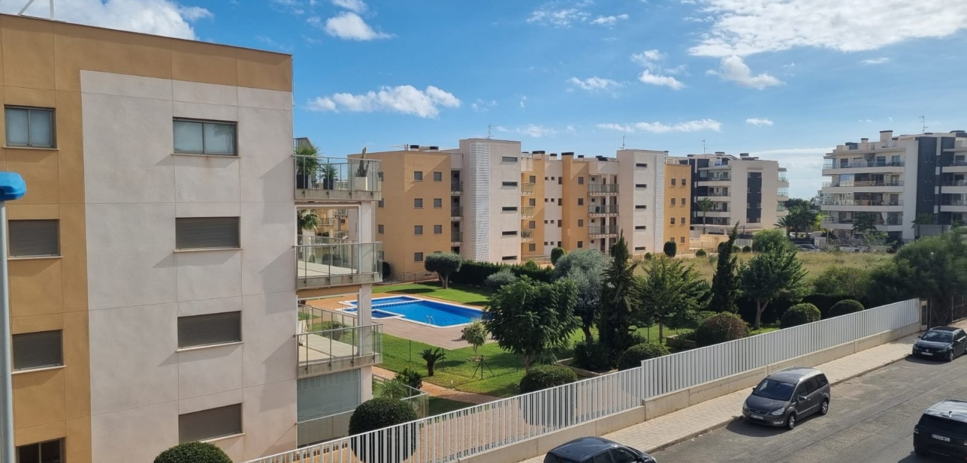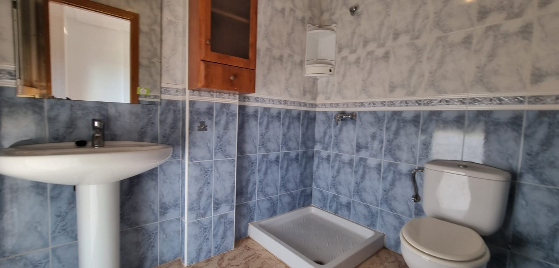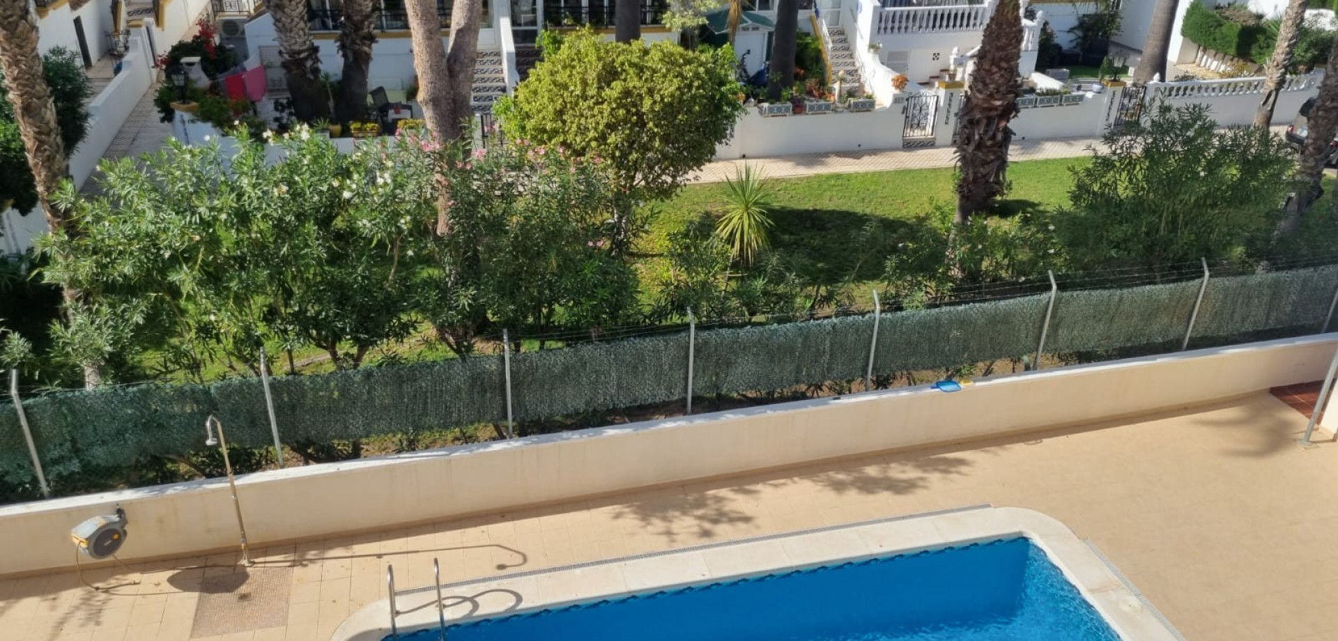 Charming 3-Bedroom Townhouse in Los Dolses – South-Facing & Move-In Ready! This charming south-facing townhouse in C/ Cilantro (Los Dolses) is the perfect home for anyone looking for comfort, natural light, and a true Mediterranean feel. On the ground floor, you’ll find a bright living and dining area, a semi-open kitchen with access to the rear terrace, and a convenient guest toilet. At the front of the property there is a spacious 25 m² terrace with room for parking. The first floor offers two bedrooms: the master bedroom features an en-suite bathroom and walk-in wardrobe, while the second bedroom has its own terrace overlooking the communal pool. Two modern bathrooms are also located on this level. The second floor leads to a beautiful private 35 m² solarium, ideal for sunbathing, relaxing, or enjoying outdoor dining. The property is part of a well-maintained residential complex with a communal swimming pool and has a total built area of 90 m². The annual IBI is €191.33 and the community fee is €620. This home is ready to move into and perfect for permanent living, holidays, or investment.