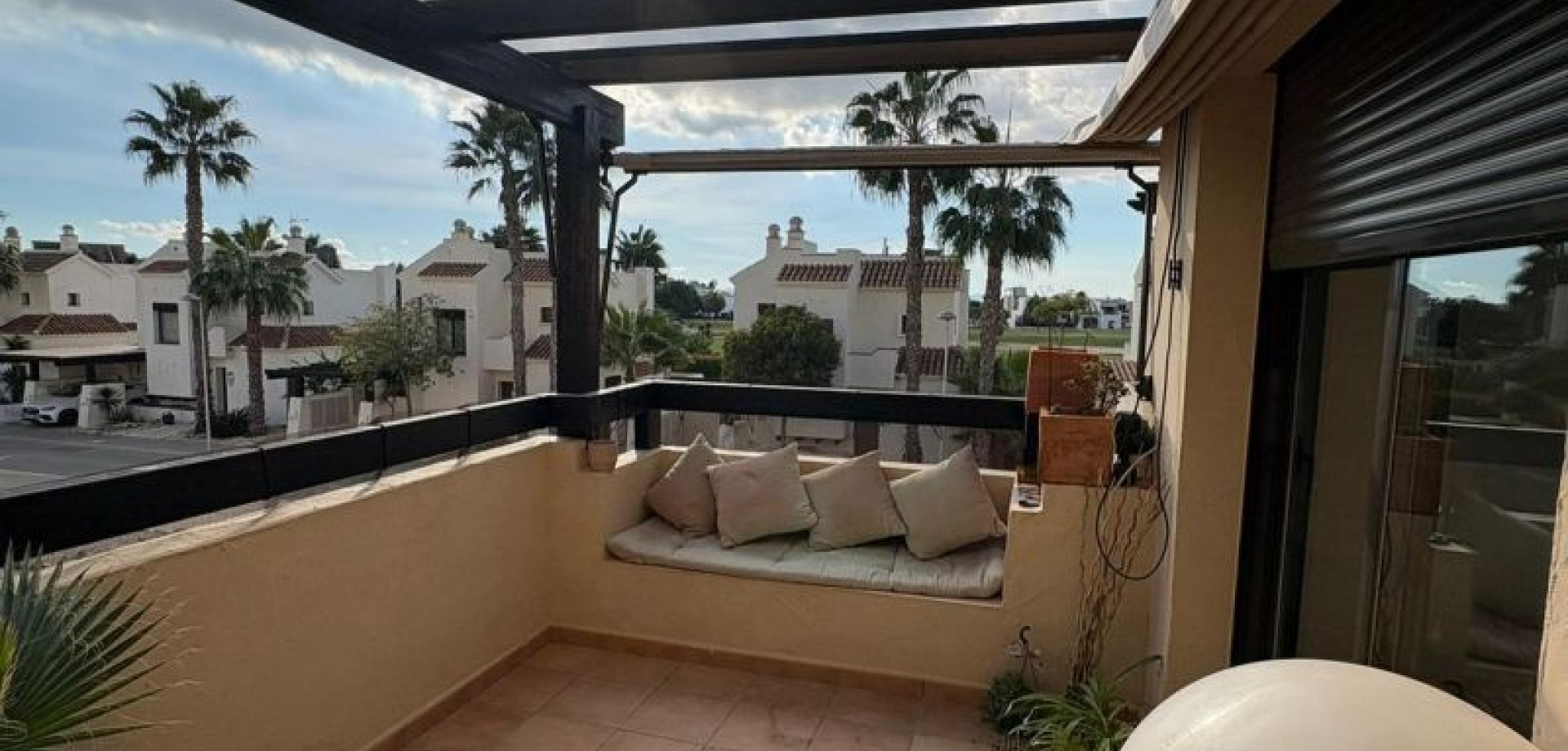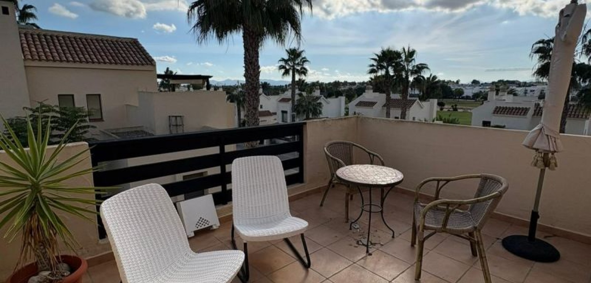 Introducing this exclusive duplex penthouse located in the prestigious Roda Golf, one of the most sought-after residential complexes in the area. Set frontline to green areas and the communal pool, this home offers brightness, privacy and a luxury environment surrounded by nature. PRIVATE GATED COMMUNITY WITH 24H SECURITY Live with complete peace of mind in a gated urbanisation with 24-hour security, extensive gardens, swimming pools and the renowned golf course just steps away. Perfect both as a full-time residence or a premium holiday home. THE PROPERTY This duplex penthouse offers everything you need: 2 bright and spacious bedrooms 2 modern full bathrooms Living-dining room with access to a terrace with open views Fully equipped kitchen Private solarium on the upper floor, ideal for sunbathing, creating a chill-out area or enjoying outdoor dinners Private parking space and a storage room included A SETTING OF PEACE AND QUALITY OF LIFE Located in one of the best spots in the complex, right in front of the green areas and the pool, offering a relaxing and open atmosphere. Ideal for golf lovers, nature enthusiasts and anyone seeking Mediterranean living in an exclusive, secure environment.