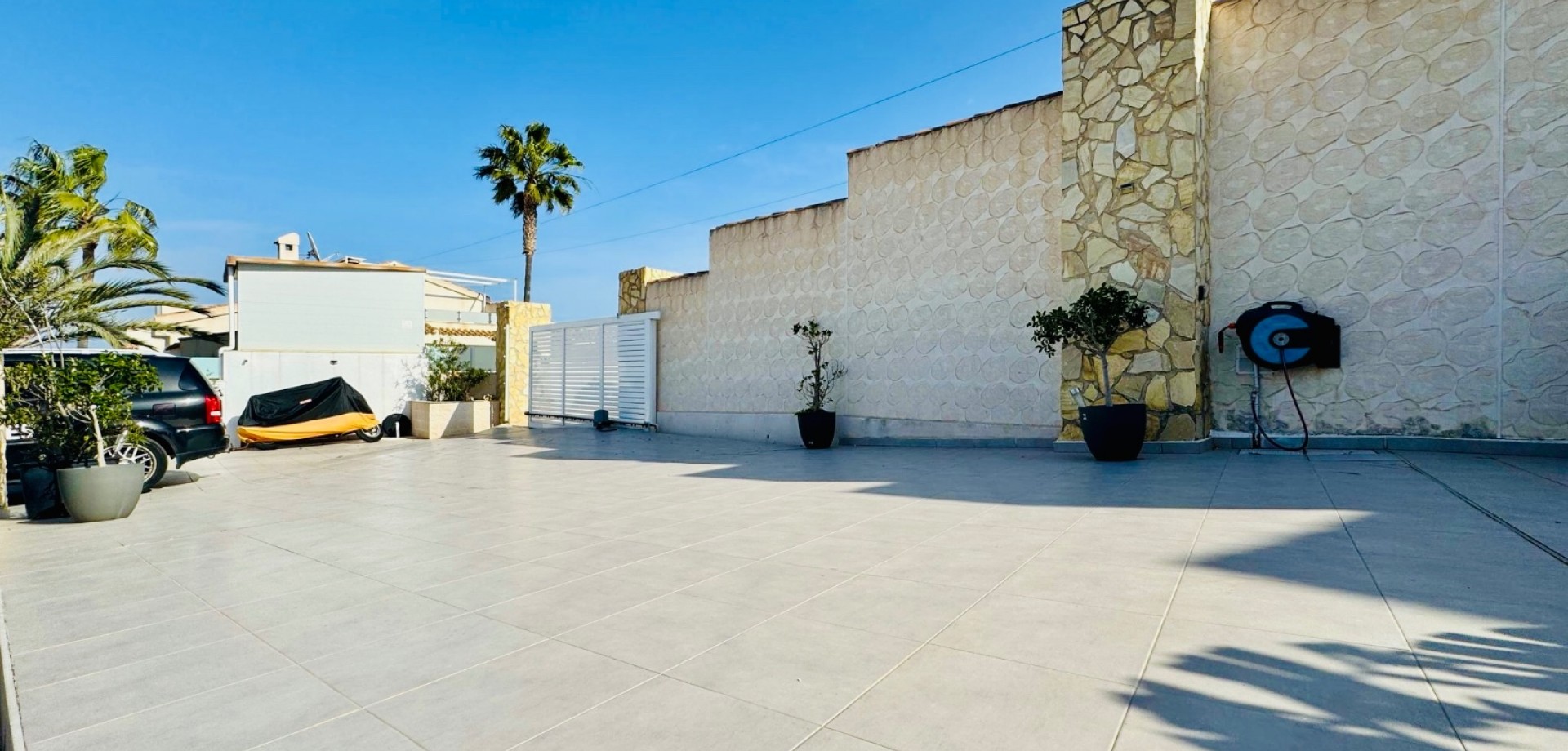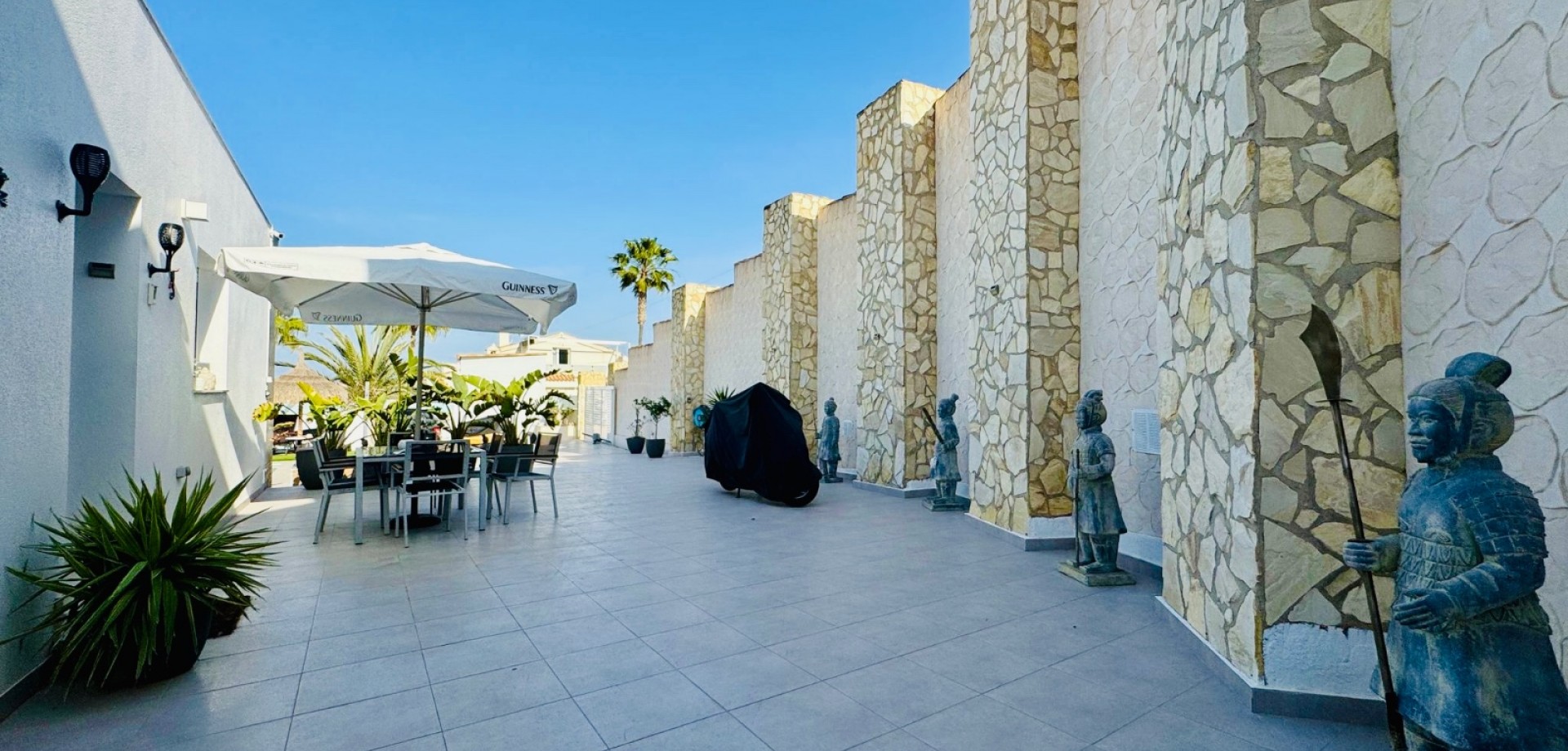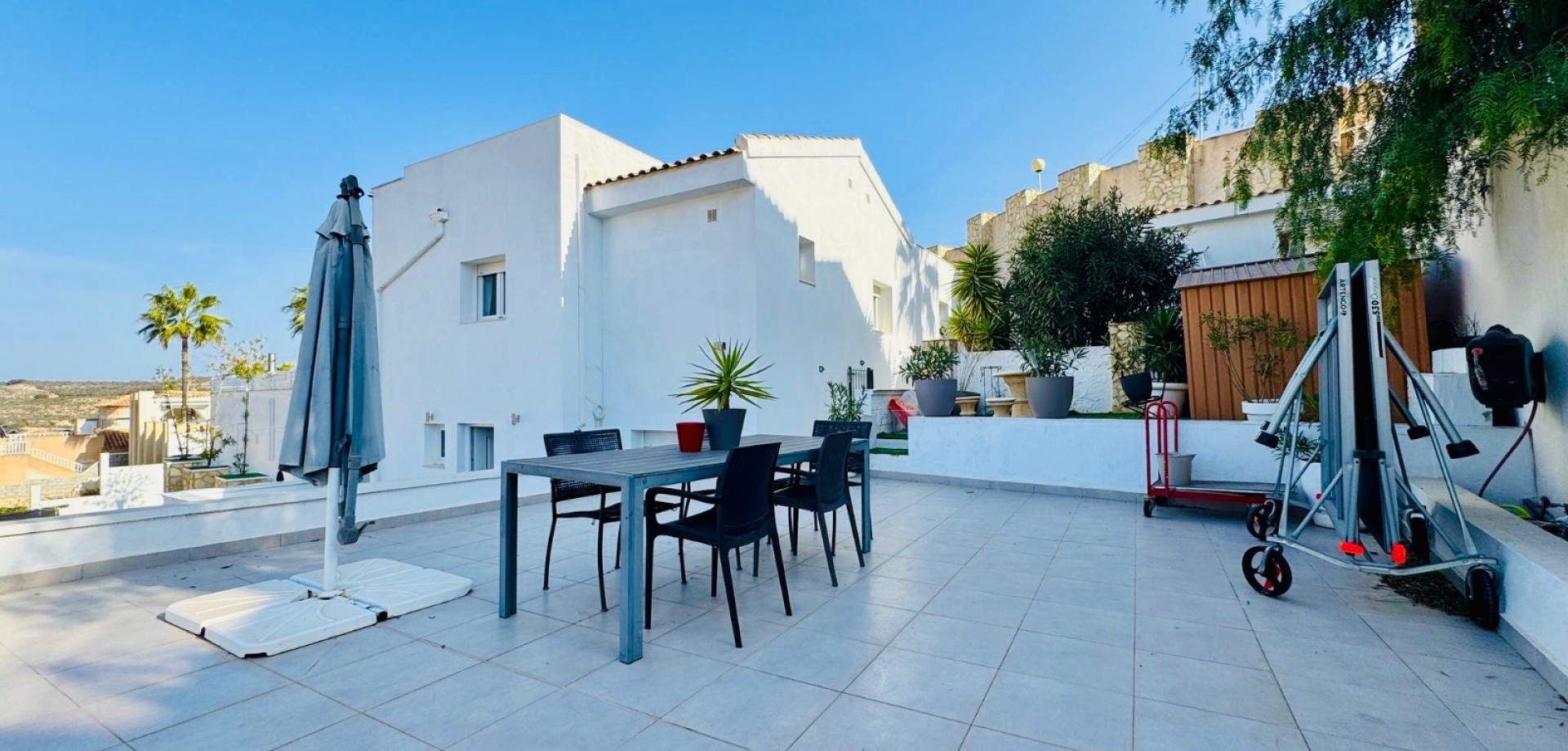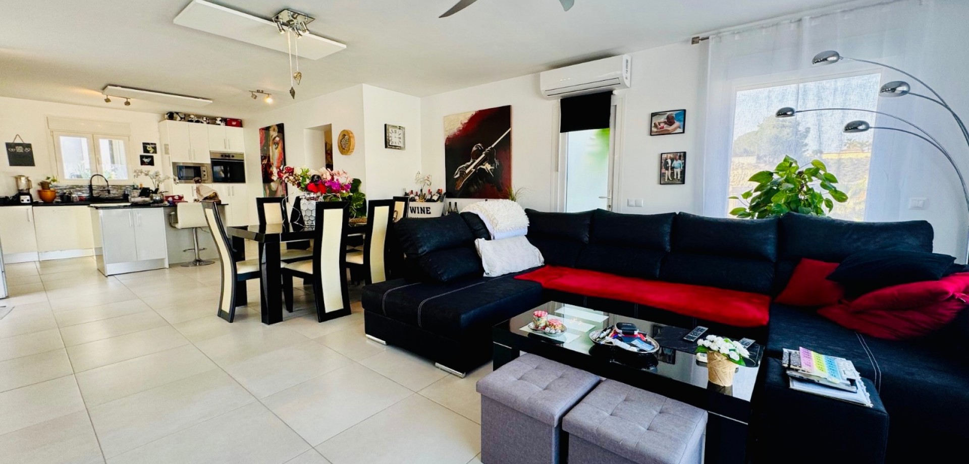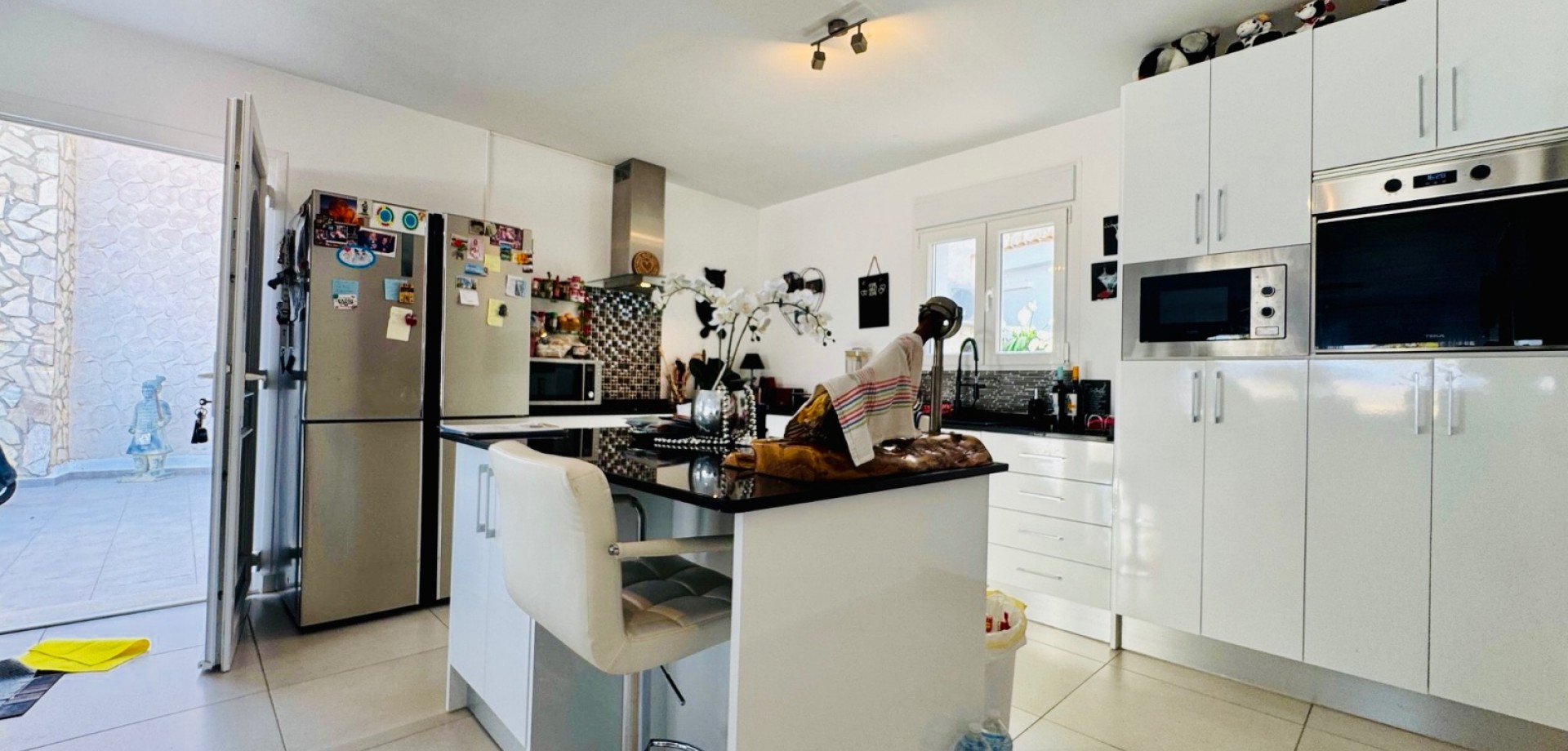 Discover this stunning 215m² premium villa, set on a 1,080m² plot in the prestigious La Marquesa Golf area. With elegant design and spacious interiors, this property offers the perfect combination of comfort, privacy, and exclusivity. Layout: Main floor: Spacious open-plan living and dining area, fully equipped kitchen, one full bathroom, one bedroom with an ensuite, and a master bedroom at the end of the hallway.Lower level: Large living space, independent kitchen, a spacious bedroom, and a full bathroom. Ideal as a separate apartment or for holiday rentals.Guest house: Located at the back of the property, featuring one bedroom and an ensuite bathroom.Second guest house/office: A separate living space with a living room, kitchen, one bedroom, and an ensuite bathroom. Outdoor Areas: Private pool with integrated jacuzziLarge 120m² solarium with panoramic viewsSpacious patio with outdoor dining areaFully landscaped garden Located in a quiet and exclusive setting, this villa is ideal as a private residence or as a high-end holiday rental investment. Contact us for more information or to arrange a viewing.