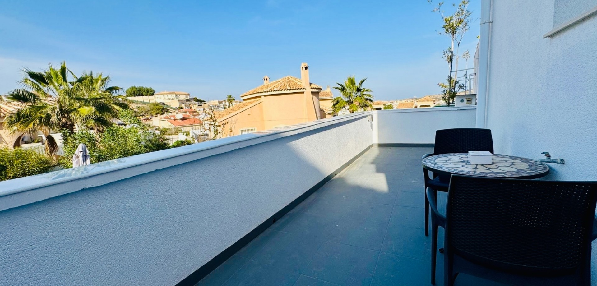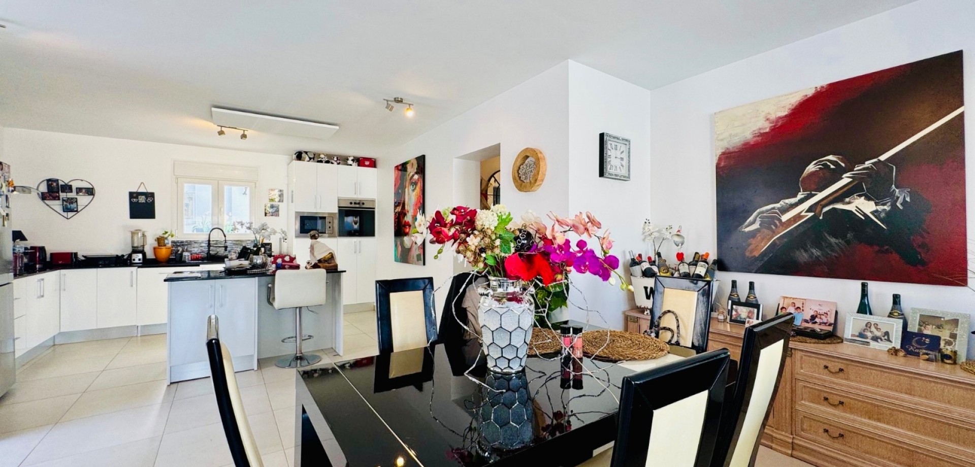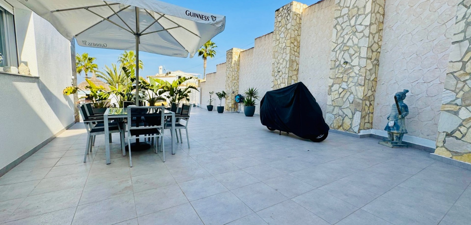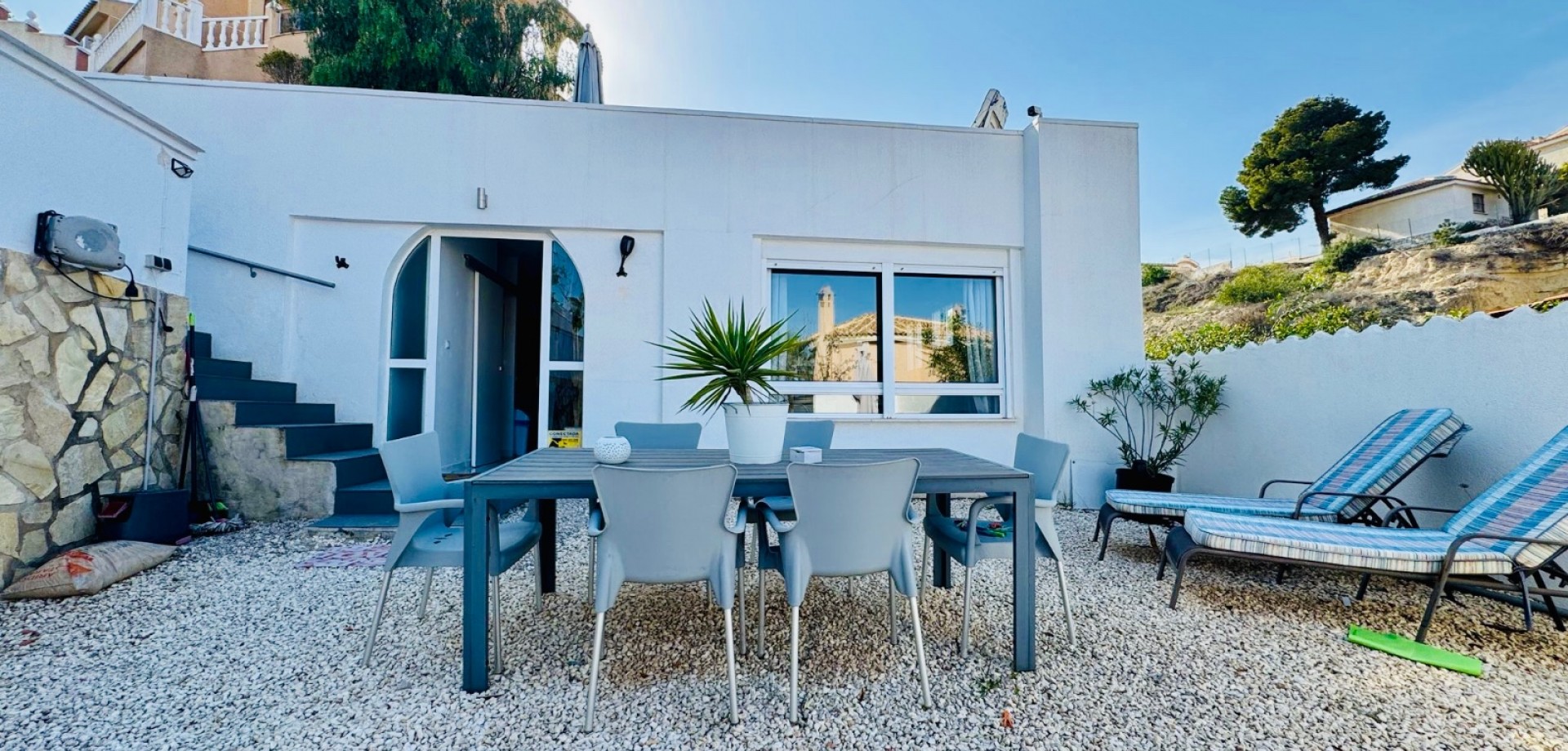 Discover this stunning 215m² premium villa, set on a 1,080m² plot in the prestigious La Marquesa Golf area. With elegant design and spacious interiors, this property offers the perfect combination of comfort, privacy, and exclusivity. Layout: Main floor: Spacious open-plan living and dining area, fully equipped kitchen, one full bathroom, one bedroom with an ensuite, and a master bedroom at the end of the hallway.Lower level: Large living space, independent kitchen, a spacious bedroom, and a full bathroom. Ideal as a separate apartment or for holiday rentals.Guest house: Located at the back of the property, featuring one bedroom and an ensuite bathroom.Second guest house/office: A separate living space with a living room, kitchen, one bedroom, and an ensuite bathroom. Outdoor Areas: Private pool with integrated jacuzziLarge 120m² solarium with panoramic viewsSpacious patio with outdoor dining areaFully landscaped garden Located in a quiet and exclusive setting, this villa is ideal as a private residence or as a high-end holiday rental investment. Contact us for more information or to arrange a viewing.