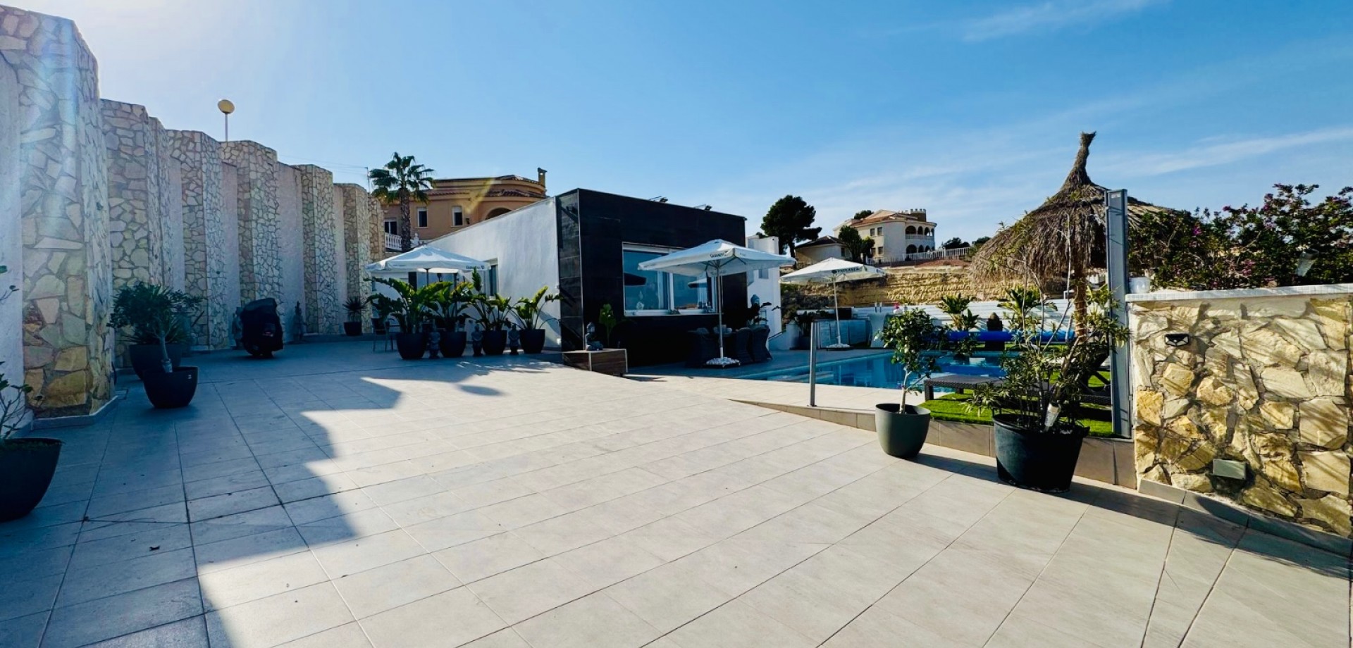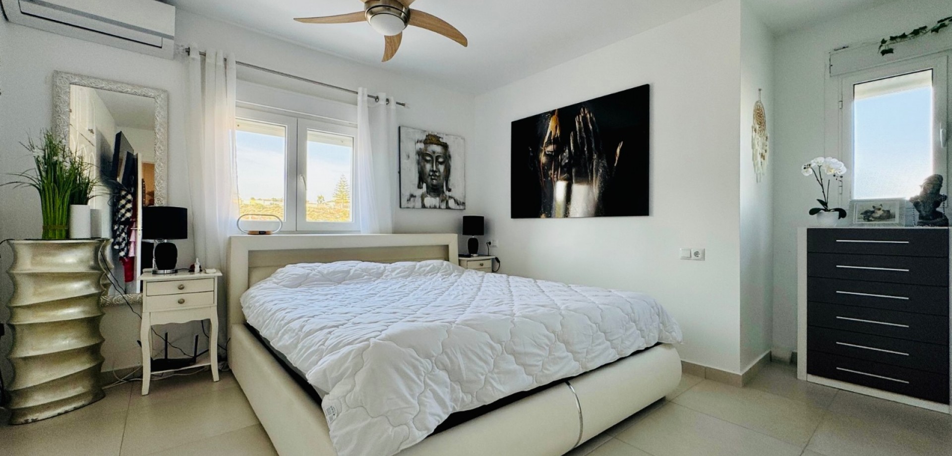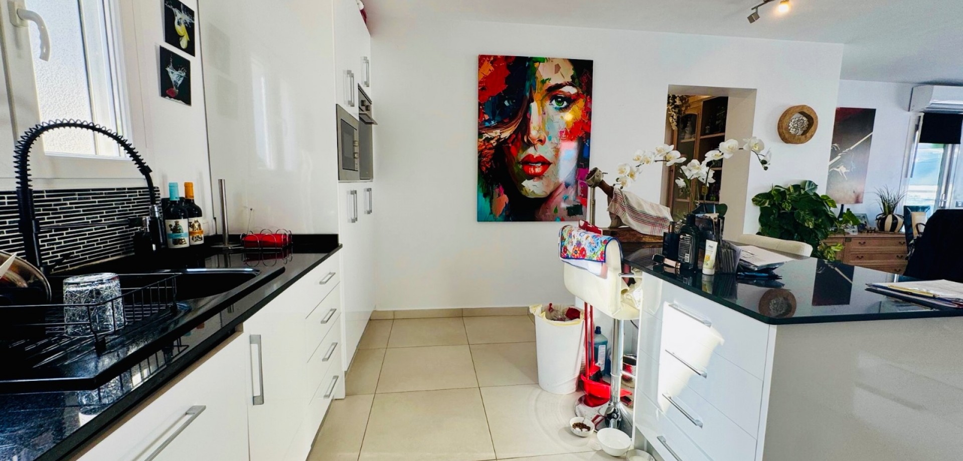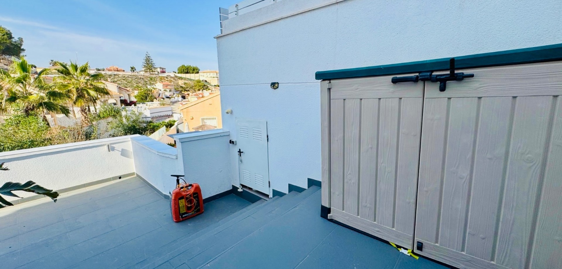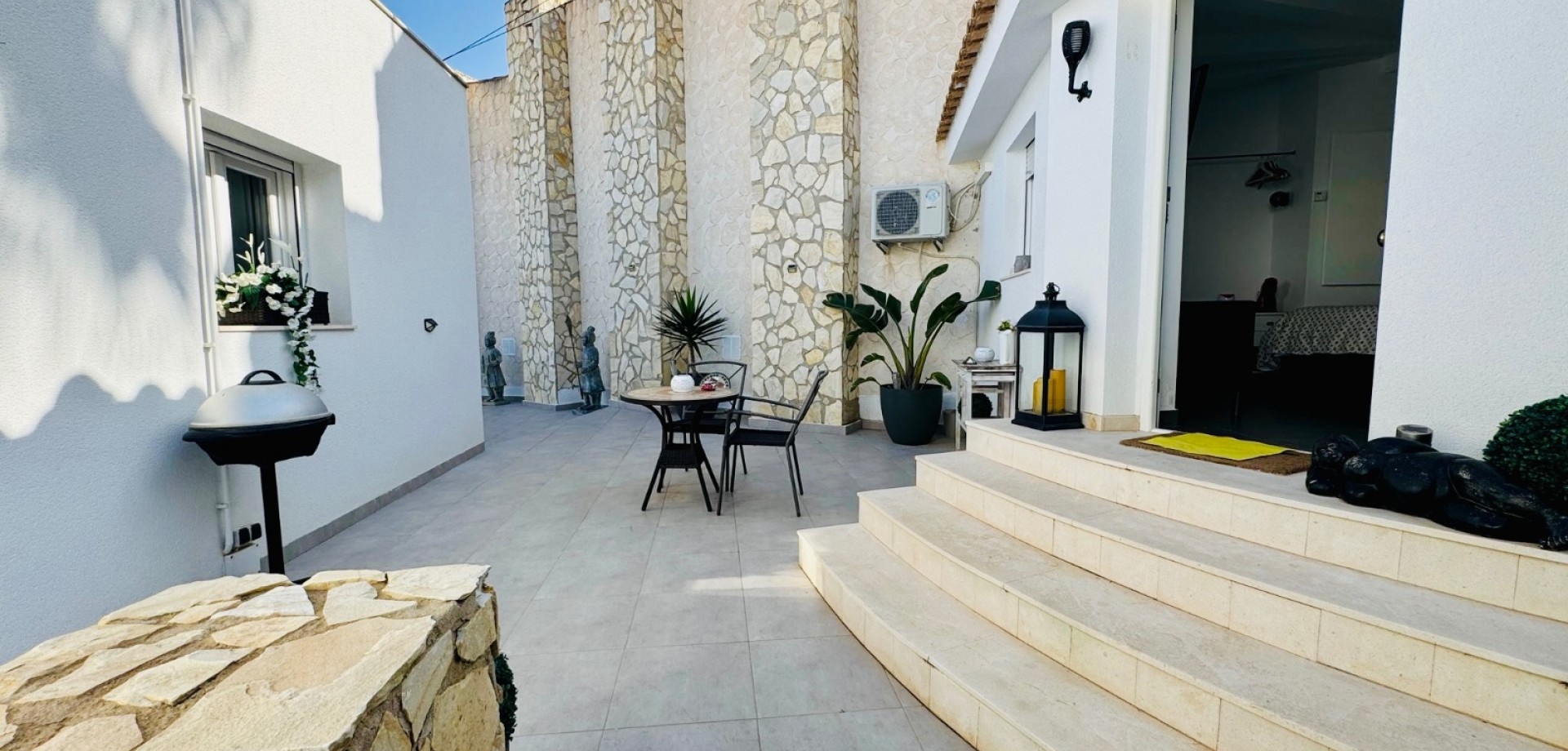 Discover this stunning 215m² premium villa, set on a 1,080m² plot in the prestigious La Marquesa Golf area. With elegant design and spacious interiors, this property offers the perfect combination of comfort, privacy, and exclusivity. Layout: Main floor: Spacious open-plan living and dining area, fully equipped kitchen, one full bathroom, one bedroom with an ensuite, and a master bedroom at the end of the hallway.Lower level: Large living space, independent kitchen, a spacious bedroom, and a full bathroom. Ideal as a separate apartment or for holiday rentals.Guest house: Located at the back of the property, featuring one bedroom and an ensuite bathroom.Second guest house/office: A separate living space with a living room, kitchen, one bedroom, and an ensuite bathroom. Outdoor Areas: Private pool with integrated jacuzziLarge 120m² solarium with panoramic viewsSpacious patio with outdoor dining areaFully landscaped garden Located in a quiet and exclusive setting, this villa is ideal as a private residence or as a high-end holiday rental investment. Contact us for more information or to arrange a viewing.