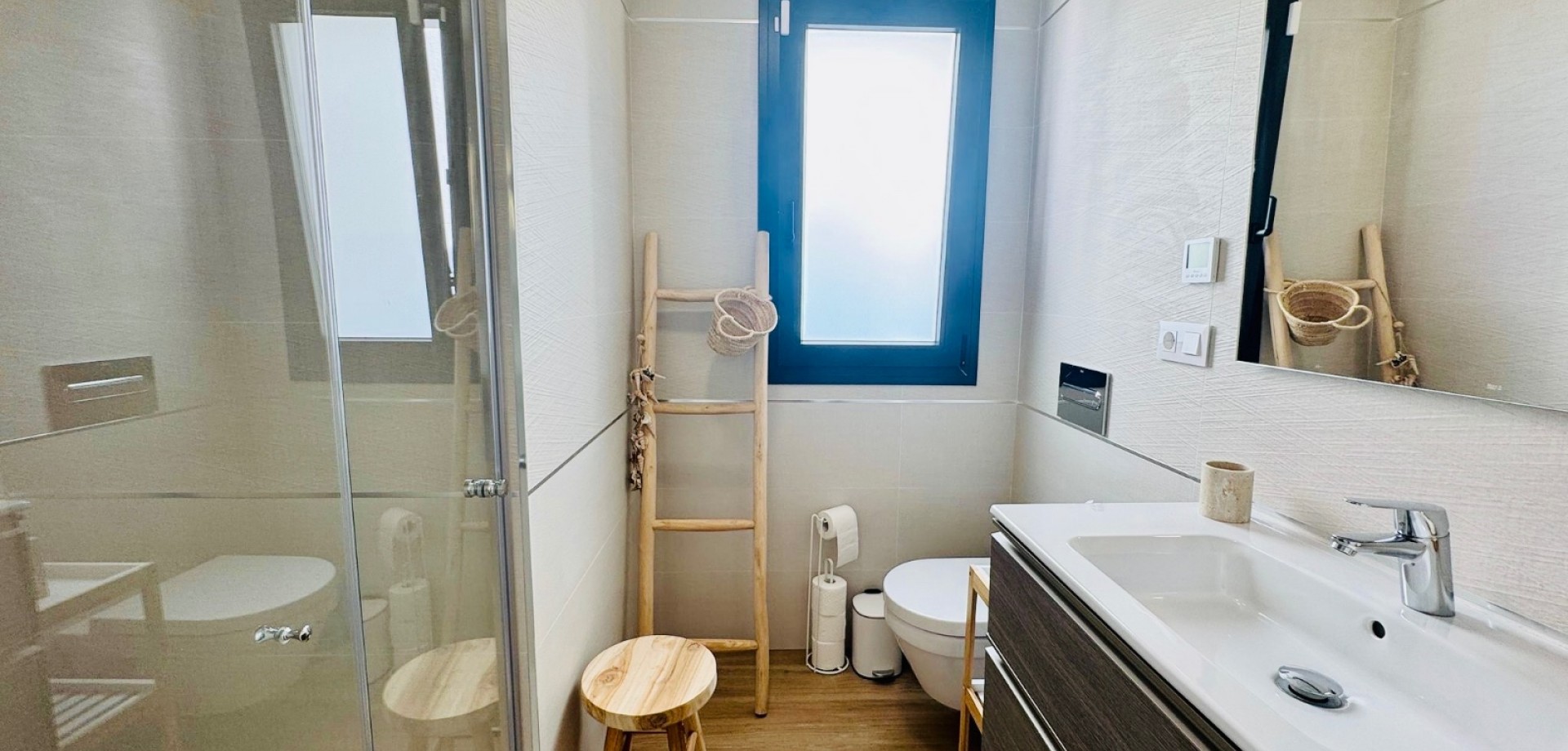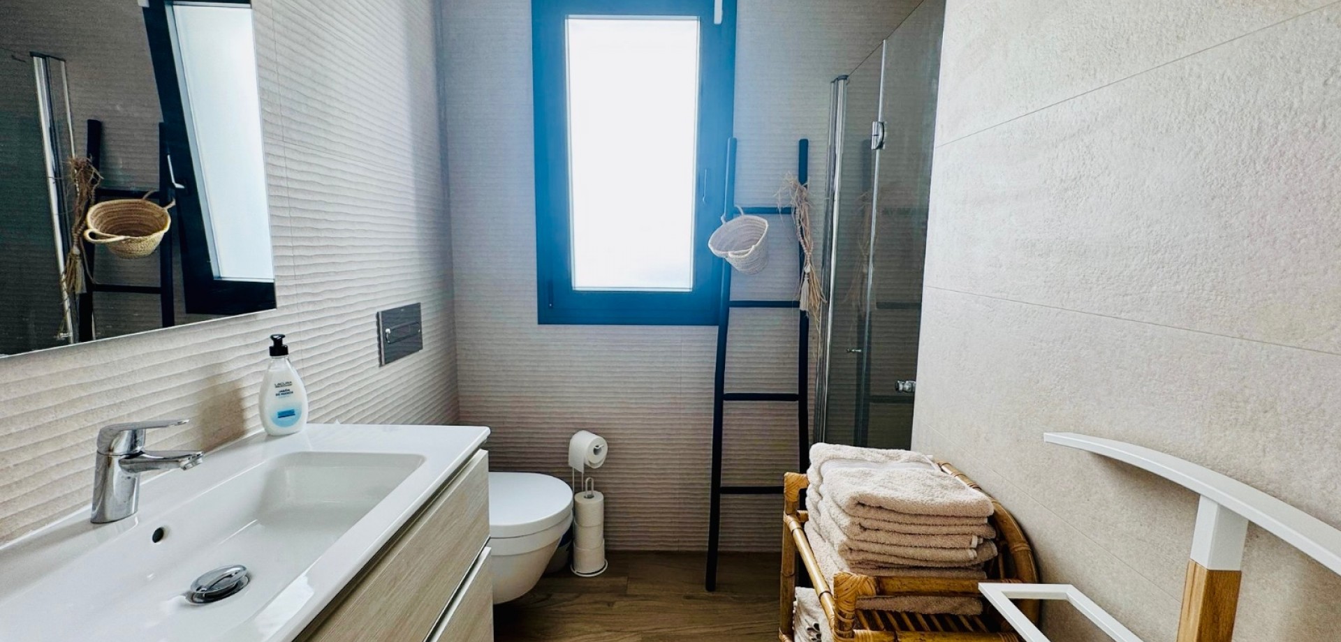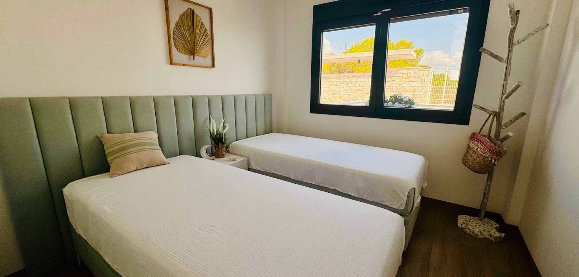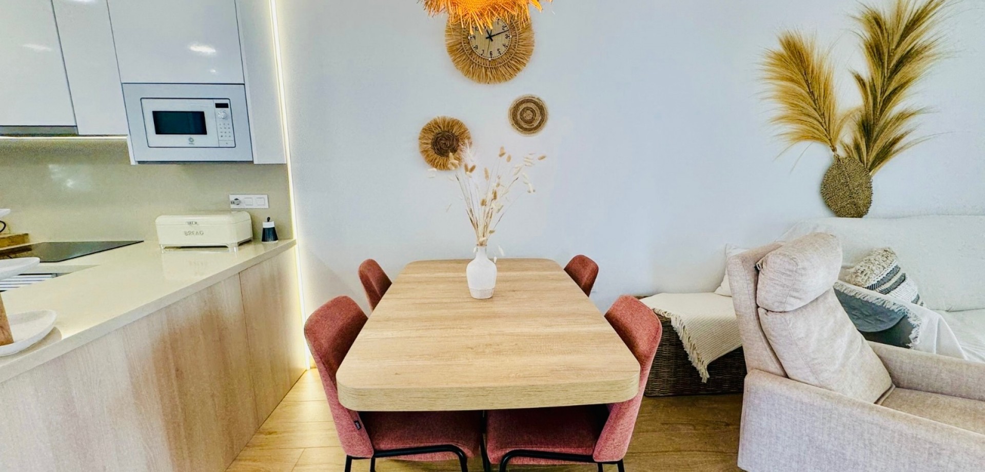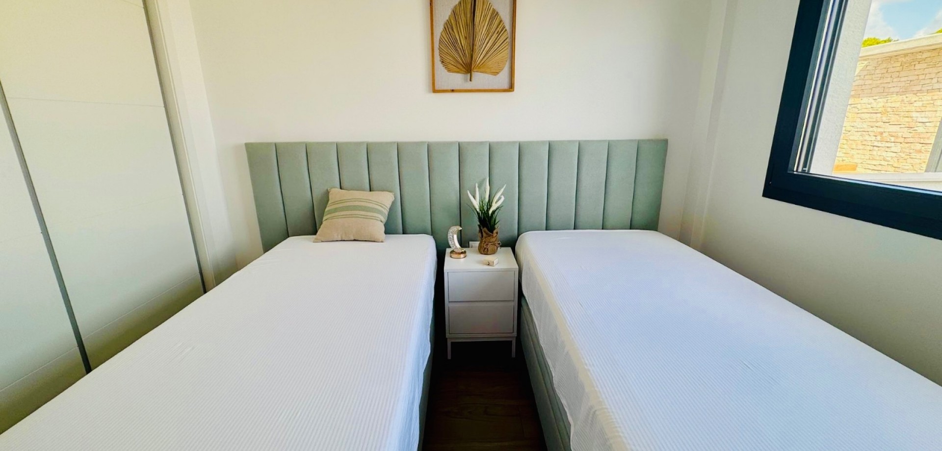 Bright South-Facing Corner Apartment with Salt Lake Views This beautifully maintained corner apartment is perfectly positioned to enjoy sunlight all year round—especially during the winter months. With its generous, south-facing terraces, residents can enjoy both sun and shade throughout the day, making it the ideal spot for relaxing or entertaining outdoors. Located in a highly accessible area with no stairs and just 12 steps from the garage to the entrance, the apartment is both convenient and comfortable. Inside, you’ll find naturally ventilated bathrooms with windows, an integrated alarm system for peace of mind, and a brand-new awning offering extra shade on sunny days. One of the standout features is the rear terrace, which boasts tranquil views of the iconic salt lakes—a serene backdrop to your daily life. As a corner unit, this apartment benefits from additional privacy, light, and space, and its original purchase price was higher than standard units in the development. With low community fees of just €40 per month and annual property tax of approximately €400, this property is not only stunning but cost-efficient too.
