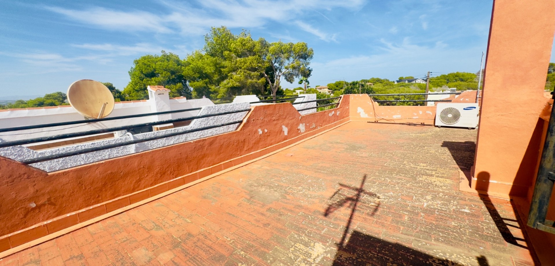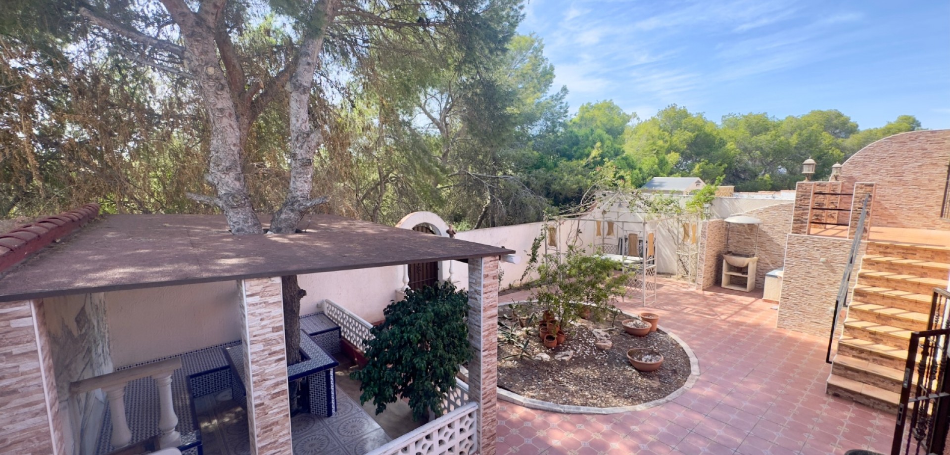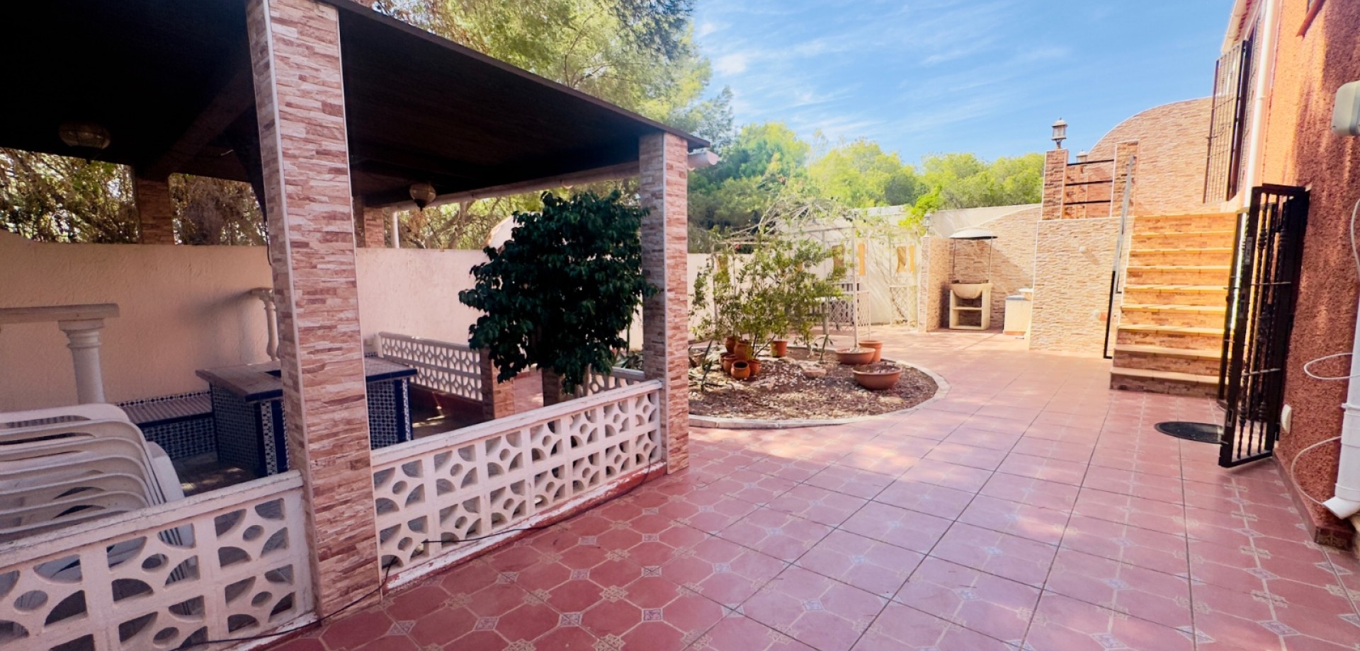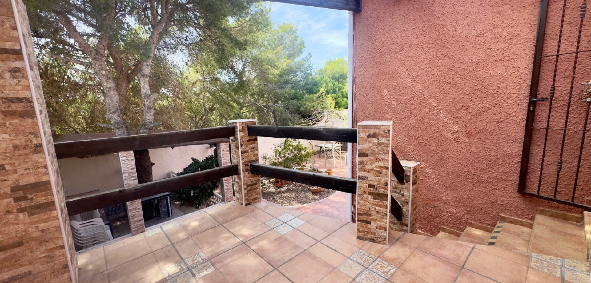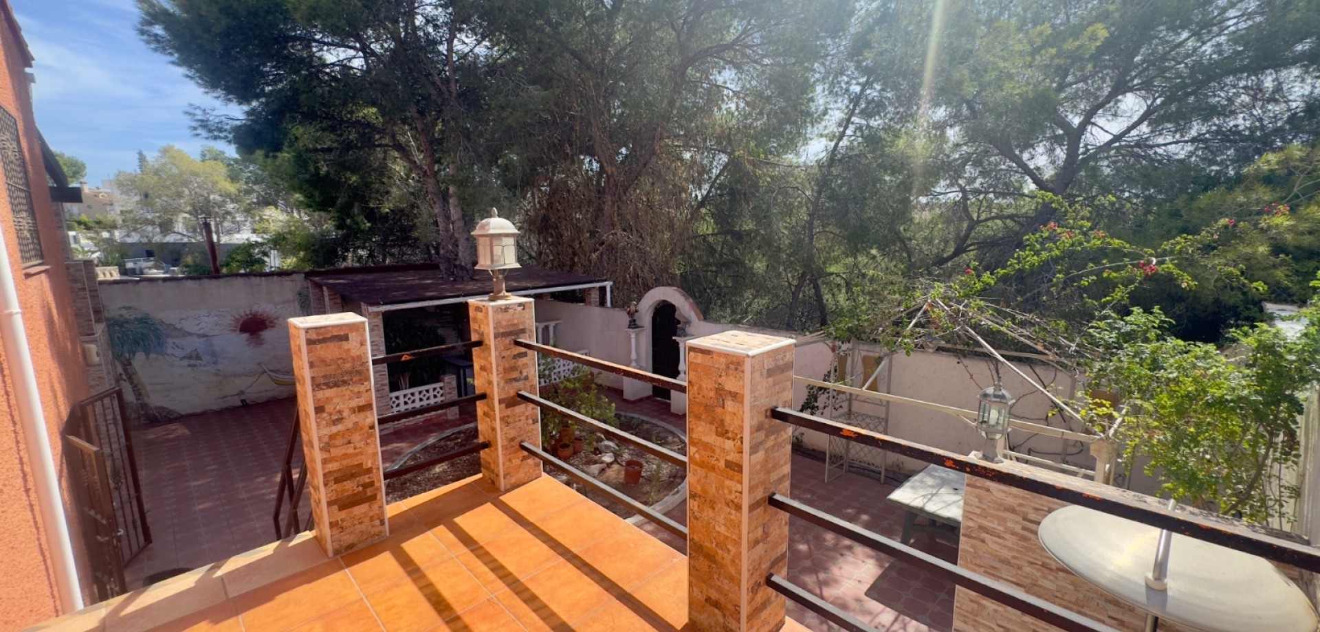 Discover this beautifully presented villa in the sought-after Los Balcones, with a generous 600 m² plot and 98 m² house offering comfort and style. Inside, you’ll find 3 bedrooms, 3 bathrooms, and a fully furnished interior that's ready to enjoy. The lower level includes a separate guest apartment with its own bedroom and spacious bathroom/shower, opening directly onto the back garden—perfect for family or visitors. Outdoors, there’s a 6×3 m private pool, a BBQ area, and direct access via the garden to the forest—ideal for outdoor enthusiasts. Key Features: Spacious 600 m² plot with private parking 98 m² house: 3 bedrooms, 3 bathrooms Fully furnished and equipped Independent guest apartment in the underbuild with direct garden access Private pool with outdoor shower BBQ and outdoor entertainment area Garden gate opening directly into the forest Tourist licence in place Located in a peaceful yet convenient setting, this villa offers a rare blend of privacy, nature, and easy access to shops, amenities, and beaches. Ideal as a family home, holiday retreat, or high-demand rental investment.