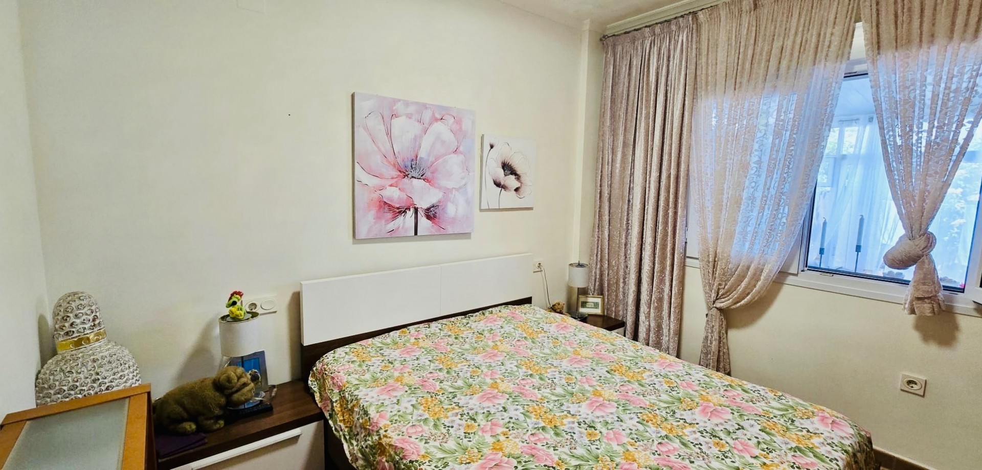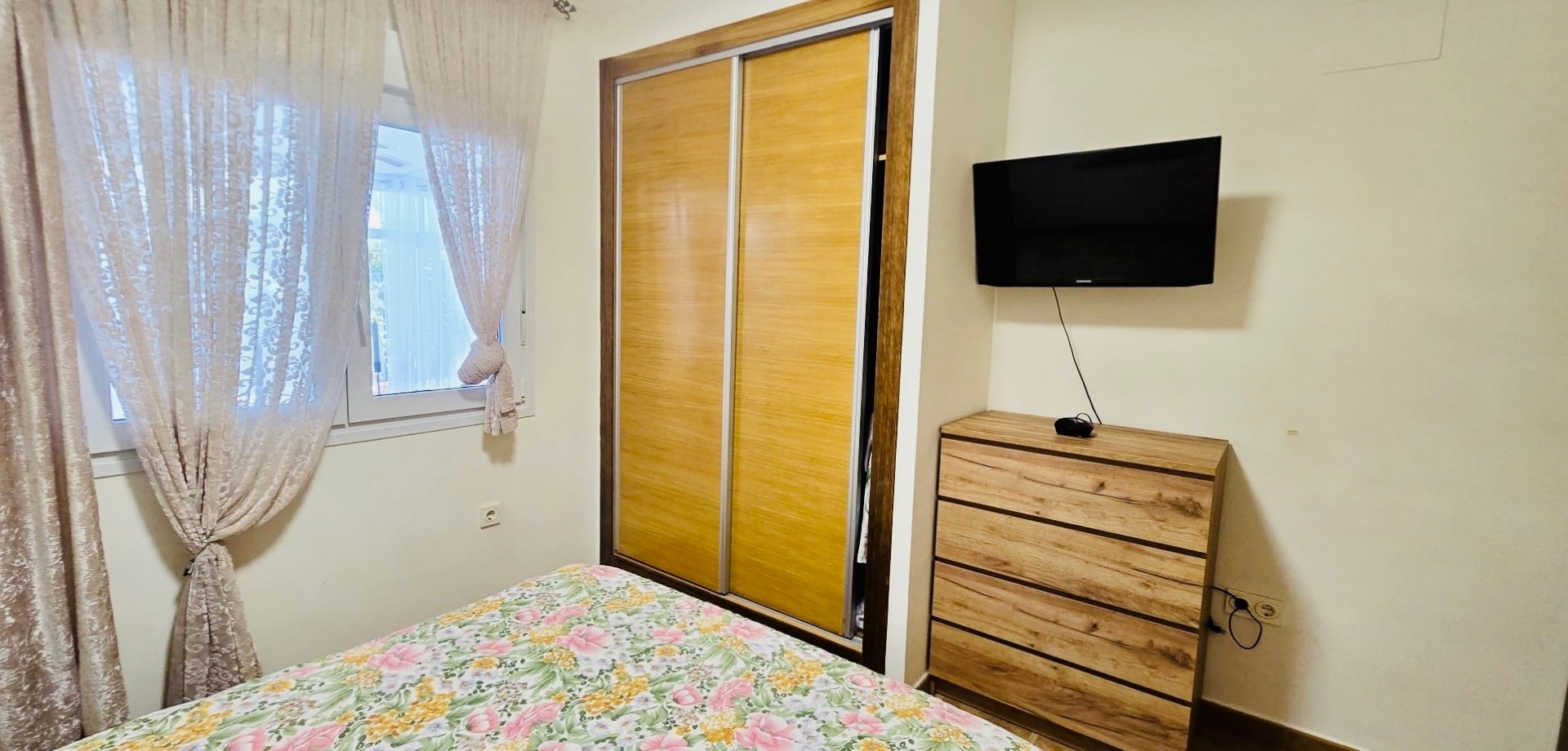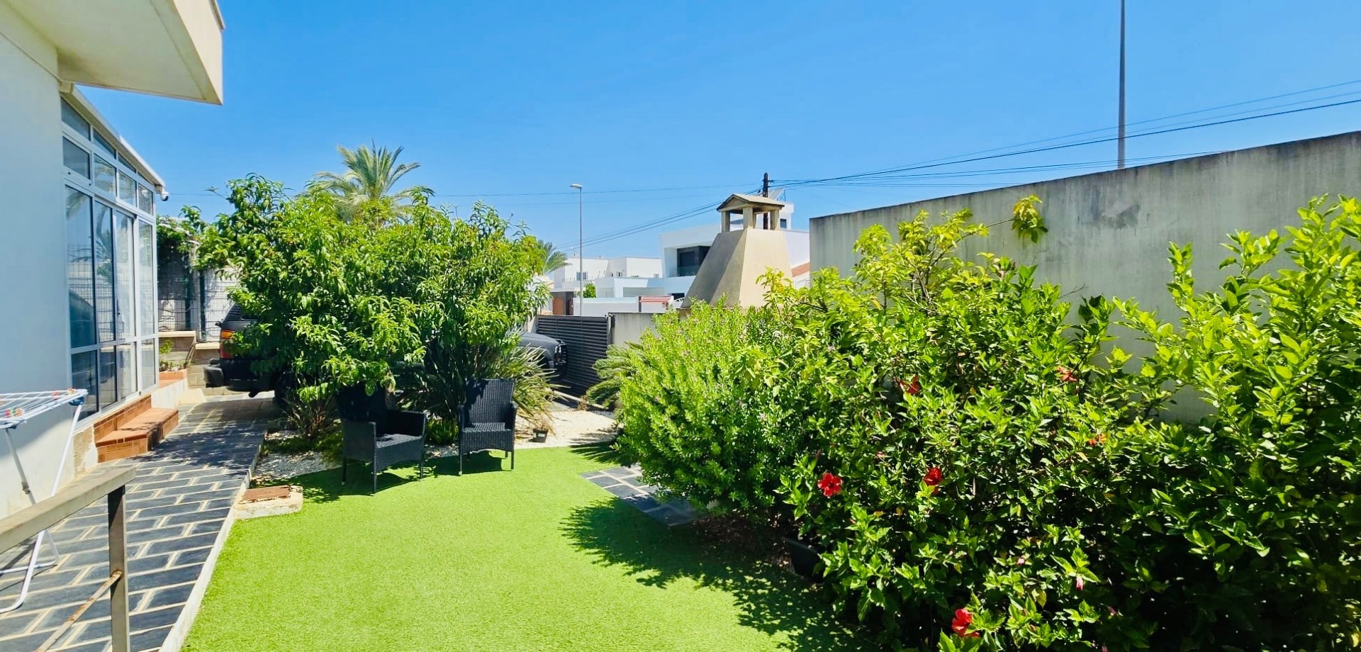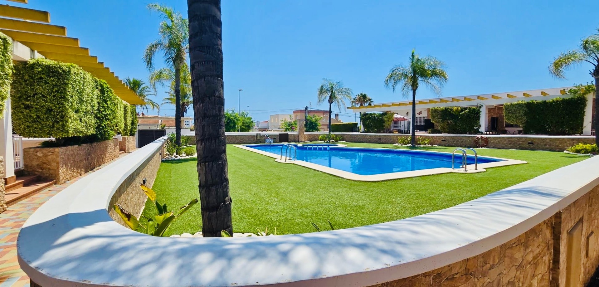 This beautiful one-level townhouse is for sale in one of the most peaceful and sought-after areas, just 800 meters from the sea. It's the perfect option for a permanent residence, holiday home, or as a high-potential rental investment. With 80 m² of built area (70 m² usable) on a spacious 215 m² plot, the property offers a functional layout and is in excellent condition. It features 2 bedrooms with built-in wardrobes, 1 full bathroom, an independent kitchen, and a bright living-dining room with direct access to the terrace and private garden – ideal for enjoying the Mediterranean climate all year round. Additional features include ducted air conditioning, a private parking space included in the price, and access to a communal swimming pool, perfect for relaxing in a green, park-filled setting. The property is south-facing, ensuring plenty of natural light. Located in a quiet area yet well connected, with supermarkets, restaurants, pharmacies, public transport, and all daily services within walking distance. The house is free of debts, mortgages, or tenants, making it ready for immediate transfer to the new owner. A unique opportunity to live near the sea, surrounded by nature and peace, without giving up the comfort of nearby urban life.