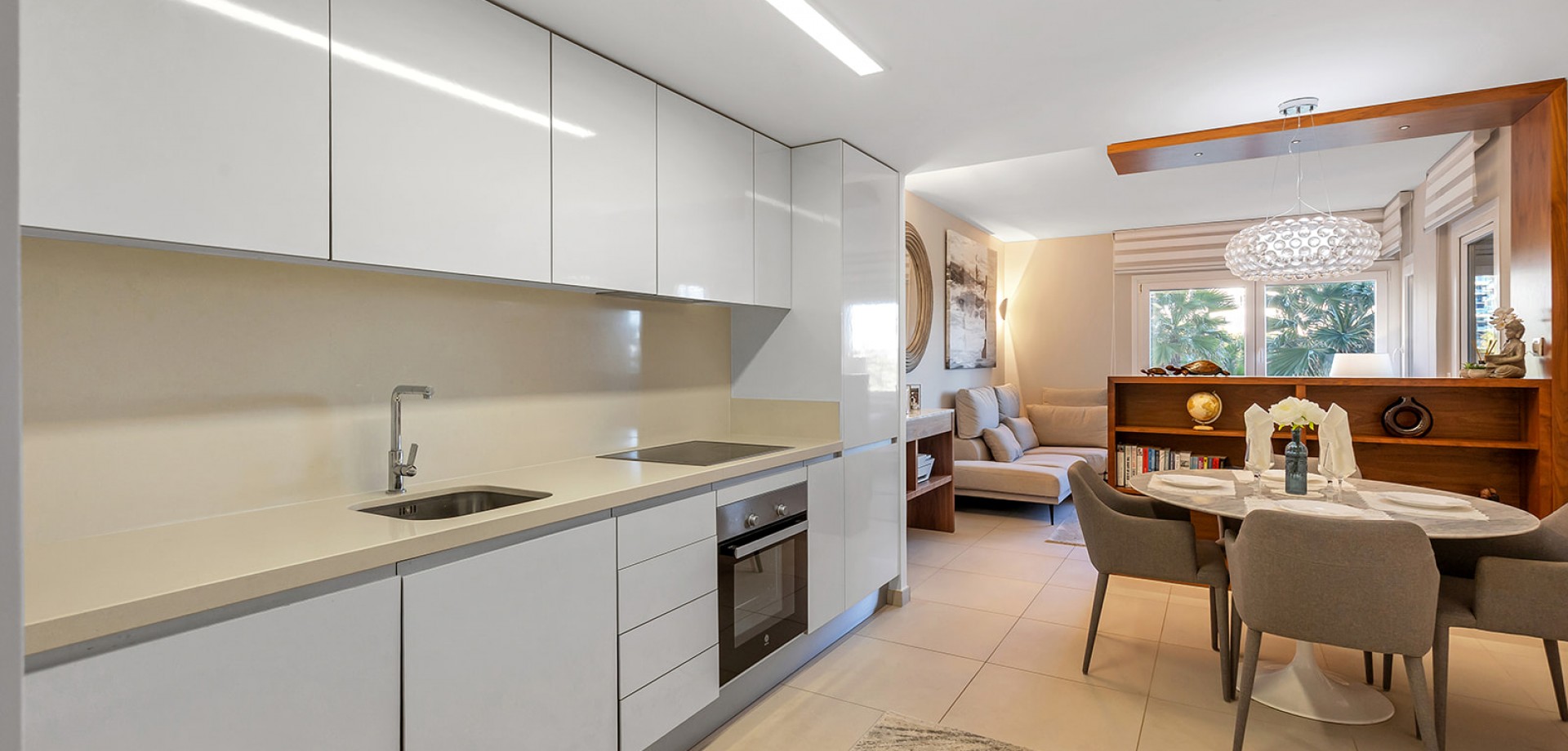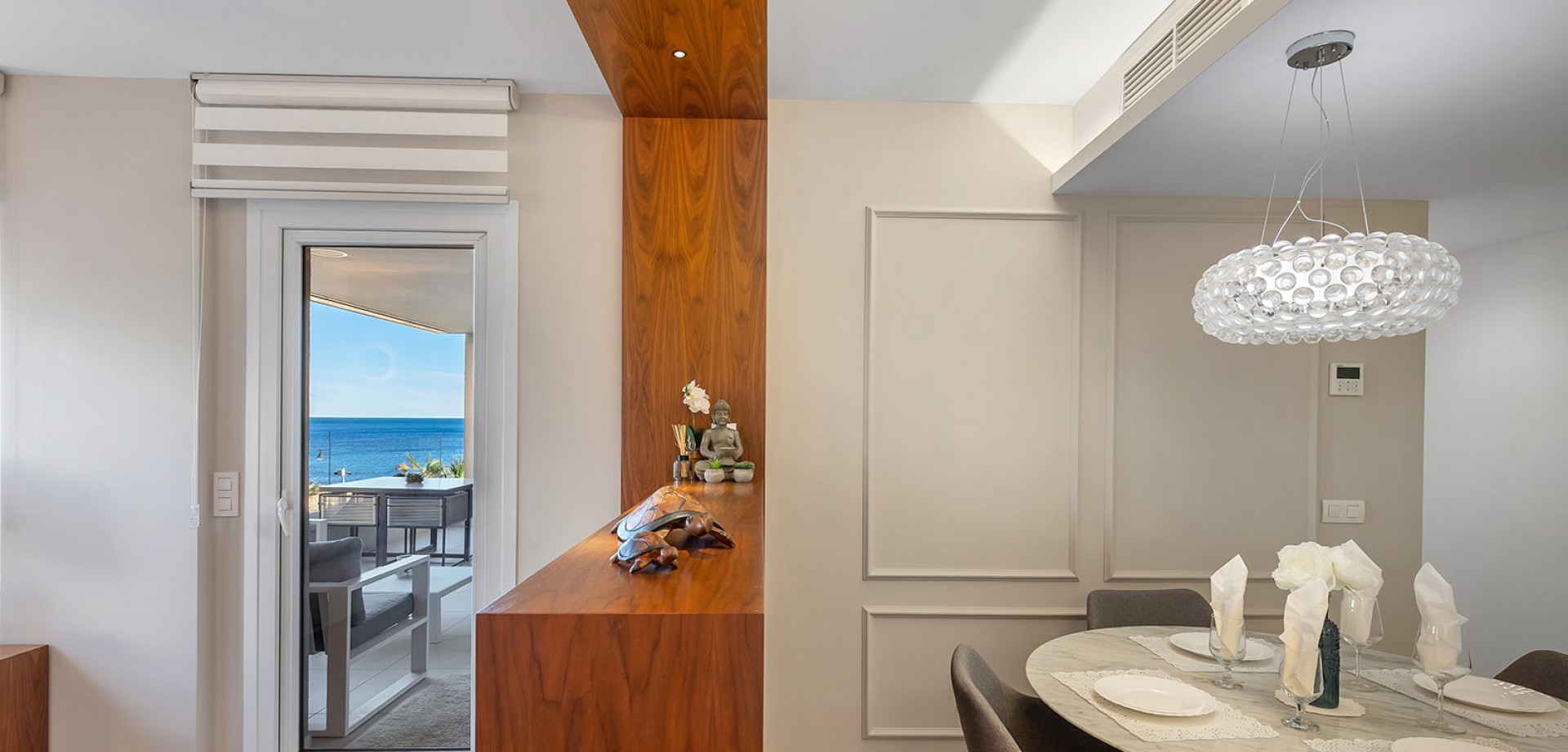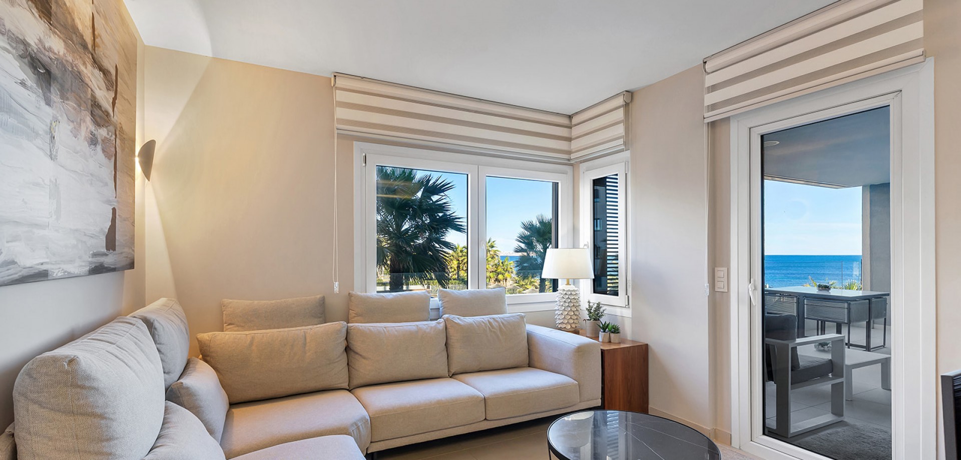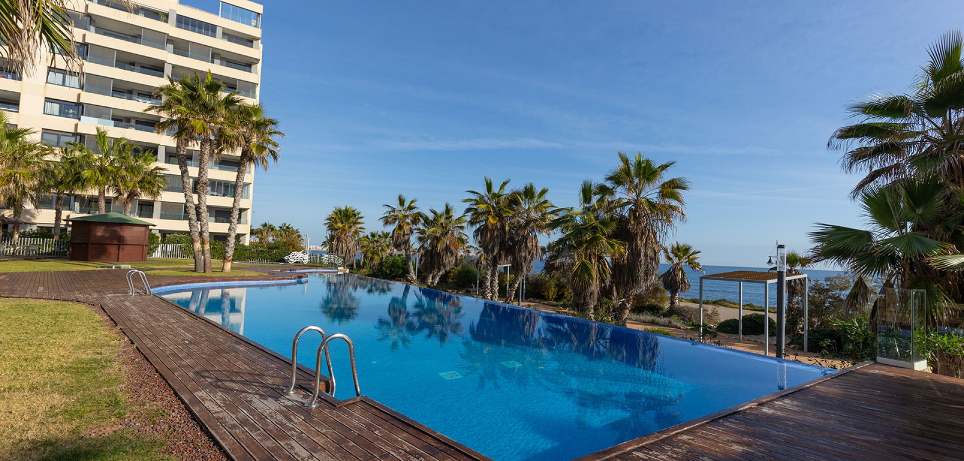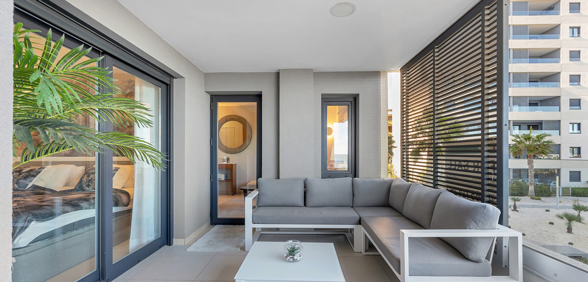This elegant 2-bedroom, 2-bathroom apartment is located frontline, offering stunning open sea views. Its modern and bright design creates a cozy and relaxing atmosphere, ideal both for year-round living and for enjoying holiday stays. The apartment is sold fully furnished, equipped with high-quality furniture in harmonious tones and wooden details that add warmth and style. The layout is functional and comfortable, with spacious and well-utilized areas. In the area, you will find pools, including a heated pool, and a paddle tennis court, perfect for enjoying leisure time and sports activities without leaving the complex. This property also includes underground parking and a private storage room, providing additional practicality to your living experience. Located in Punta Prima, one of the most sought-after areas of the Costa Blanca, the apartment offers a peaceful and safe environment, close to the beach, with easy access to supermarkets, restaurants, bars, and local services. The area is ideal for sea and nature lovers and is a short drive from shopping centers, golf courses, and other Costa Blanca attractions.