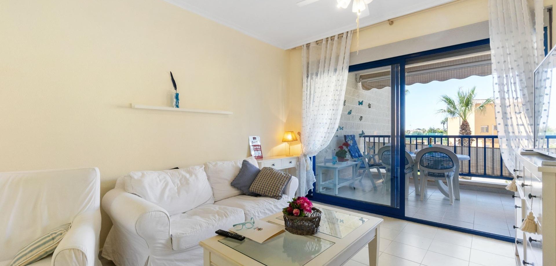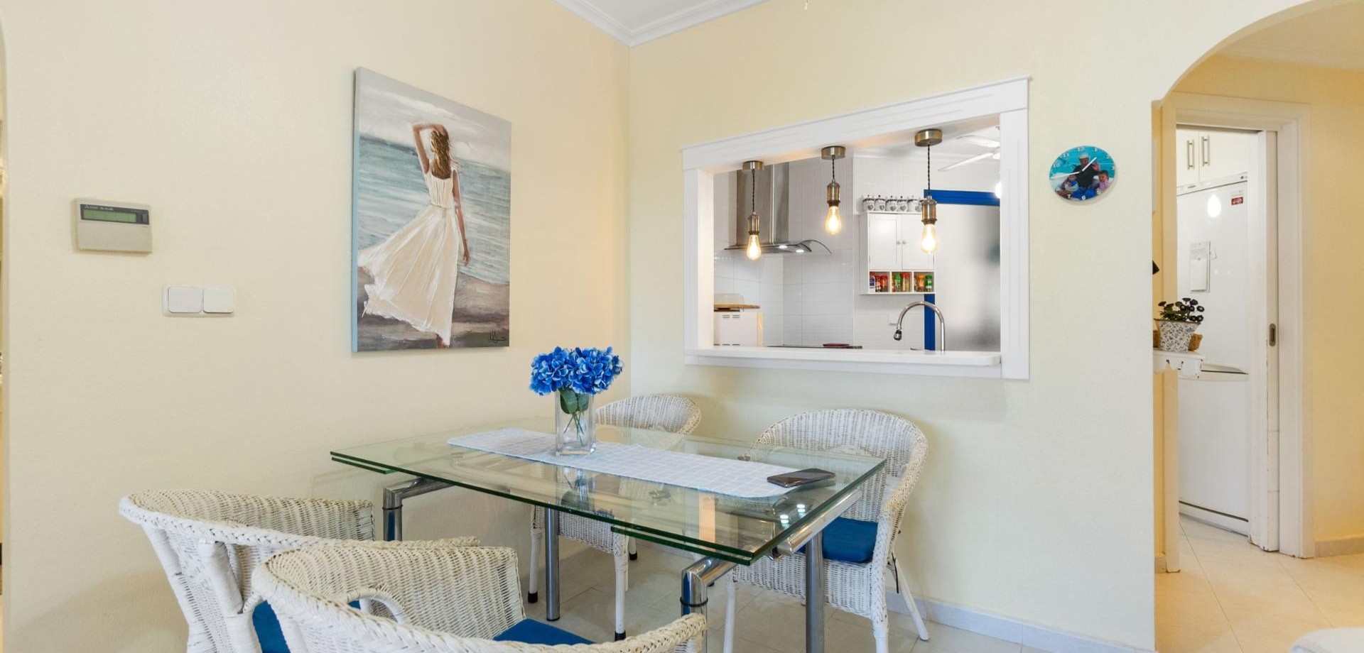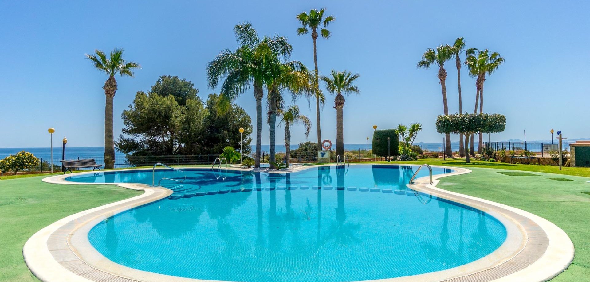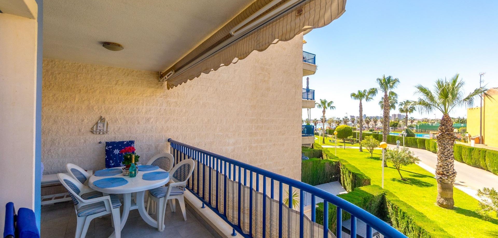 This spacious and bright apartment is located in the exclusive Aguamarina residential complex, Punta Glea, on the beachfront, with direct access to the seafront promenade. Located on the first floor, it faces southeast to enjoy the sun almost all day long. With a surface area of 78 m2, it has a very convenient layout, offering comfort and functionality.~The apartment has two large bedrooms, each with built-in wardrobes, providing plenty of storage space, and two full bathrooms.~The separate kitchen is fully equipped and includes a laundry room. A bright living-dining room and a large terrace, accessible from the living room and the master bedroom, are the perfect place to enjoy views of the complex's gardens and the sea. The apartment is sold partially furnished and has ducted air conditioning. The apartment also comes with a parking space in the underground garage.~The residential complex has a spectacular swimming pool, surrounded by gardens, ideal for enjoying sunny days and relaxing just steps from the sea. An unbeatable location, with the convenience of being right on the beach and with all amenities within walking distance.~